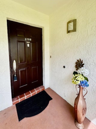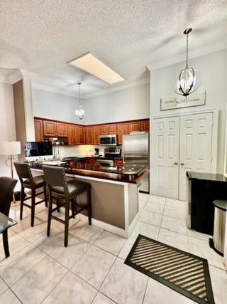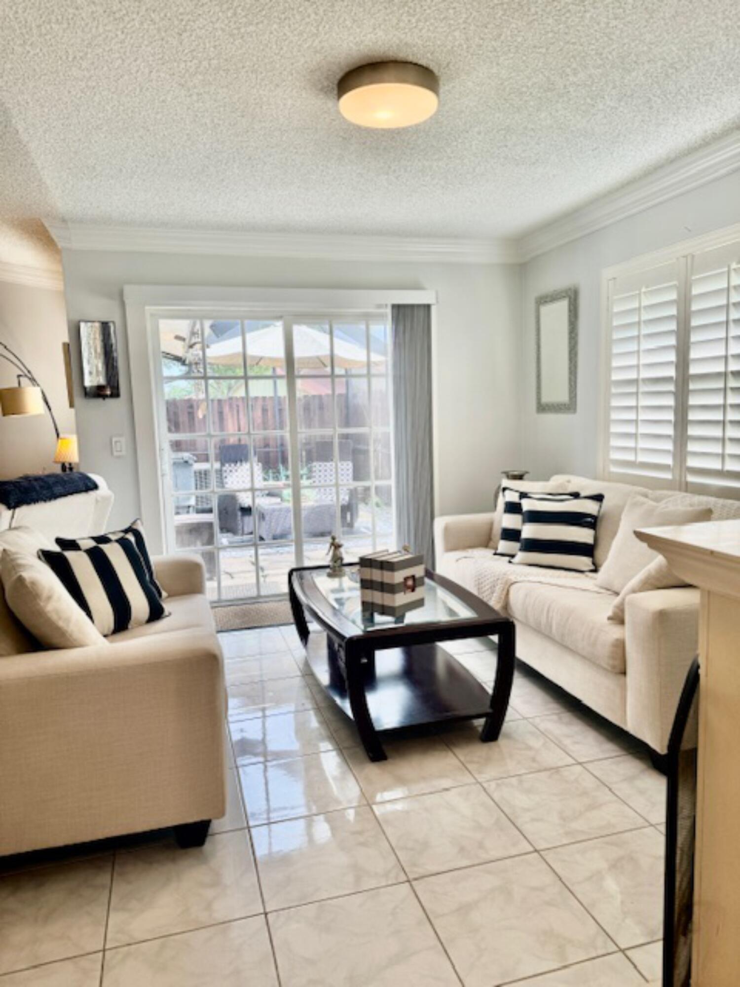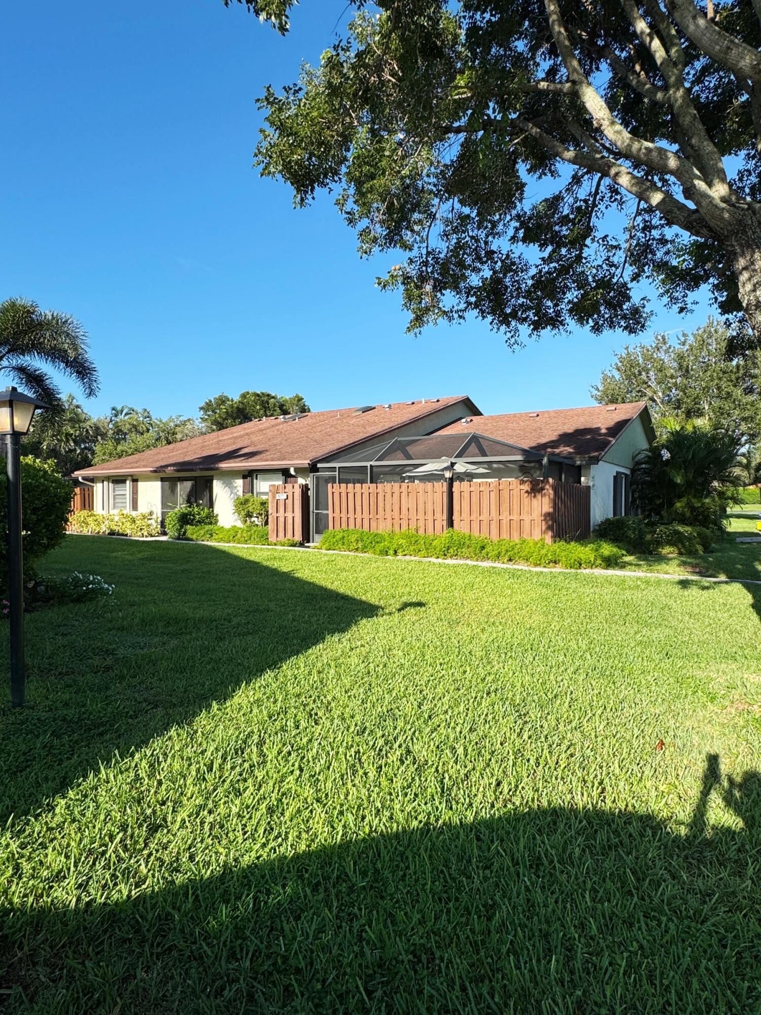Beautifully remodeled 2-bedroom, 2-bathroom villa located in the highly desirable 55+ community of Oakwood Lakes West. This spacious home features an open-concept floor plan in which the living room area, the family room area, the dining room area, and the kitchen area, are all visible and accessible from the center of the home. The ceiling rises dramatically from the living room through to the kitchen with a skylight for natural sunlight. Two fully tiled and upgraded bathrooms (one with a relaxing Jacuzzi tub) are in the bedrooms section of the home. White -grey tiling on the floor. New sliding glass doors and wood shutters on the smaller windows. All decorator interior doors are wood. New crown molding and baseboards throughout the home. New breaker panel.The A/C is 2 years old and serviced every 6 months. The screened patio area has an irregular concrete tile floor and is surrounded by a recently stained 6 foot privacy wood fence. Concrete flooring has been removed to leave a space for plants on the patio and is covered by river rock. An assigned and convenient parking spot is just steps from your screen and fence door. Large storage space in attic with built-in ladder. Accordion aluminum shutters covering all the windows for hurricane protection. HOA fee covers access to community amenities including a meeting room (which can be rented for large parties), a library, a large heated or cooled pool, and a tennis/pickle ball court, as well as cable/internet, insurance, exterior landscape maintenance, roof repair, and an on-site homeowner /administrator to the board. CONVENTIONAL / FHA / VA OK! Support animals with proper documentation and cats are welcome. No commercial vehicles or motorcycles allowed. Proof of funds or pre-approval is required with all offers. A great location which is close to supermarkets, retail stores, medical offices, just minutes from the beach, and a stones throw away from I-95 and the Turnpike. Everything you need is right here waiting for you. Don't miss out submit your best offer today!