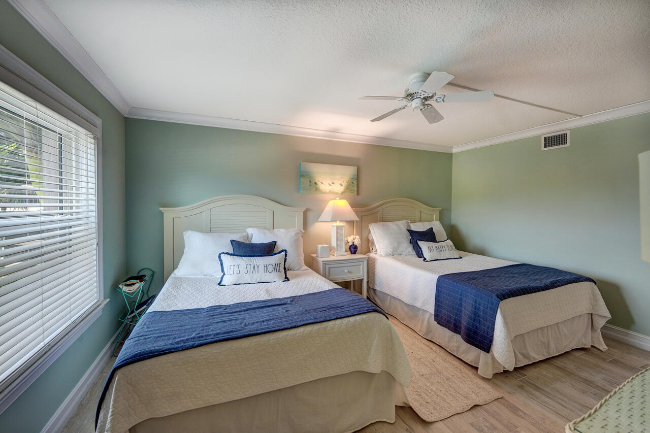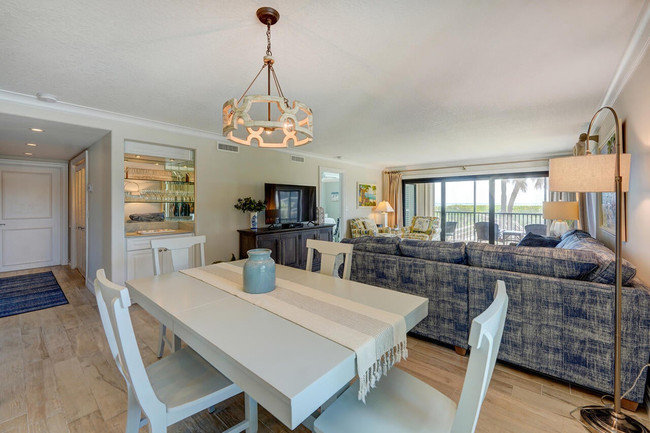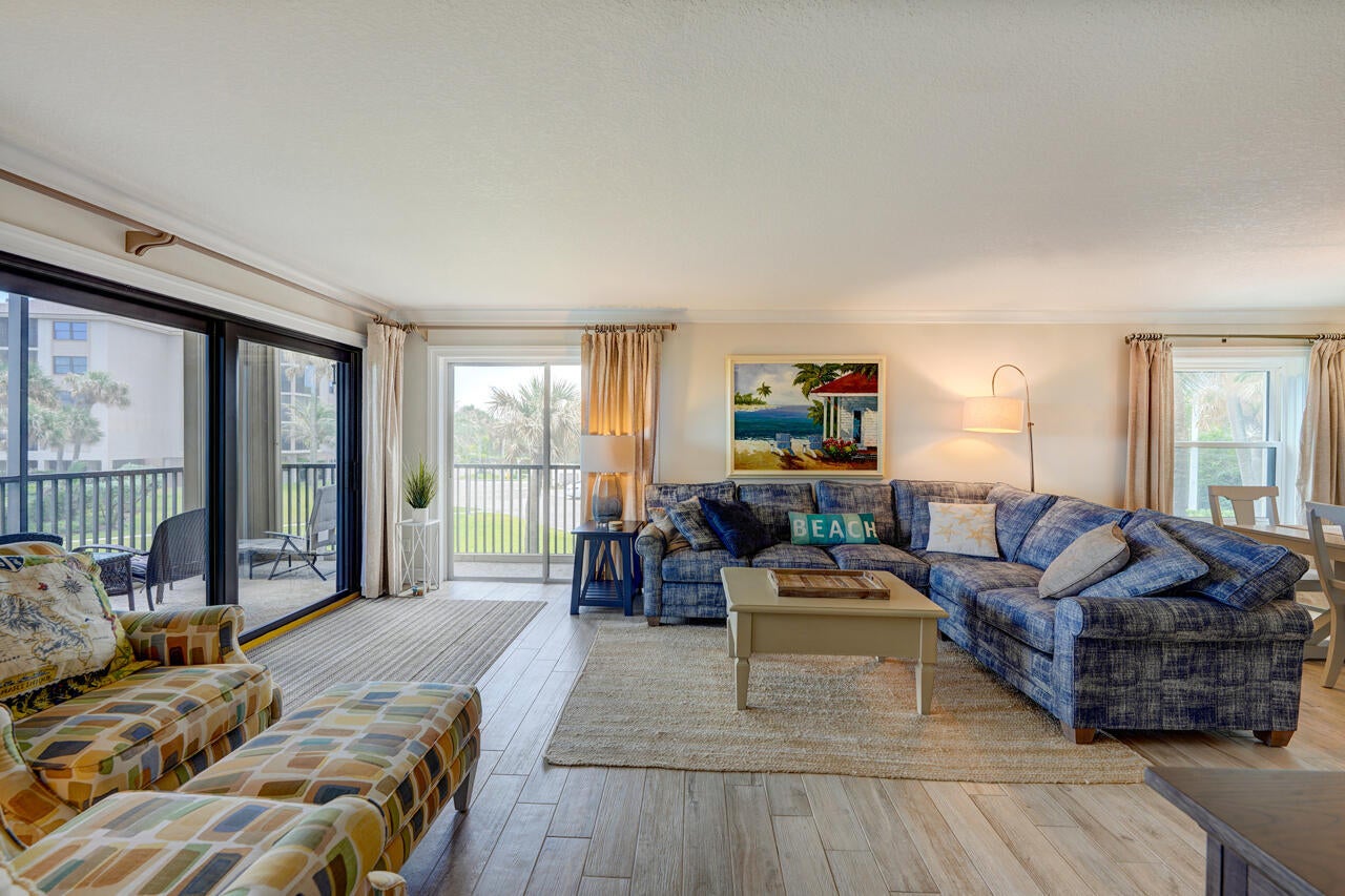 Fabulous SE Oceanfront corner 2/2 condo at highly sought after gated Sandpebble Beach Club on Hutchinson Island with panoramic ocean views from almost every room. This first floor, second level condo has been completed renovated with porcelain tiled flooring that looks like wood plank, impact windows, newer bathrooms and kitchen, and newer Accordians Shutters on the screened porch. Plantation shutters throughout. Being sold fully equipped and furnished, turn key for seasonal or annual rental income. There are 3 buildings on the Oceanside and 7 buildings on the Riverside. Amenities include 5 pools, 2 hot tubs, basketball hoop, tennis, pickleball, and possible dockage available. Rented annually furnished until 11/30/25.