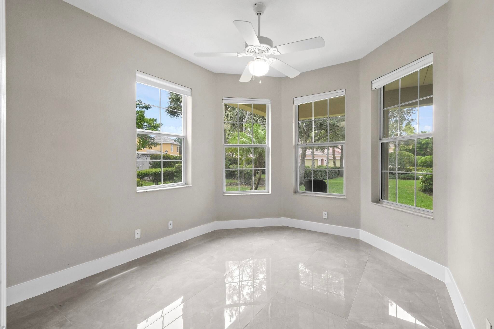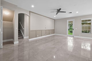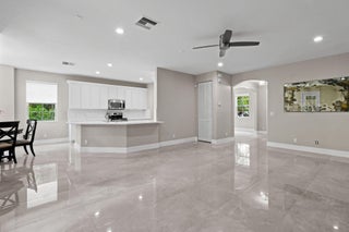 Rare opportunity to own one of the largest, most private lots (9,400+ sq ft) in Canterbury Place at Abacoa. This meticulously maintained 4 bed, 3 bath + office/den home sits on a quiet one-way street surrounded by lush greenspace and centrally located in the community near the clubhouse with gym/heated pool and pocket parks. Recent updates include new porcelain floors and plush carpeting, custom millwork, updated kitchen quartz counter tops and backsplash. Stainless appliances, LED lighting, impact windows, tile roof. Two-zone A/C (both replaced in 2020) and water heater (replaced in 2019). Exterior of home painted May 2025. HOA includes landscaping, HD cable & high-speed internet. Zoned for top-rated Jupiter schools.