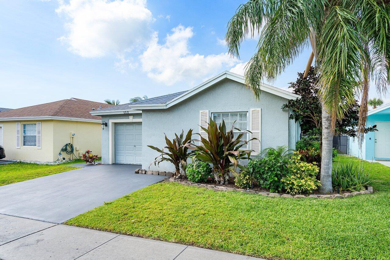 Discover this beautifully maintained 3-bedroom, 2-bathroom home with a one-car garage, nestled in the small, gated community of Crystal Key in Boynton Beach. Home highlights include: Spacious kitchen complete with a center island and barstool seating; Fenced yard with a mango tree; and a Split primary bedroom with an adjoining primary bath. The home has a freshly painted interior, updated bath and fixtures, and new dishwasher, washer+dryer. The community boasts a pool and ample guest parking, all conveniently located in central Boynton, providing easy access to dining, shopping, and I-95.