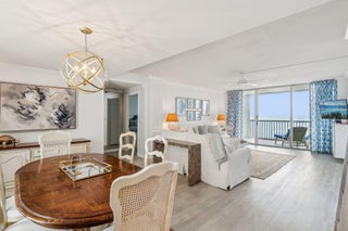 Experience breathtaking oceanfront views from this beautifully remodeled 2-bdrm, 2-ba split-plan penthouse located directly on the sand of Singer Island Beach. Situated in a charming boutique-style building with just 32 units, this residence offers panoramic ocean views from every room.The light and airy interior features a modern white kitchen with stainless steel appliances, quartz countertops, and light wood-style vinyl flooring throughout--no carpet. One bathroom is upgraded with double sinks and frameless glass shower doors for a sleek, contemporary feel. Building amenities include a recently updated community room, elegant lobby, oceanfront pool, convenient trash chute on your floor, and a common laundry room. This is the perfect seasonal escape for beach lovers. No pet building.