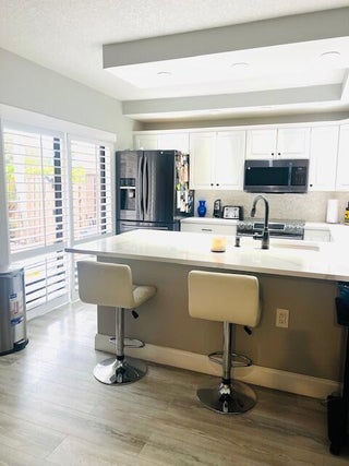 TH is renovated, new open white kitchen with Quartz countertops, with Stainless Steel Appliances. All three baths have been completely remodeled. with new cabinets, new showers, new floors, new fixtures & lighting. Luxury Vinyl floors, and white plantation shutters on all sliders. New AC installed in June of 2023. Extended storage outside on patio. All balcony's have been redone and full assessment is paid in full.