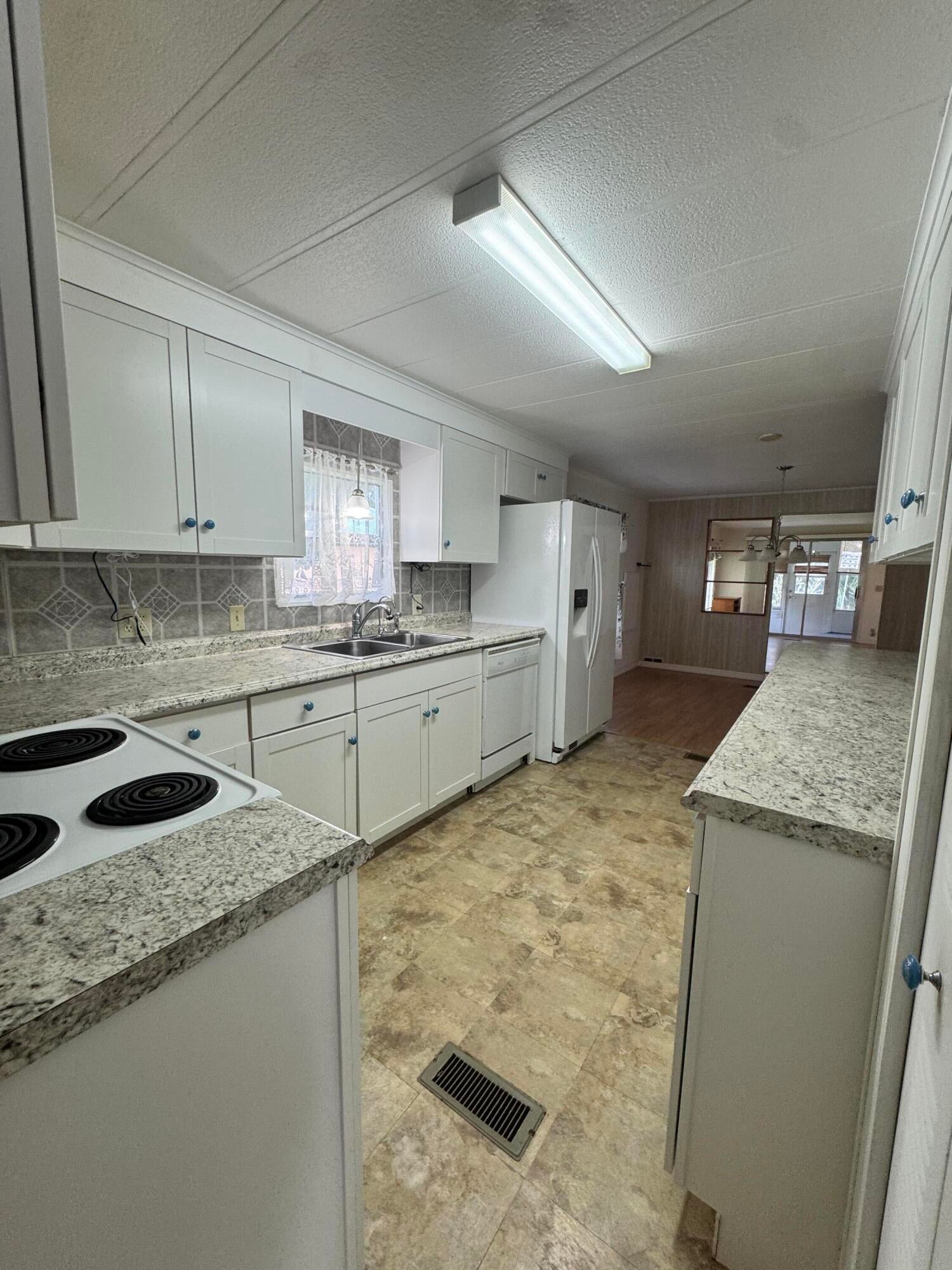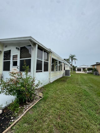 Lovely well maintained 2 bedroom 2 bath home in the desirable 55+community of Spanish Lakes. Home has split floor plan. Laminate flooring in main area and carpet in bedrooms. Kitchen has been updated. Newer appliances in kitchen. Home sits on a very quite street that backs up to woods. 8x24 patio slab. screened in patio. Roof is metal 2015, A/C 2025 Lawn care, trash removal and golf included in lot rent. 2 pools, tennis, pickleball, bocceball, shuffle board. club house and much more.