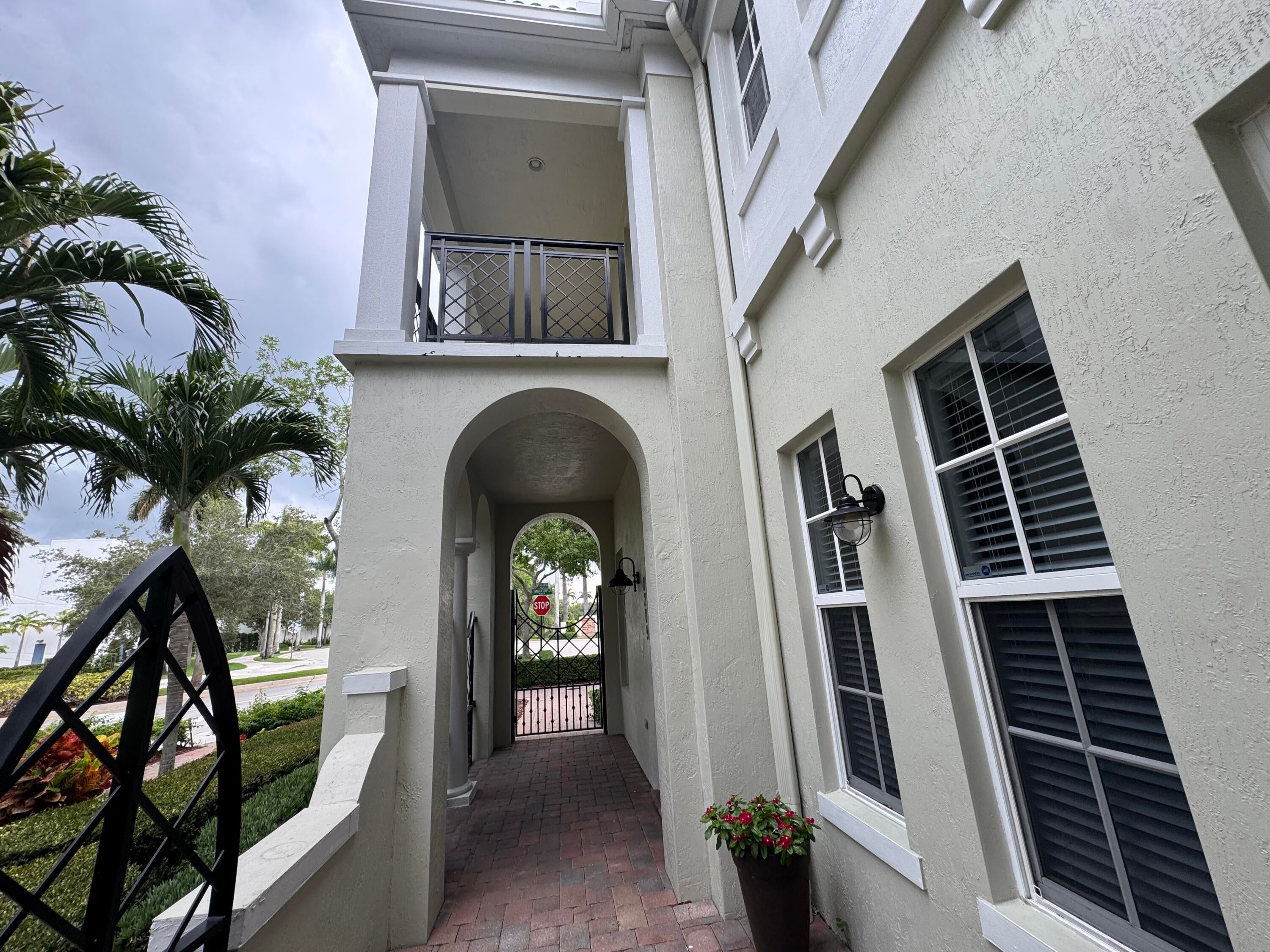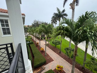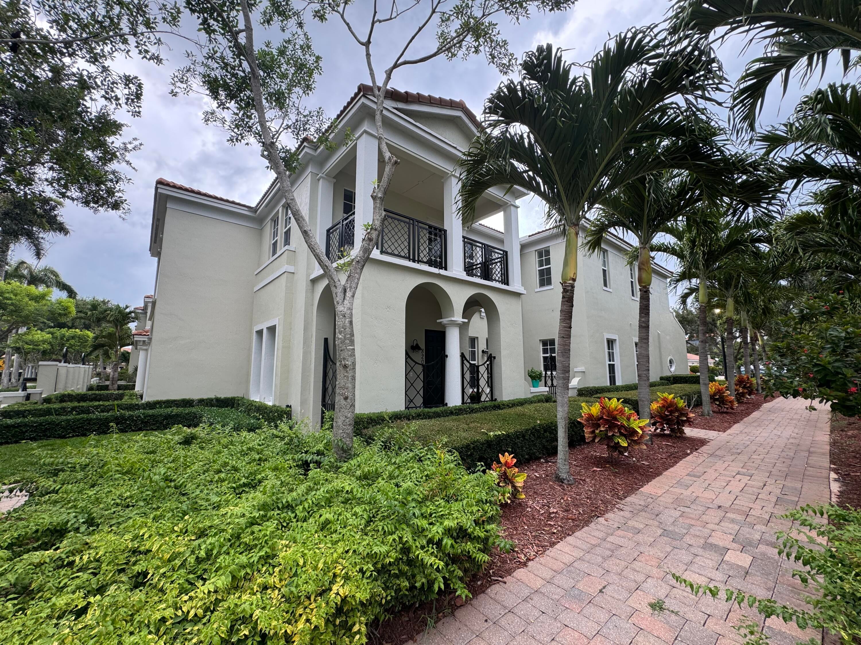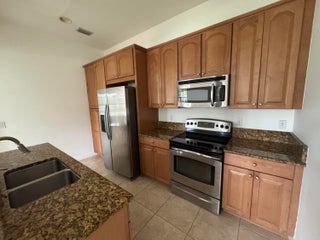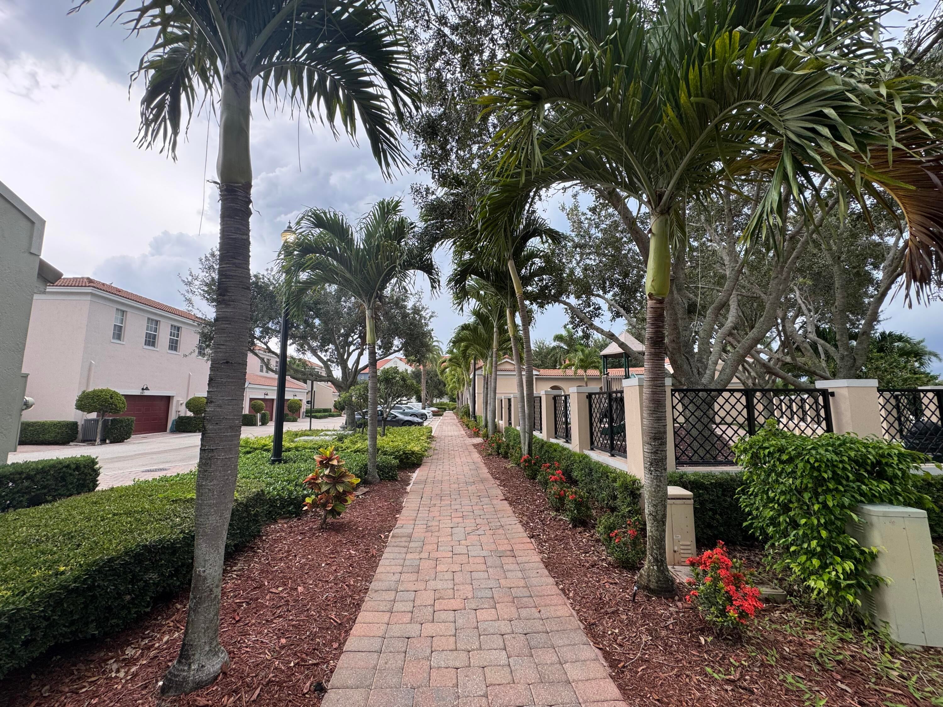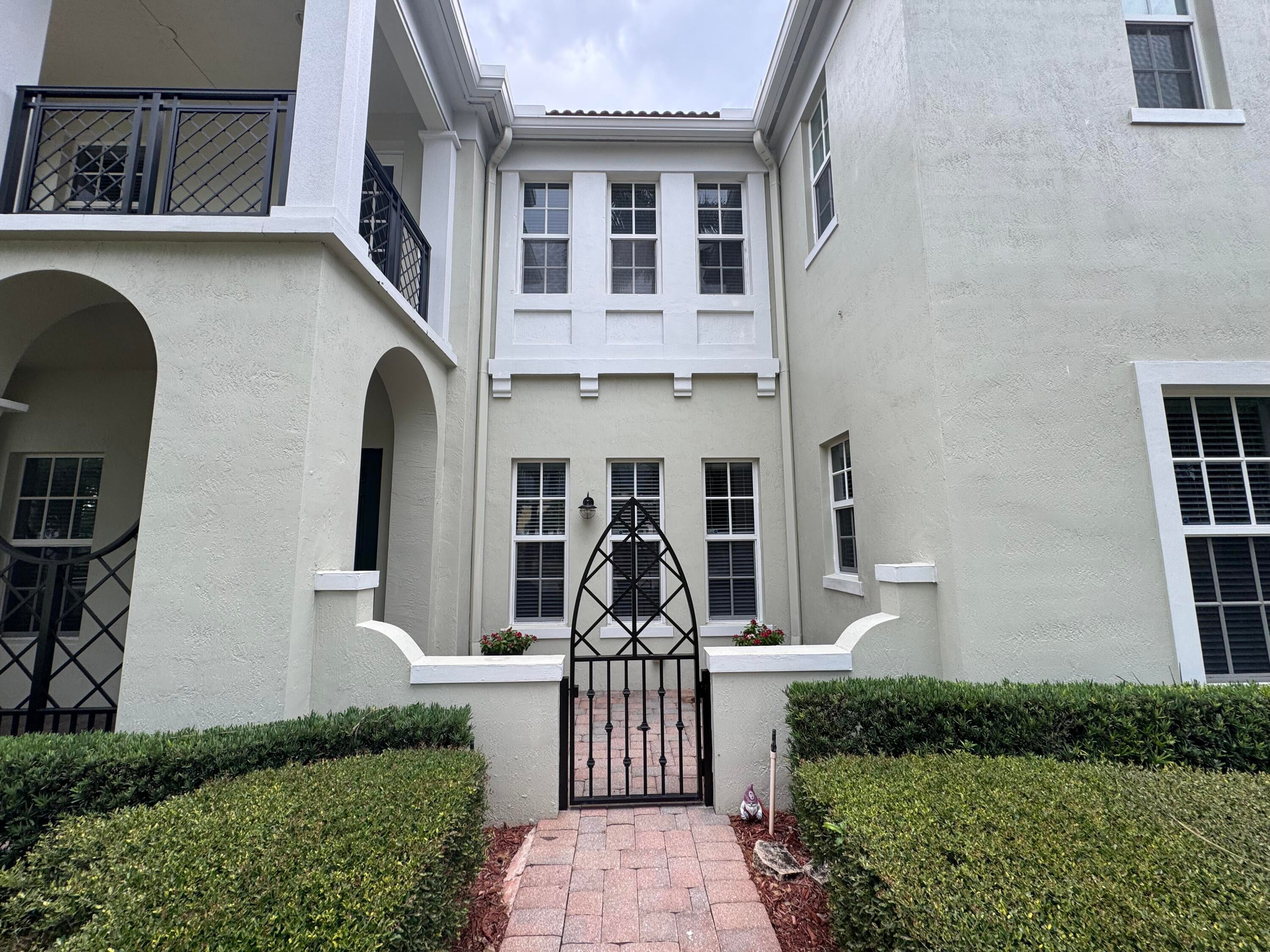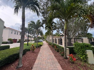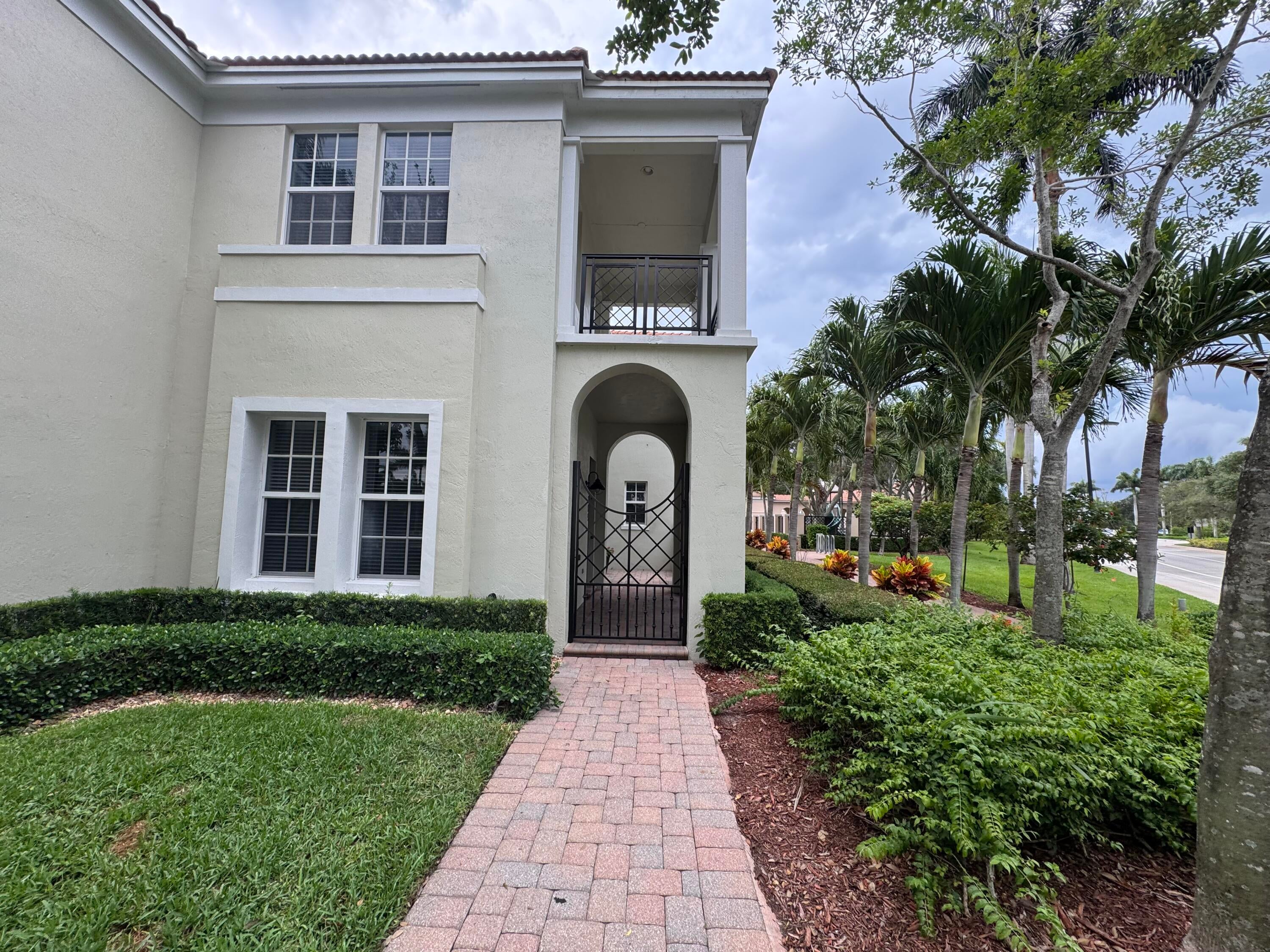 This meticulously, spacious, end unit 3-bedroom, 2.5-bath townhome offers the perfect blend of comfort and convenience in a beautiful, well-maintained community. Enjoy generous living spaces inside and out! The kitchen boasts warm cabinetry, granite counters, stainless steel appliances, an island with breakfast bar and tile flooring throughout. Two living spaces living/family room and dining room and a half bath on the first floor. Open, but private gated patio right out of your front door. The primary bedroom is a spacious retreat with 2 large walk-in closets, an ensuite bathroom, dual sink vanity, soaking tub, and separate shower. Open the door to a spacious balcony and enjoy the tropical palms around this unit. Two additional bedrooms and bath, a second floor laundry room withample storage. Two car garage with extend driveway, steps to the pool, playground, and gym. A beautiful place to call home!