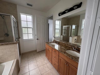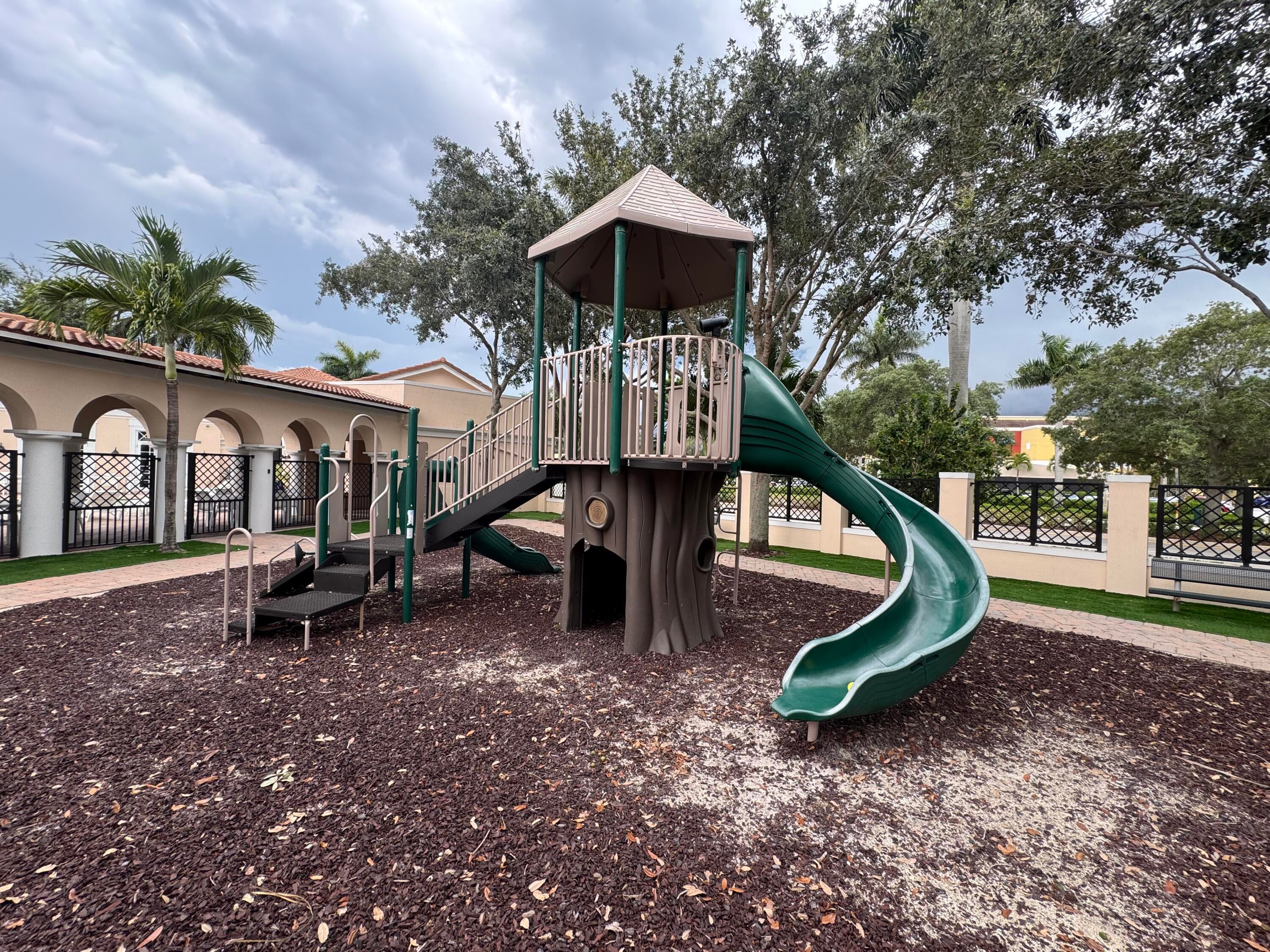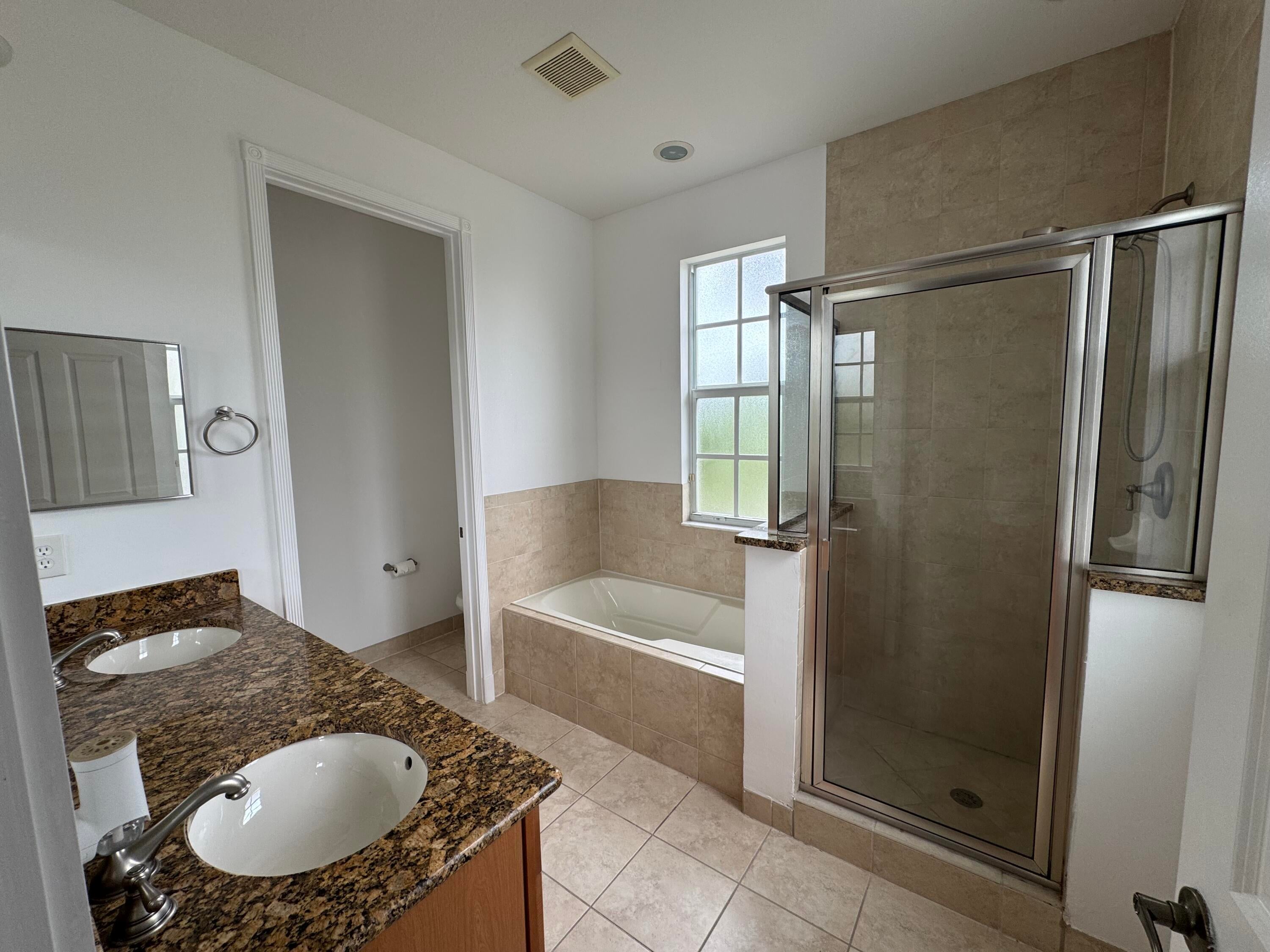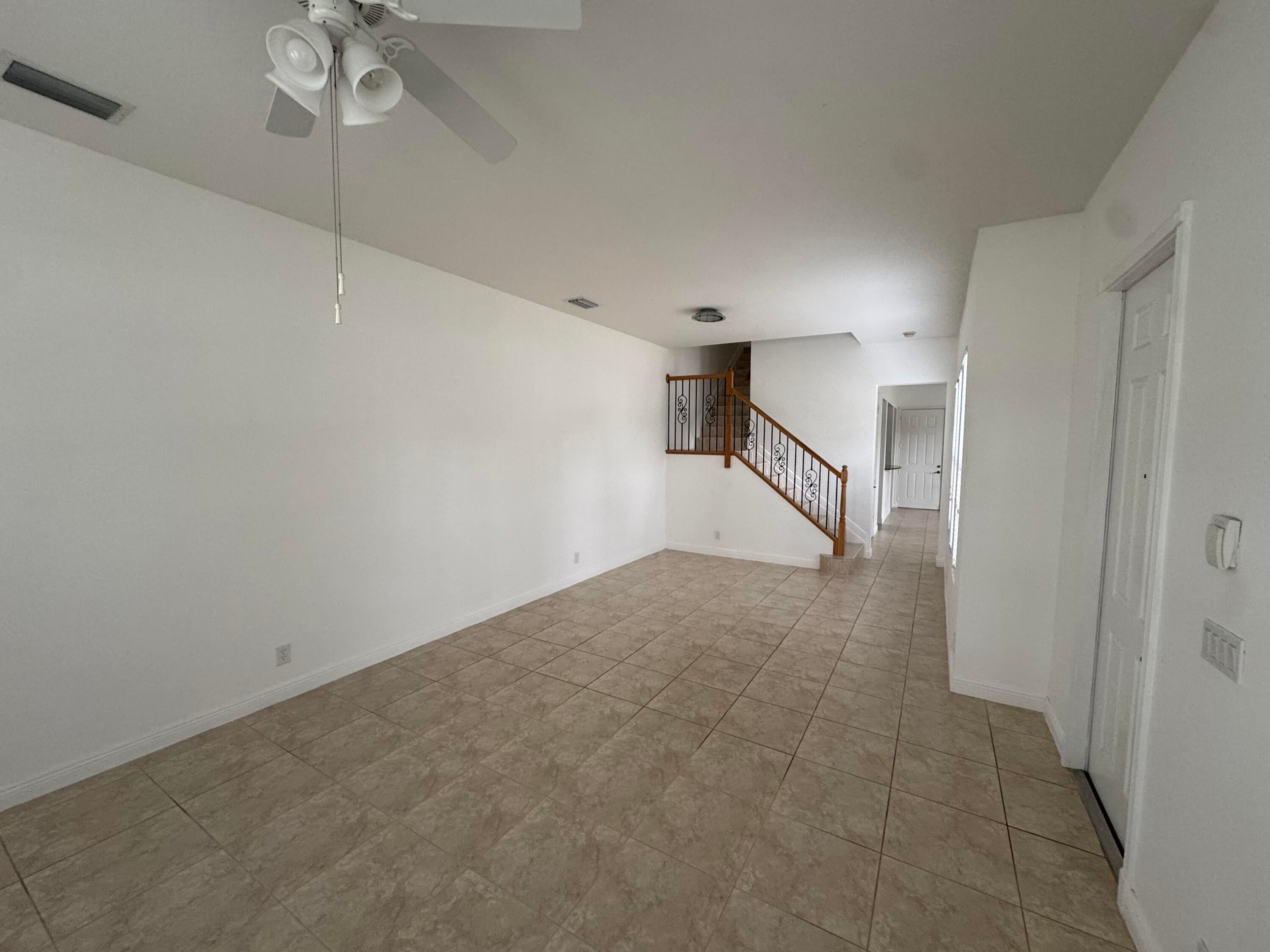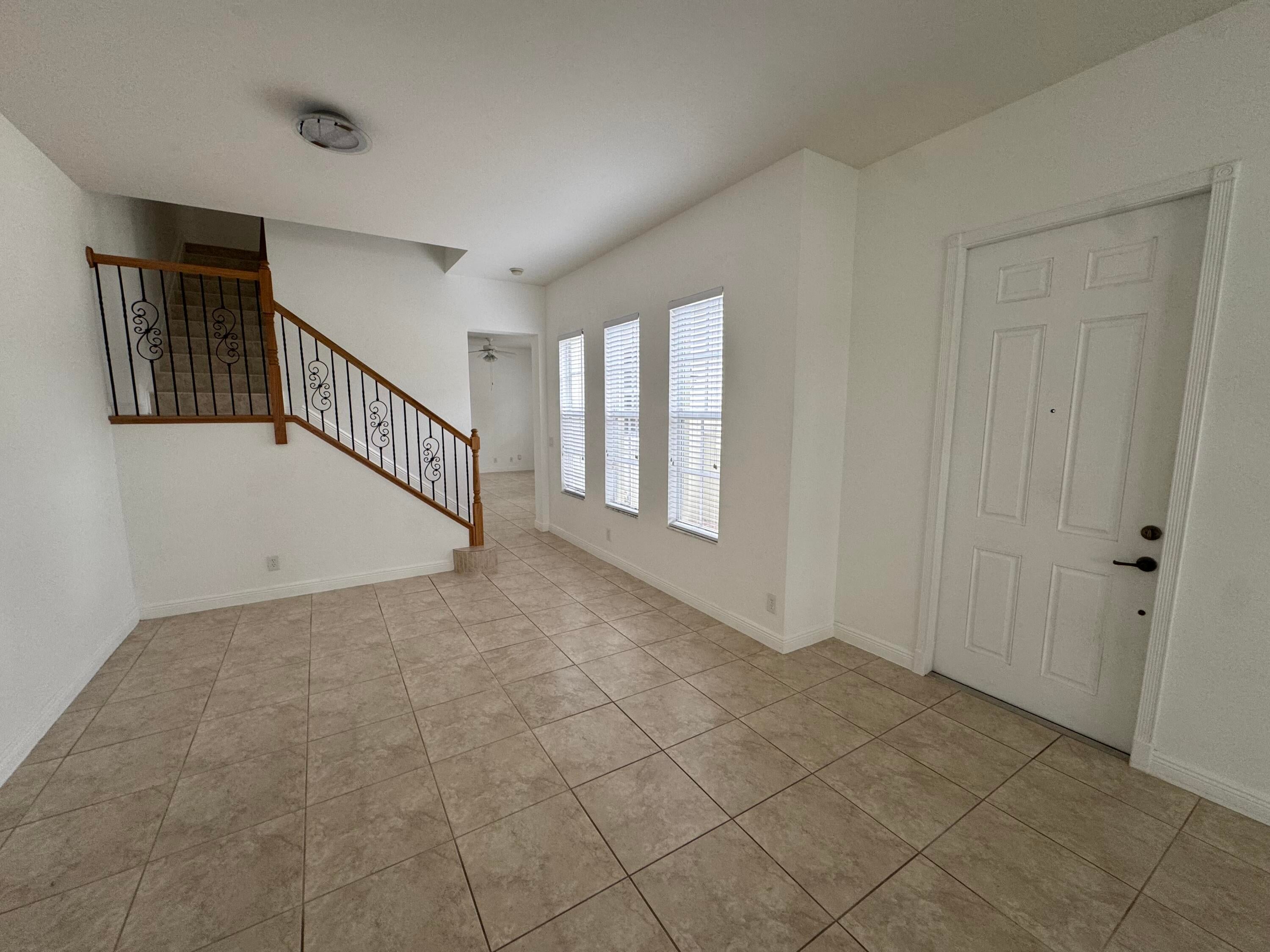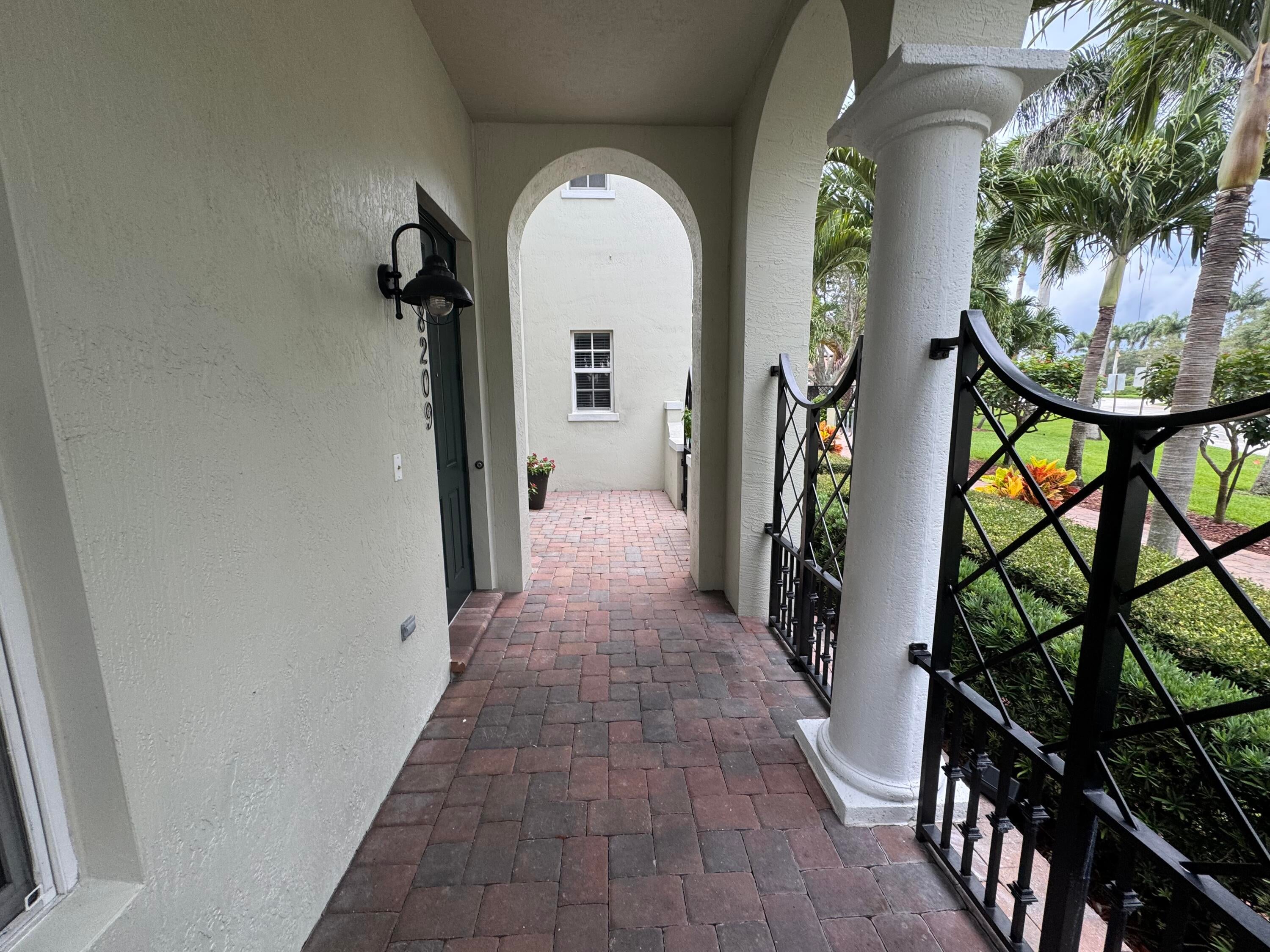 This meticulously, spacious, end unit 3-bedroom, 2.5-bath townhome offers the perfect blend of comfort and convenience in a beautiful, well-maintained community. Enjoy generous living spaces inside and out! The kitchen boasts warm cabinetry, granite counters, stainless steel appliances, an island with breakfast bar and tile flooring throughout. Two living spaces living/family room and dining room and a half bath on the first floor. Open, but private gated patio right out of your front door. The primary bedroom is a spacious retreat with 2 large walk-in closets, an ensuite bathroom, dual sink vanity, soaking tub, and separate shower. Open the door to a spacious balcony and enjoy the tropical palms around this unit. Two additional bedrooms and bath, a second floor laundry room withample storage. Two car garage with extend driveway, steps to the pool, playground, and gym. A beautiful place to call home!