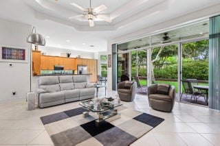 Beautiful Pamplona model features 2 bedrooms + den, 2.5 baths and a large open floorplan with a Great room, situated on an oversized lot with private garden views. Upgrade highlights include neutral tile throughout main living areas, tons of kitchen and bath upgrades, custom closet systems, jetted roman tub upgraded lighting fixtures and recessed lighting, a central vacuum system, newer washer and dryer, epoxy (GF1) garage floor, accordion storm shutters, gutters, upgraded landscaping and so much more! Please call for more details. HOA Fee includes lawn care, alarm monitoring, phone, cable and internet. Clubhouse recently renovated.