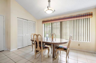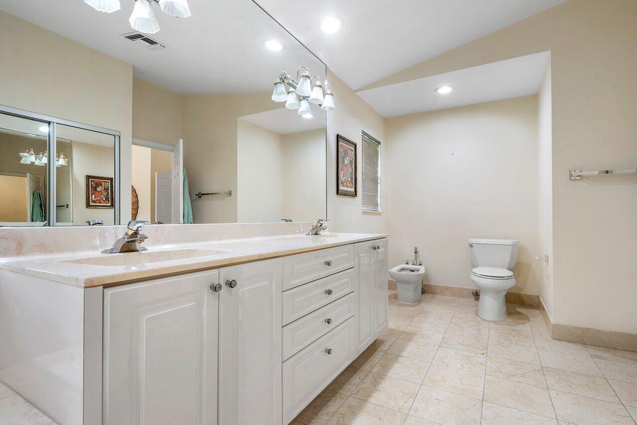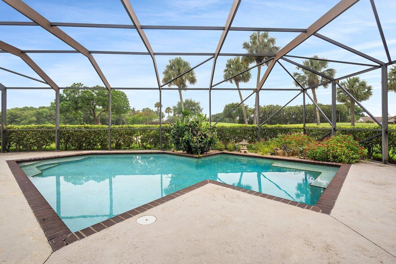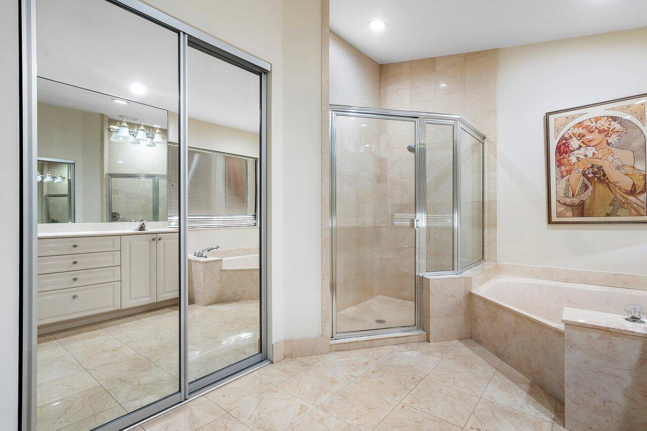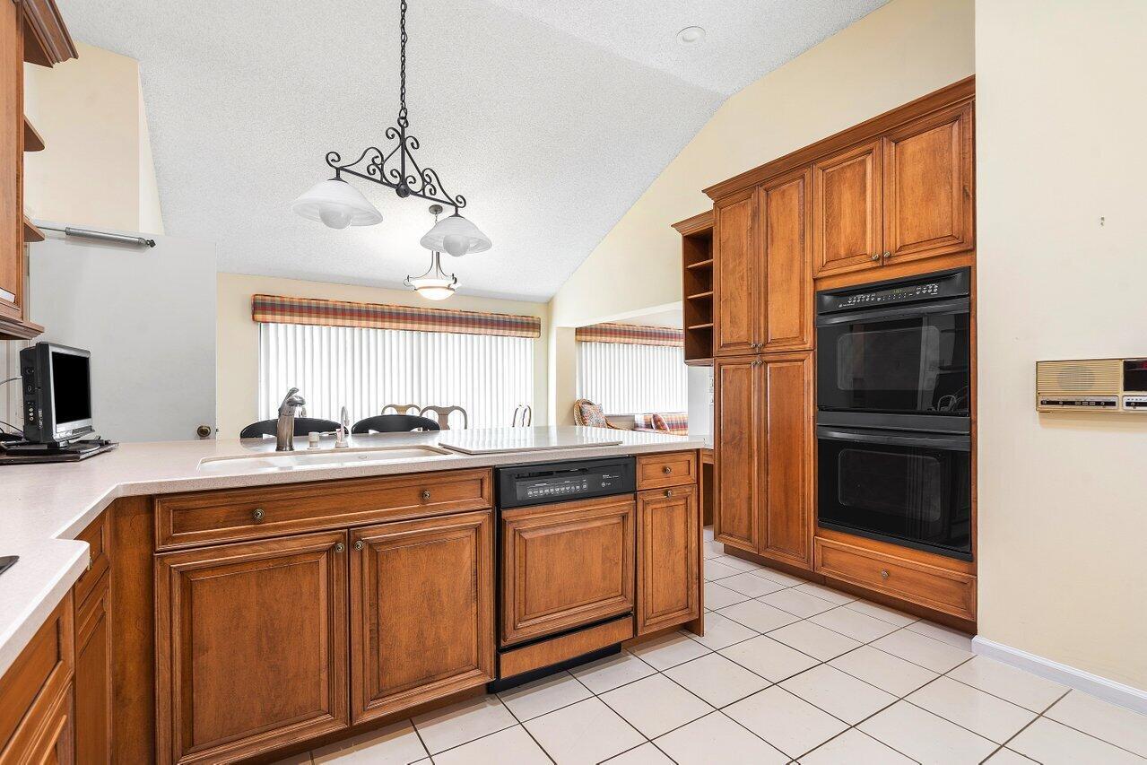 Spectacular golf course views from this 2-bedroom, 3.5-bath home featuring two expansive primary suites and a versatile office/den that can easily serve as a third bedroom. The open-concept layout boasts soaring 16-ft ceilings and dramatic double-height windows, flooding the home with natural light. Additional features include a separate golf cart entrance, two-car garage, laundry room, and a generous lot with mature fruit trees and panoramic fairway views. Roof replaced in 2018. Boca Woods Country Club Community offers resort style amenities, including two championship golf courses, Har Tru tennis courts, pickleball courts, state of the art fitness center, spa, game room, fully renovated clubhouse with fine dining and much more! Mandatory Country Club membership required $120,000.