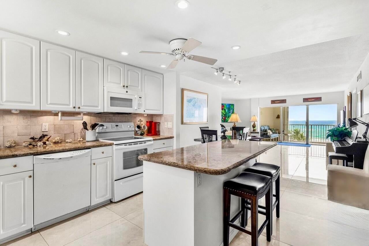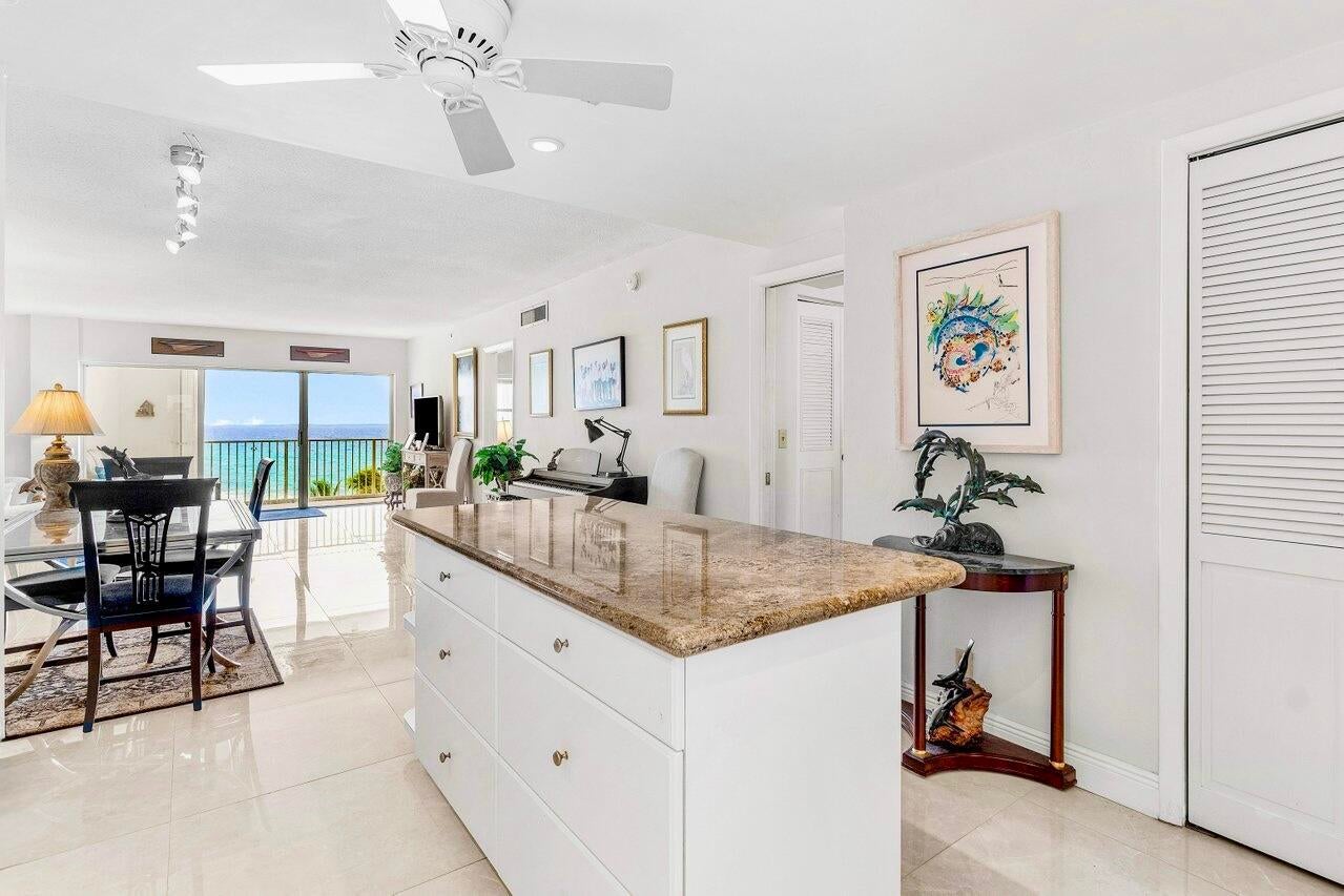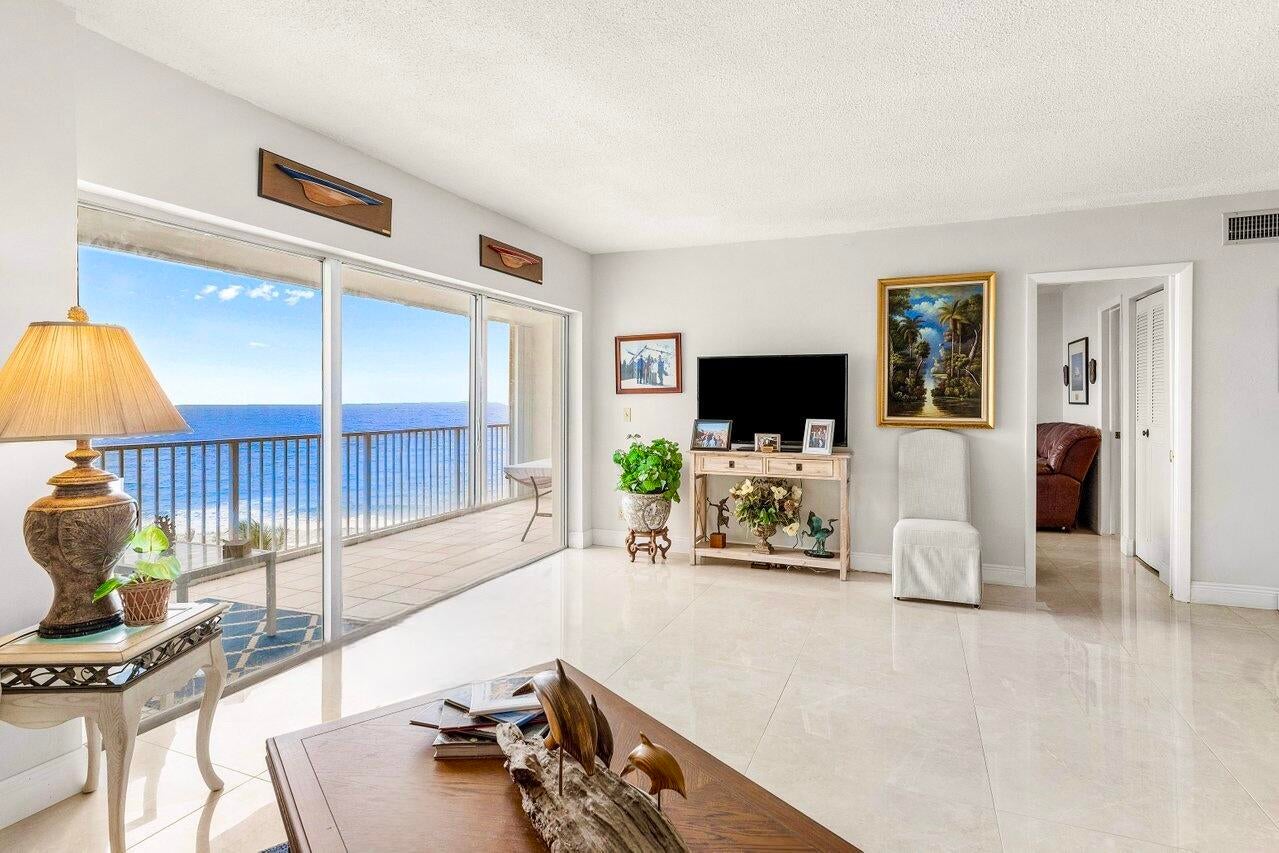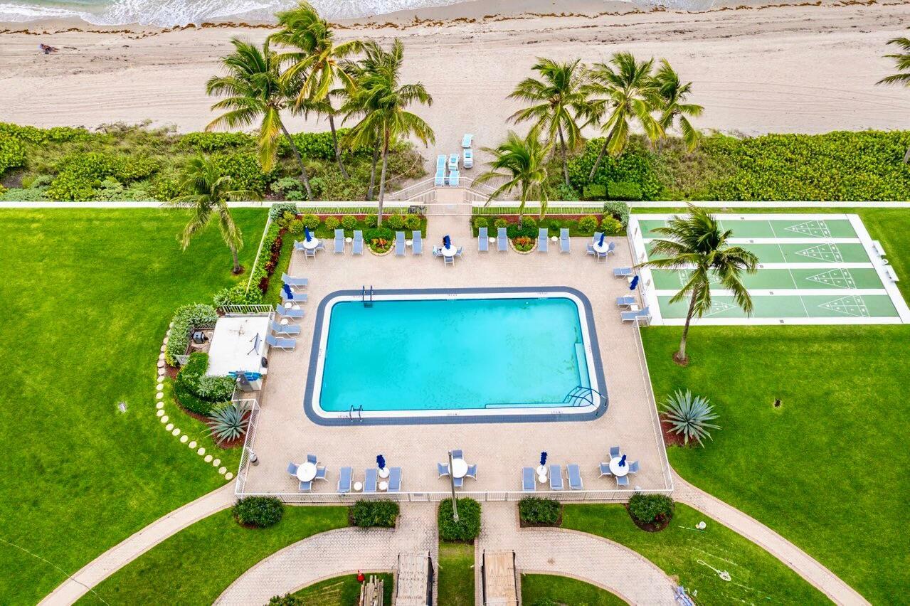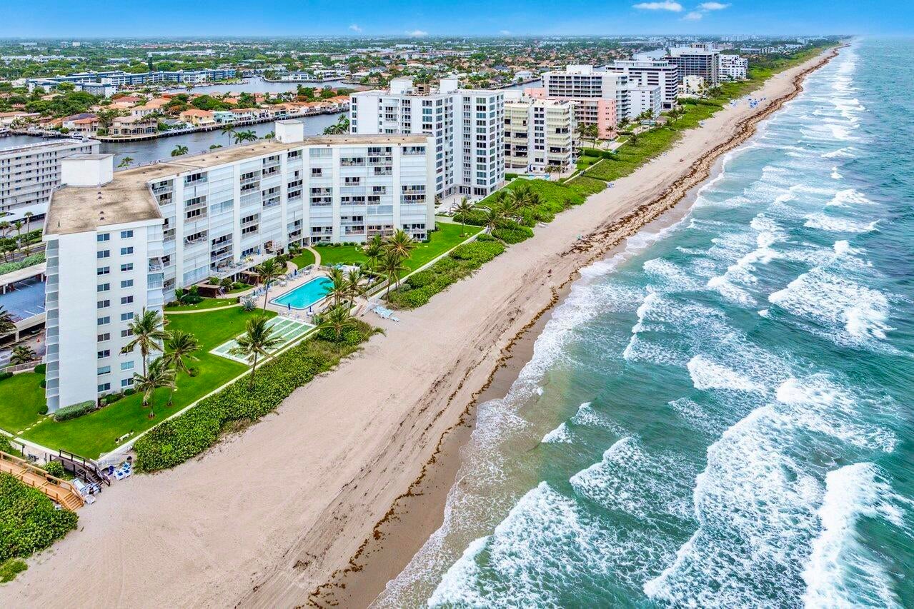 NEWLY-PRICED TO SELL! Penthouse Towers has only two available of the largest ''elbow'' residences and this two-bedroom, two-bath is the highest on Floor 7! It also boasts a desirable SE location, right ON THE SAND with 400 feet of ''private beach'' offering uninterrupted views of the ocean -- amazing sunrises, magical moonrises and fabulous winter season breezes! Spacious living areas feature new porcelain-marble flooring throughout, exquisite OPEN KITCHEN complete with center island, impact glass door and windows (south side) as well as accordion shutters on the 26'x8' covered dining balcony with storage closet. A warm, community atmosphere includes countless amenities for its friendly active residents to enjoy in addition to many scheduled social events throughout the year!Features include an expansive heated, infinity-edge pool with built-in bench seating, large clubhouse, party room with kitchen, card room, billiards, ping pong, fitness area, library, TV-viewing, shuffleboard, BBG grills and an on-site manager. Location: The Penthouse Towers Condominium is in a premium location in the heart of everything wonderful! Midway between Palm Beach and Fort Lauderdale, the Town of Highland Beach is an exclusive seaside community on a barrier island at the northern shores of Boca Raton, and just south of famed Delray Beach and Atlantic Avenue. Extraordinary views, tropical breezes and natural protection from the sea are afforded by the island's uncommonly high coastal dunes, for which the town was named. Its private beach is one of the only around and is doggie-friendly! Town amenities include 24/7 police, fire and paramedic services, an active Town library on the Intracoastal, and its own state-of-the-art Reverse Osmosis Water Treatment Facility which draws from the deep Floridan Aquifer, assuring residents unlimited pure water and freedom from water restrictions, even in drought conditions. Fine restaurants, galleries, museums, sporting events and world class shopping are just minutes away. Florida's Turnpike and I-95 provide easy access to three international airports for worldwide travel in addition to the Boca Raton Executive Airport.