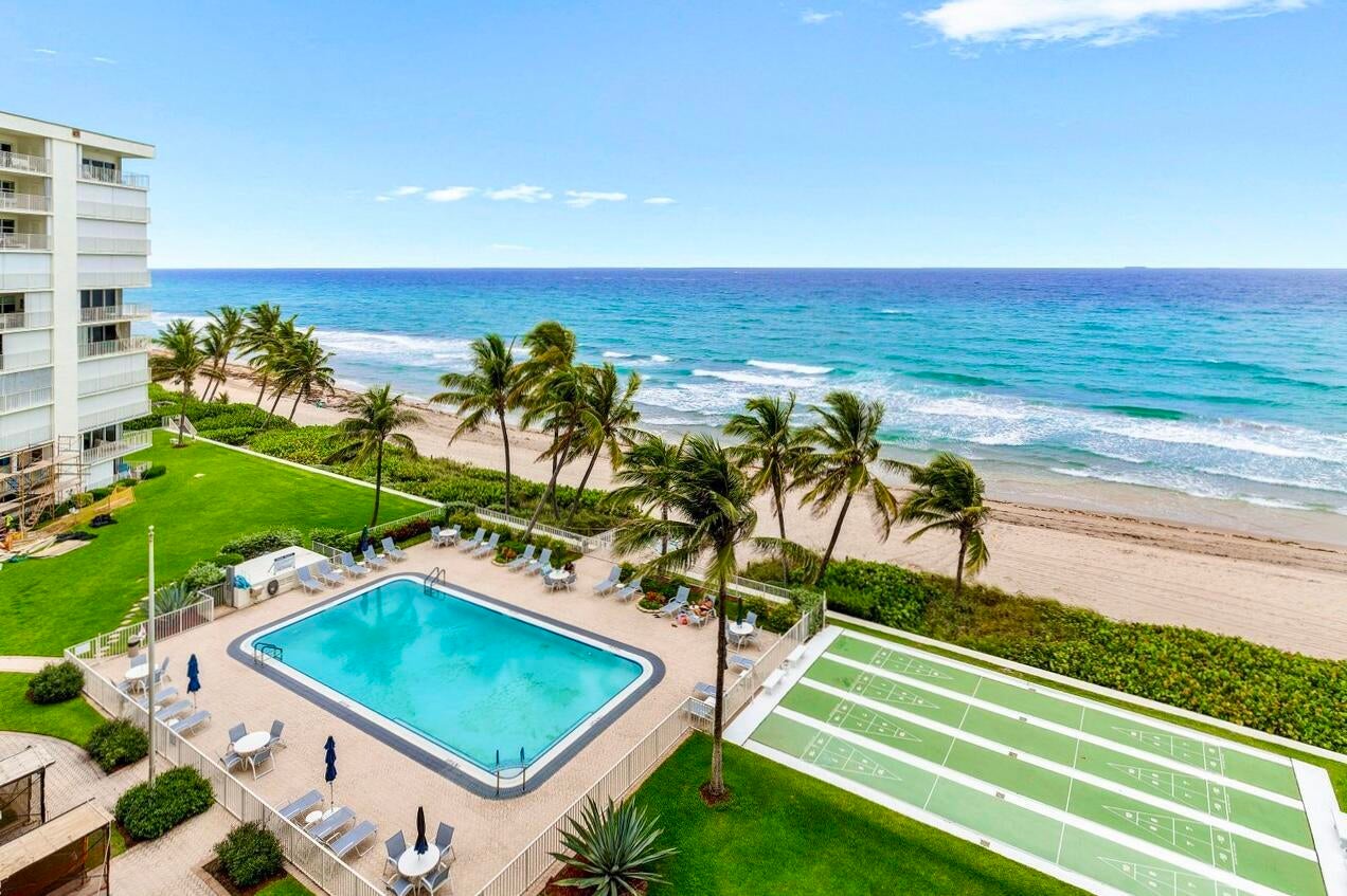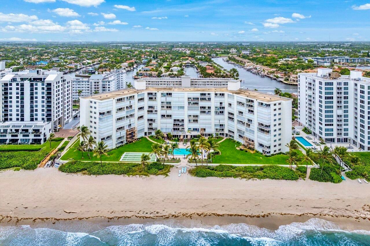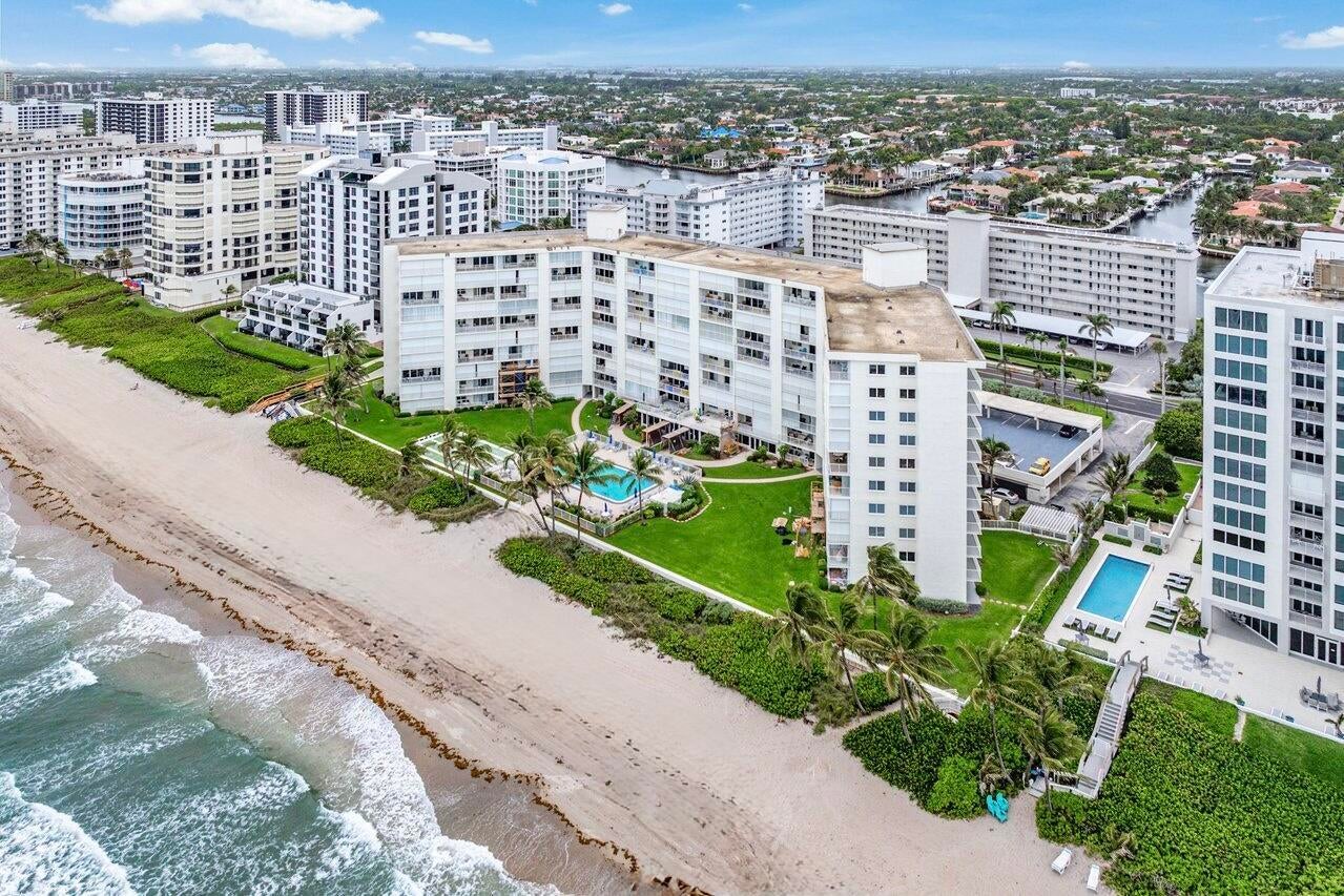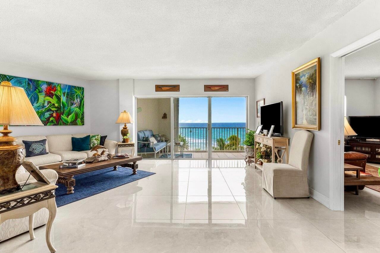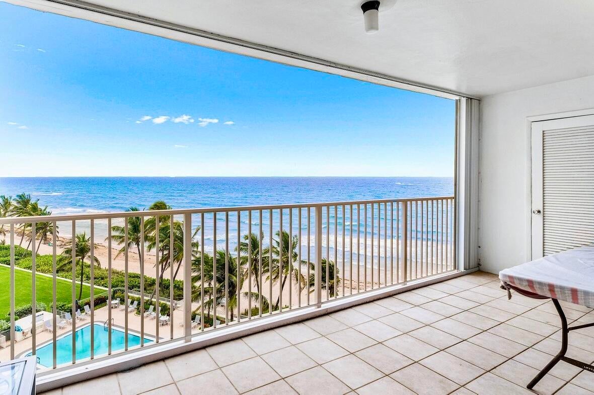 NEWLY-PRICED TO SELL! Penthouse Towers has only two available of the largest ''elbow'' residences and this two-bedroom, two-bath is the highest on Floor 7! It also boasts a desirable SE location, right ON THE SAND with 400 feet of ''private beach'' offering uninterrupted views of the ocean -- amazing sunrises, magical moonrises and fabulous winter season breezes! Spacious living areas feature new porcelain-marble flooring throughout, exquisite OPEN KITCHEN complete with center island, impact glass door and windows (south side) as well as accordion shutters on the 26'x8' covered dining balcony with storage closet. A warm, community atmosphere includes countless amenities for its friendly active residents to enjoy in addition to many scheduled social events throughout the year!Features include an expansive heated, infinity-edge pool with built-in bench seating, large clubhouse, party room with kitchen, card room, billiards, ping pong, fitness area, library, TV-viewing, shuffleboard, BBG grills and an on-site manager. Location: The Penthouse Towers Condominium is in a premium location in the heart of everything wonderful! Midway between Palm Beach and Fort Lauderdale, the Town of Highland Beach is an exclusive seaside community on a barrier island at the northern shores of Boca Raton, and just south of famed Delray Beach and Atlantic Avenue. Extraordinary views, tropical breezes and natural protection from the sea are afforded by the island's uncommonly high coastal dunes, for which the town was named. Its private beach is one of the only around and is doggie-friendly! Town amenities include 24/7 police, fire and paramedic services, an active Town library on the Intracoastal, and its own state-of-the-art Reverse Osmosis Water Treatment Facility which draws from the deep Floridan Aquifer, assuring residents unlimited pure water and freedom from water restrictions, even in drought conditions. Fine restaurants, galleries, museums, sporting events and world class shopping are just minutes away. Florida's Turnpike and I-95 provide easy access to three international airports for worldwide travel in addition to the Boca Raton Executive Airport.