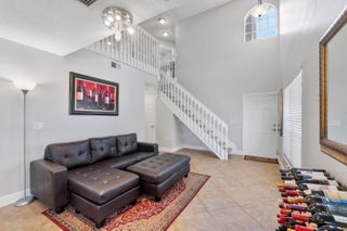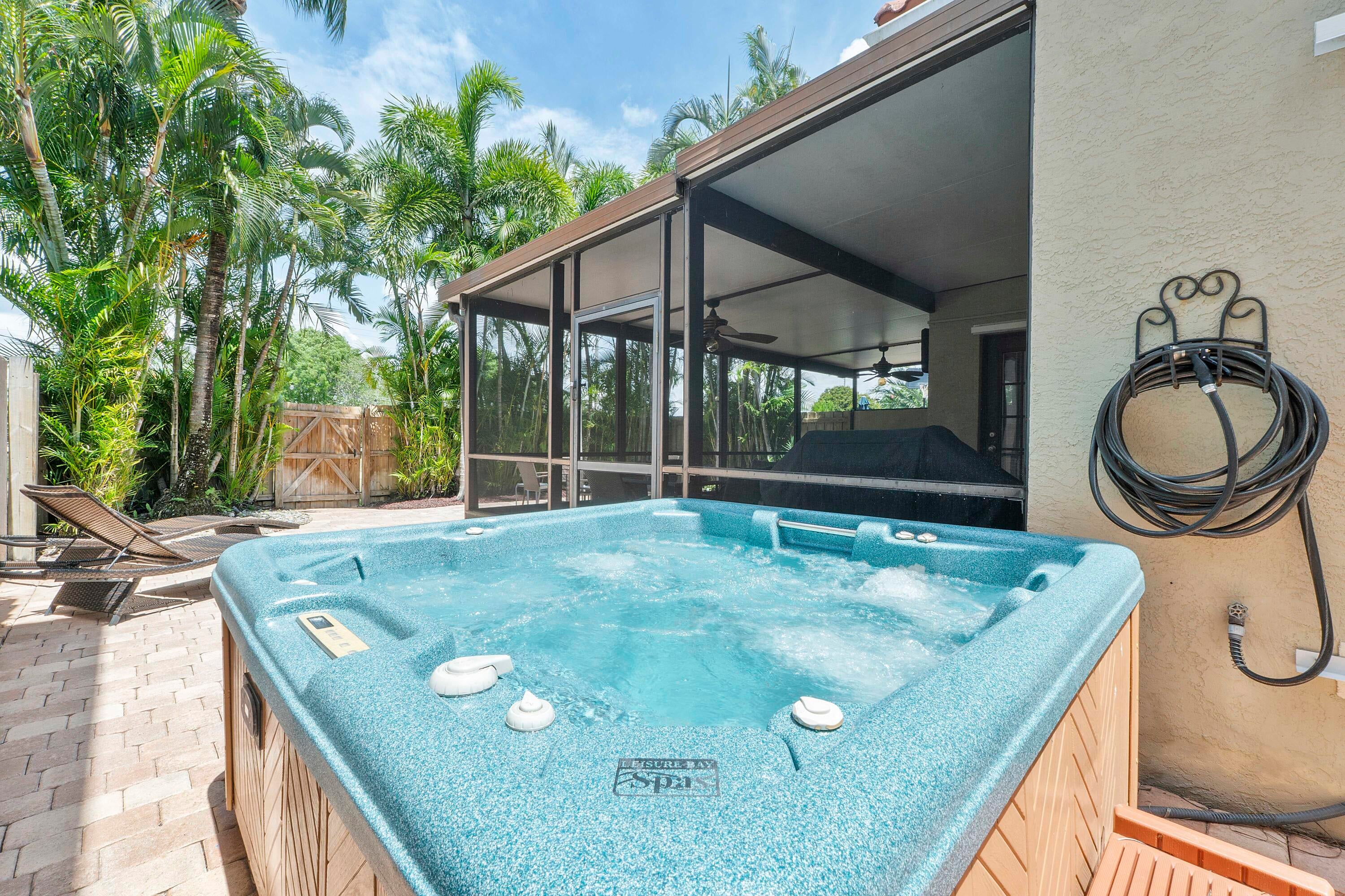 Waterfront serenity meets modern peace of mind in this beautifully maintained Princeton Place gem. Enjoy year-round sunny weather from your private spa, a screened patio for breezy mornings, and no carpet underfoot, this 3 bed, 2.5 bath retreat blends style and simplicity. One of only 20 homes sitting directly on lake. All bedrooms are upstairs for extra privacy, while a 2-car garage adds bonus space for toys or tools. Neighborhood features pool and two fenced playgrounds, walking distance to shops, daycare, and restaurants. Located minutes to beaches, A-rated schools, Turnpike, and I-95--this is where convenience meets calm. Roof 2018, A/C 2023, Plumbing 9/8/25, and lake-fed irrigation = smart living with low maintenance. Transferable warranties (roof, plumbing, AC, bug) for peace of mind