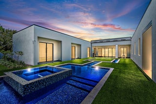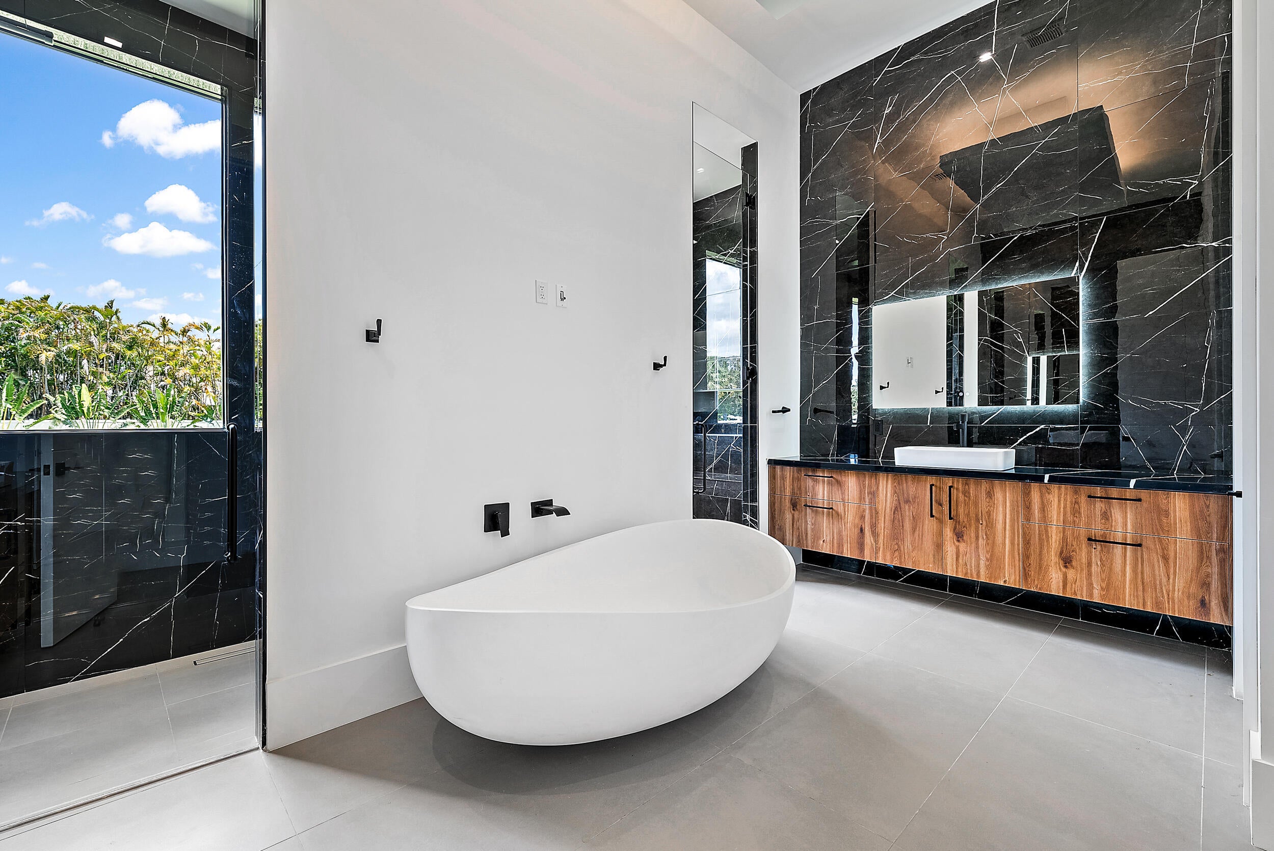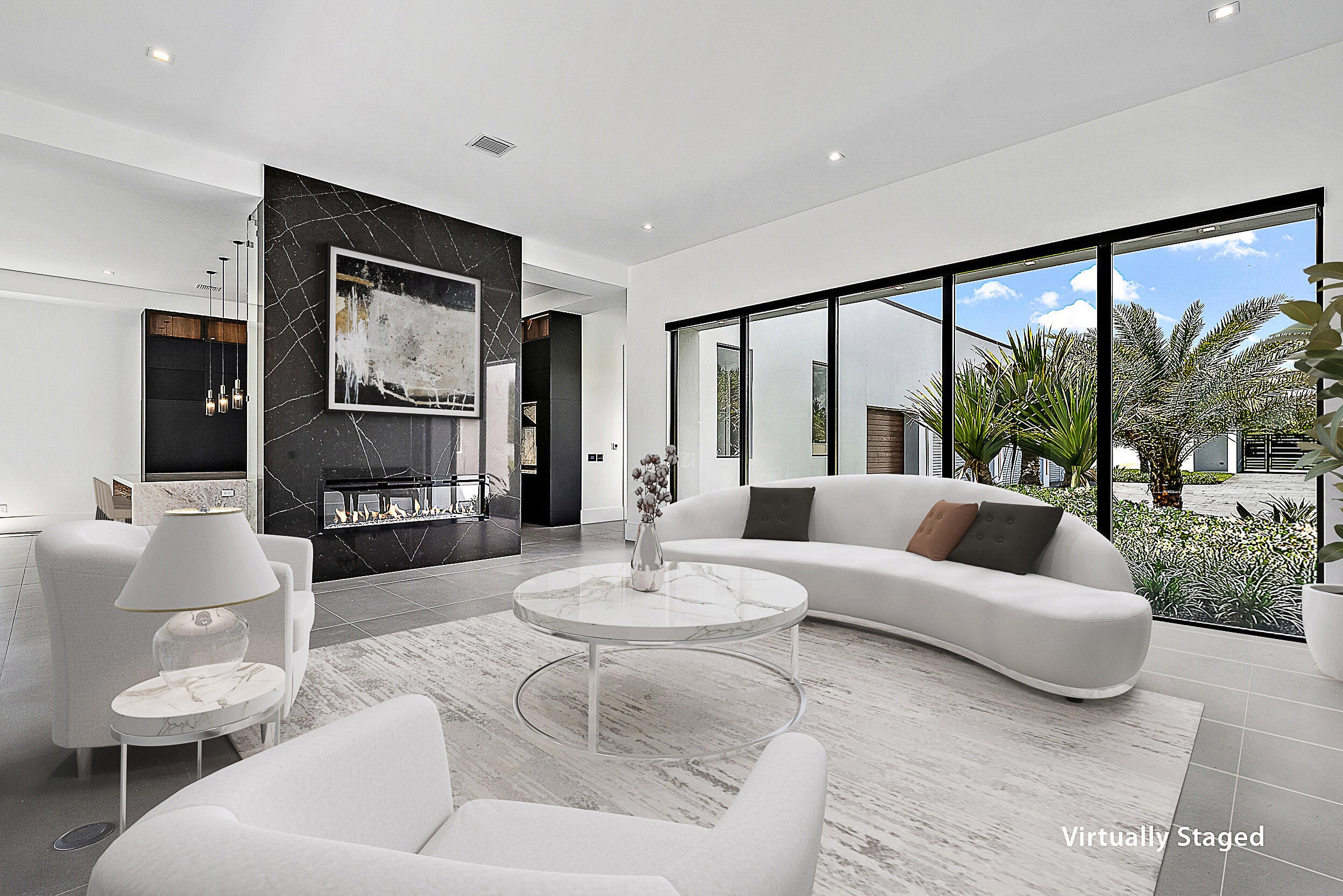 Built in 2022 on over 4 acres, this exceptional property is a dream for car collectors and boaters alike, offering 8 garages (with room for lifts) and direct Intracoastal access. Sleek lines and floor-to-ceiling windows showcase the estate's expansive grounds and resort-style pool. The main house features, eye catching design, a media room/theater, office/exercise room, and other amenities making it perfect for hosting or working from home. The detached guest house offers a full bath, kitchen, and laundry. The vacant lot is potentially available for purchase upon inquiry. The luxurious owner's retreat includes wood floors, a cozy fireplace, a marble bath with dual sinks and water closets, and a walk-in boutique-style closet. The state-of-the-art kitchen is equipped with dual wall ovens, astriking wine wall, a gas stove, push-open refrigerators and freezer, a spacious butler's pantry, and an oversized walk-in pantry. This rare opportunity combines modern luxury with privacy and endless possibilities on the water. All distances, amounts, or sizes referenced are approximations, for initial reference only, but should be confirmed by use of surveys and after actual inspection and inquiry by the Buyer.