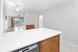Bright and beautifully updated 2nd-floor unit featuring tile floors throughout. Enjoy an open-concept kitchen with quality maple KithcenMaid cabinets along with a new refrigerator, range, microwave and quiet Bosch dishwasher. The unit has an extra large silestone counter top and backsplash. Half cabinets in the dining room provides additional storage. Full master bath remodel in 2021 with a low-maintenance Bath Fitters shower for easy care. Popcorn ceilings removed in the kitchen, hall, living room and dining room. Other upgrades include six panel doors and hardware plus a keyless entry. Lanai is air conditioned. The community includes a clubhouse, pool and library. Owner can remove the desk and cabinets in second bedroom if desired.