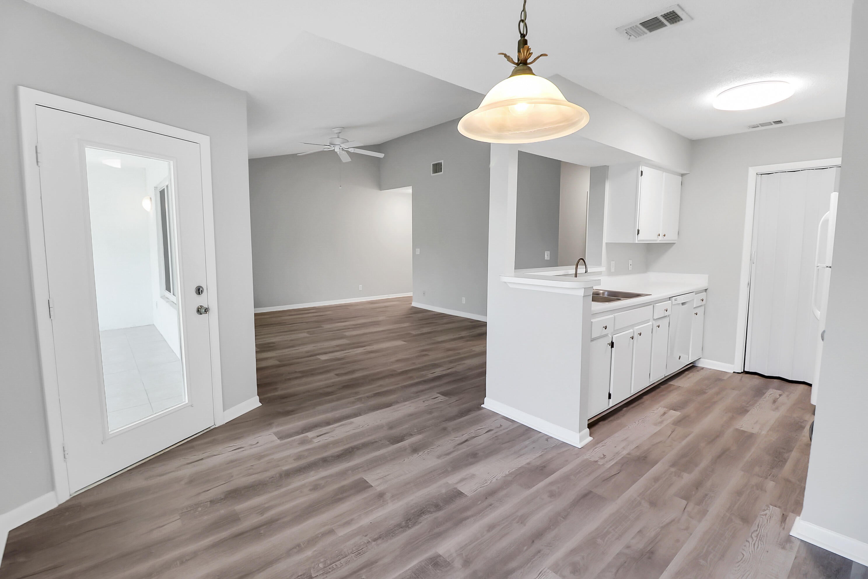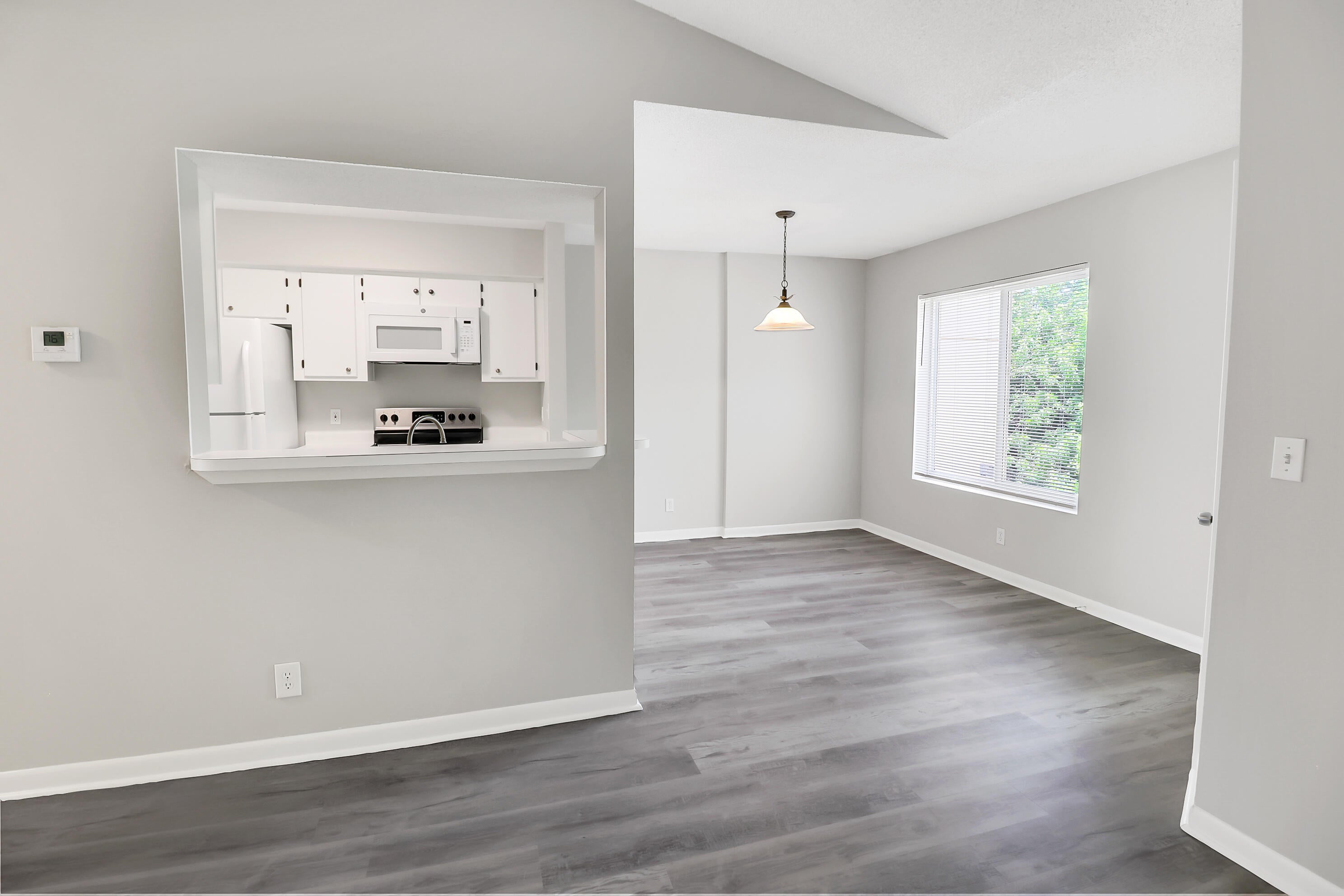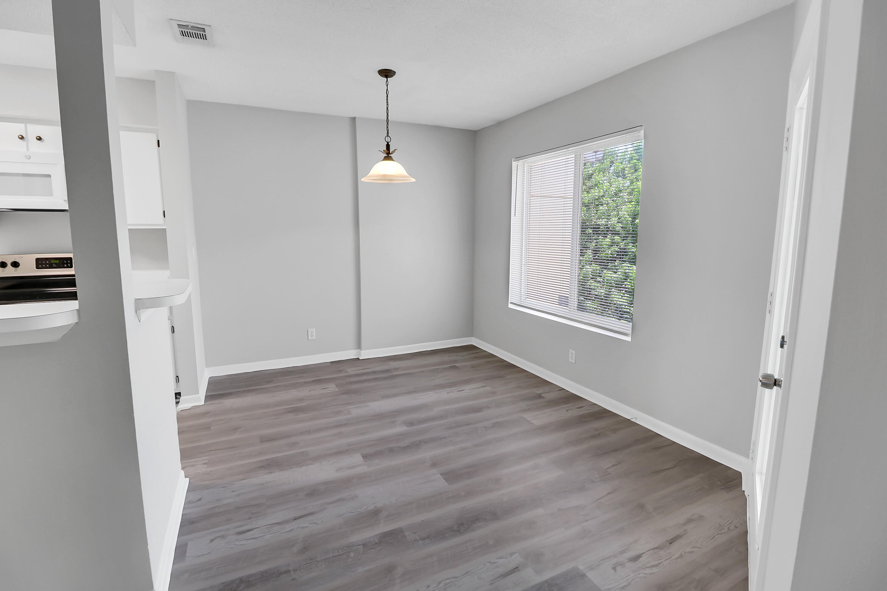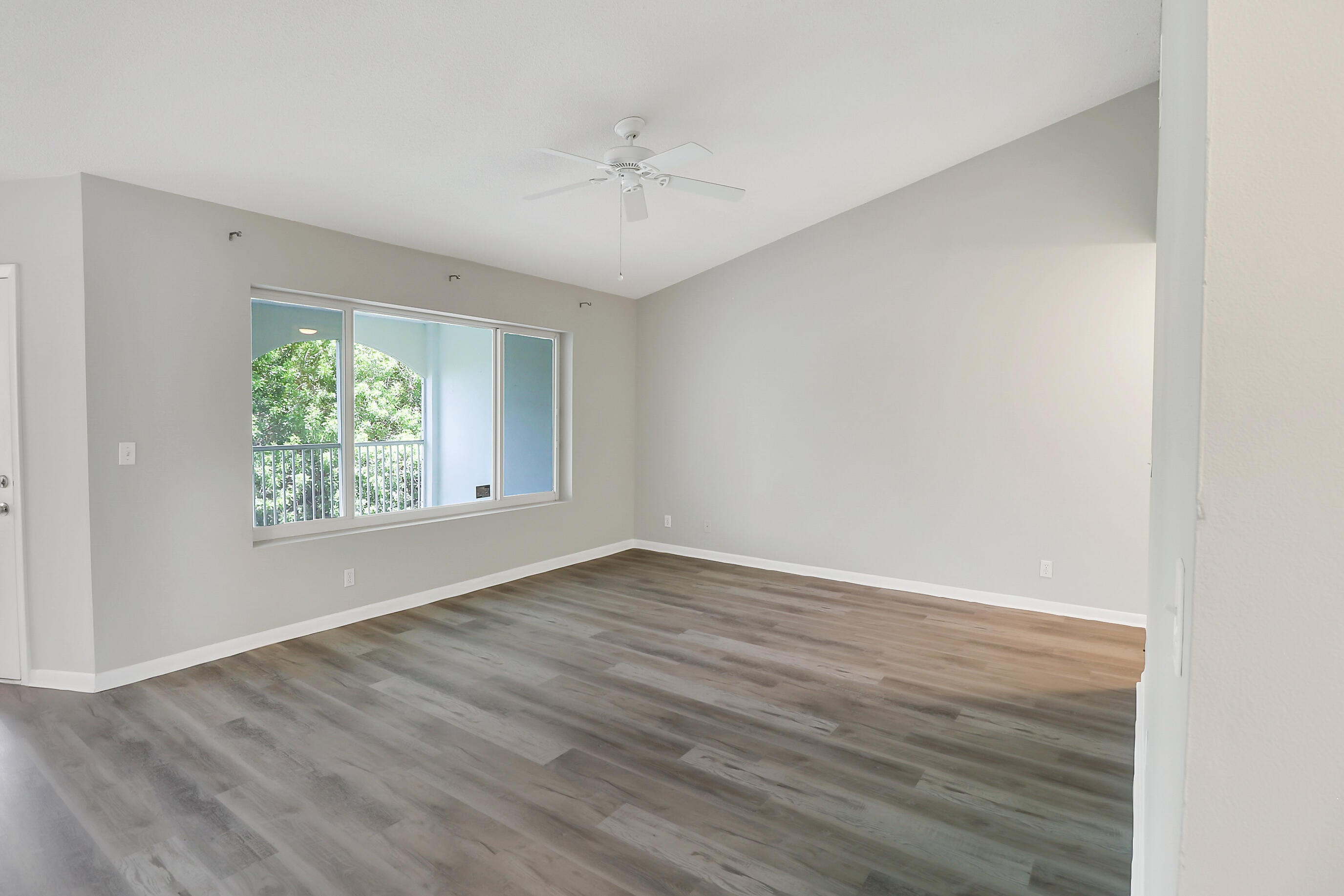 The value is apparent in this light and bright condo with vaulted ceilings and an oversized covered & screened patio backing up to a private copse of trees & foliage! Brand new luxury vinyl plank flooring was installed throughout and everything freshly painted in a move-in & relevant color to highlight the all-white cabinetry, white blinds & newer kitchen appliances incl. a washer & microwave in 2025. The impact windows & Carrier AC from 2020 are other added bonuses. The community is minutes away from I-95 and perfectly situated for accessing both east & west points of interest & activities and shopping/dining spots. There's also an attractive community pool & small clubhouse.