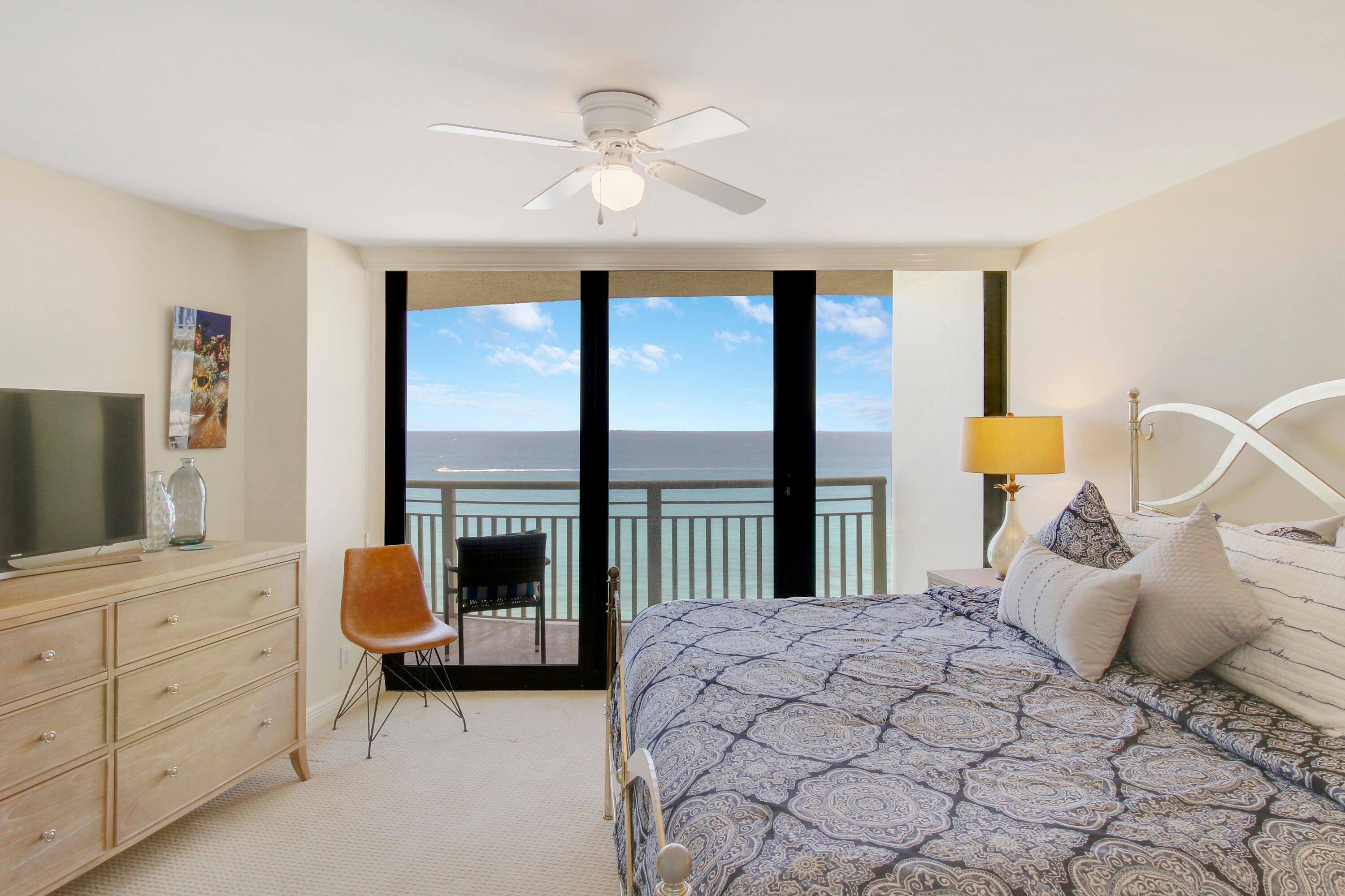 Incredible ocean front condo now available for rent! Floor two ceiling sliding glass doors, large balcony with access from each room. Furnished with the beach in mind, casual and comfy decor. Large kitchen, granite counter tops and stainless steel appliances. The primary suite has a comfortable King bed. 2 twins in guest room, large walk-in showers in both bathrooms. Washer/Dryer located inside unit. Tiara is a breathtaking oceanfront development. It offers amazing amenities, including a heated swimming pool, clubhouse, ladies and gentlemen's fitness centers, tennis court, Tiki Bar where you can grab a bite and head to the beach famed Marquis owners lounge and restaurant on the top (43rd) floor perfect panoramic views of Palm Beach County and the blue waters of The Atlantic Ocean.