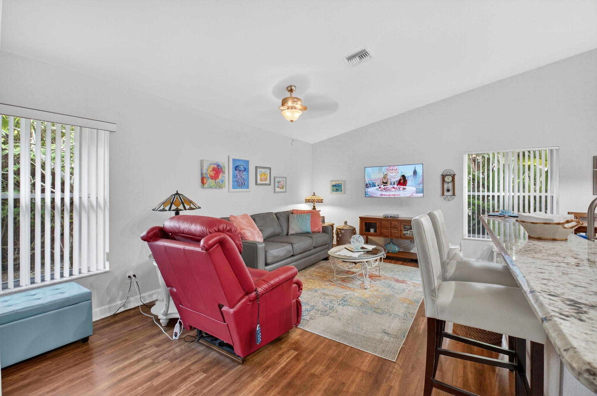 LOCATION !! LOCATION!! LOCATION !!Welcome home to the inviting 4788 CypressDr S, exceptional, turnkey and move in ready!Cathedral ceilings embrace the open concept dining room, living room, kitchen and familyroom. Your eat in kitchen features all custom cabinetry, all new stainless-steel appliances,breakfast bar and sparkling granite countertops,under-mount stainless steel sink and storagegalore. The Laundry room with washer and dryer offers another cache of storage, separate sink and garage access. A spacious master bedroom with tray ceiling and en suiteis light and airy. This oasis offers an extensive walk-in closet with primary bathroom that has dual sinks, ambient lighting, grand roman tub and a separate capacious updated shower with rainfall head.Two additional bedrooms are spacious, light and bright with large closet space followed by updated full second bathroom. Countless amenities await, including wireless opening for your 2-car garage, plantation shutters, central vacuum system, automatic sprinkler system and the recently pressure cleaned. resanded and sealed paved driveway and walkways. Easy open and close Hurricane accordian shutters provide your home with added protection. Enjoy and unwind with the tranquil south Florida lifestyle in your covered screened lanai. Cypress Creek is a family friendly, all age, prestigious gated community in sought after Boynton Beach. Many community events serve to make quick friends with your neighbors. Enjoy a bonus of low HOA which includes 24/7 manned guard gates with common area maintenance, and private road maintenance. This home is also located in an A rated school district which adds to this fabulous community. Enjoy spectacular shopping, five star dining, casual dining, equestrian events, area community events, and world class beaches in luxurious Palm Beach County Florida. WELCOME HOME