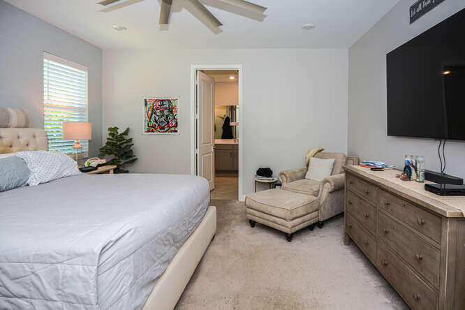 Stunning 5-Bedroom Home in the Highly Sought-After Community of ArdenWelcome to this beautifully maintained 5-bedroom, 3.5-bathroom home located in the desirable, amenity-rich community of Arden. Thoughtfully designed with both comfort and style in mind, this home features a spacious owner's suite conveniently located on the first floor, along with a versatile office/den.Enjoy elegant tile flooring throughout the main level, plush carpet upstairs, and high-end finishes including quartz countertops, crown molding, and an abundance of kitchen cabinetry. Impact-resistant windows provide safety and peace of mind, while the fully fenced backyard offers privacy and space for outdoor living.Modern conveniences abound, including a tankless water heater, gas utilities, and energy-efficient features. This home seamlessly blends luxury with functionalitymaking it an ideal choice for families of all sizes. Community Highlights: Top-rated "A" schools Resort-style pool and hot tub Clubhouse with outdoor kitchen and quaint café Fully functional community farm Kayaking, fishing, and extensive biking/jogging trails Soccer fields and lush green spaces
