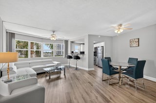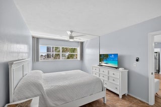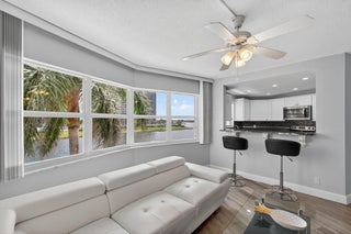 Ports O'Call is a 55+ community on the intracoastal in North Palm Beach. The building has been recently painted lovely white with navy blue accents. This unit offers intracoastal views from the kitchen, master bedroom and living room. Master bedroom features walk in closet and on suite bathroom. Kitchen renovated and Hurricane impact windows installed in 2019. Second bedroom offers a walk in closet and private entry door. Impeccably maintained. Furniture is offered so you can bring your suitcase!