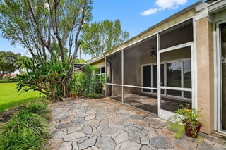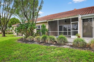 Enjoy relaxed living in this well-appointed 2 bedroom, 2 bath villa nestled in a peaceful community. This home features serene lake views, a spacious floor plan and a large private patio perfect for morning coffee or evening gatherings. The updated kitchen includes granite countertops, SS appliances and a large island offering both style and functionality. Both bathrooms have been tastefully updated creating a comfortable, move-in ready space. Aberdeen is a vibrant 55+ community offering pickleball, tennis, a fitness center, a pool and so much more. With no stairs and no mandatory membership fees, this villa offers exceptional value and an easy lifestyle in a well-maintained, community-oriented setting. A full one year home warranty is included for added peace of mind. Welcome home!