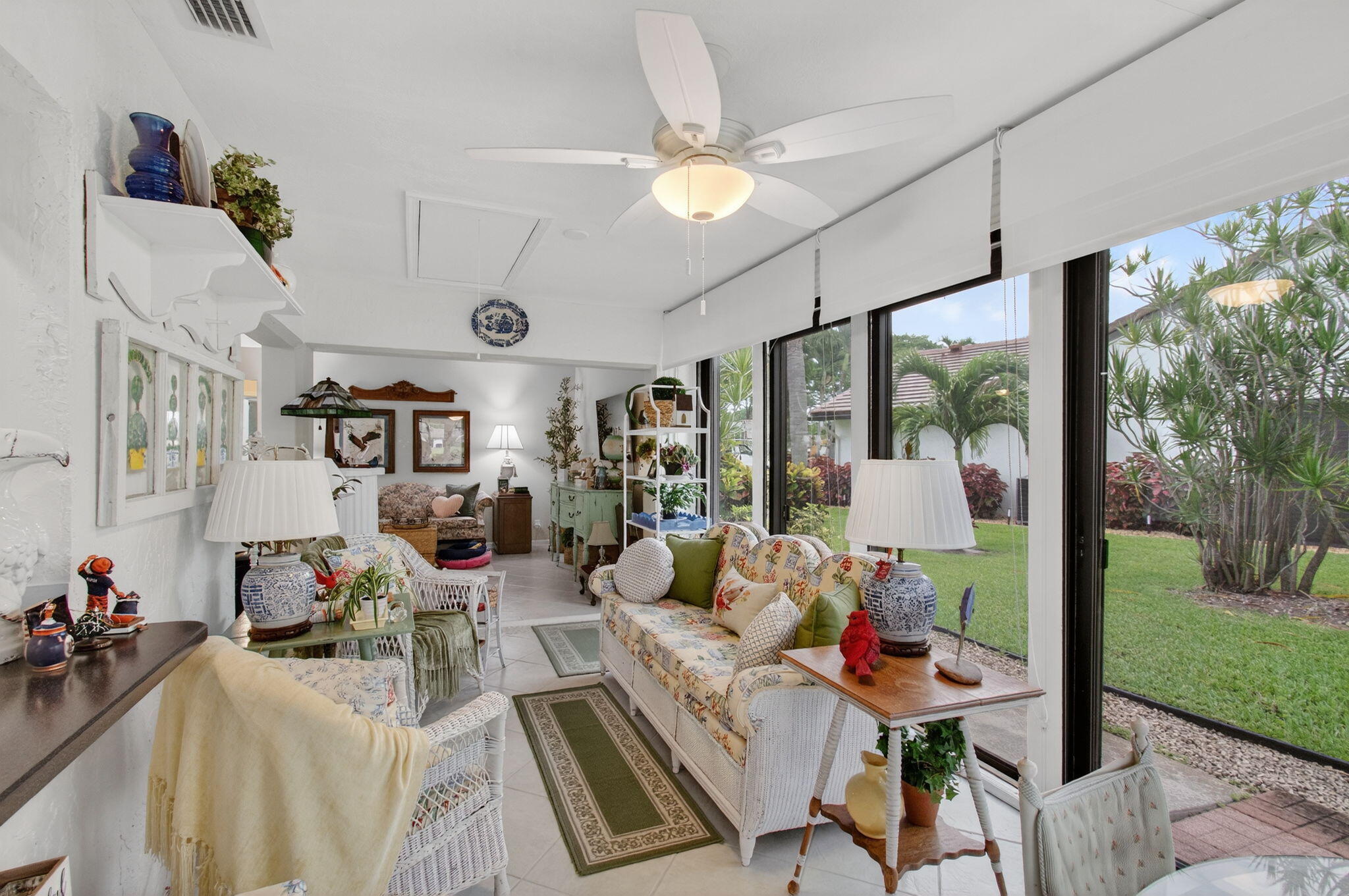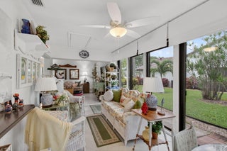 RARELY AVAILABLE IN THE LANDINGS @ ABERDEEN...Immaculately maintained corner unit, 3 bedroom/2bath villa with expansive lake views and oversized front courtyard. Fabulous location just steps to the satellite pool and walking distance to the main clubhouse. This villa is a true 3 bedroom, with complete accordion shutter hurricane protection and has been updated. It has the rare feature of an oversized laundry room and pantry and pull down stair attic access.. New roofs and gutters and exterior painting were recently completed in 2024. There is a $251 monthly assessment that can also be paid in full. Comcast Triple Play (home phone, upgraded cable and internet) is included in your HOA fee.For more information about The Landings please visit their website at Landings-In-Aberdeen. Enjoy the many amenities of Aberdeen East with NO MEMBERSHIP FEES. The clubhouse amenities are all included in your HOA fee. Enjoy this resort style living with an active clubhouse, live entertainment in the ballroom, resort pool area, 3 satellite pools, gym, card rooms, tennis courts, pickle ball courts, shuffleboard, serene walking trails and too many clubs and activities to mention. Aberdeen East is a beautifully landscaped community in a great location convenient to shopping, restaurants, golf courses and beaches. All measurements are approximate. Information herein deemed reliable and subject to errors, omissions or changes without notice.