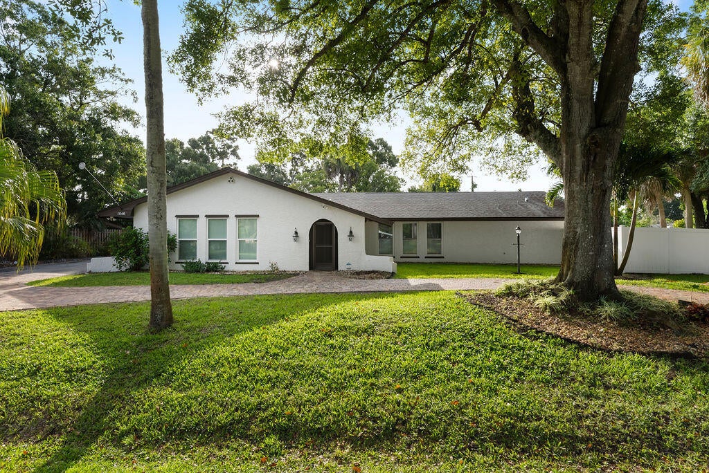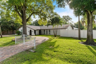 BACK ON MARKET! BRAND NEW ROOF with transferable warranty and PRICED BELOW CURRENT APPRAISED VALUE! This beautifully maintained 4BR/3BA home showcases timeless Old Florida charm on a private 0.64-acre lot with nearly 2,000 sq ft of updated living space. The split floor plan, quality finishes, and superior craftsmanship provide comfort and durability throughout. Enjoy the screened, solar-heated saltwater pool, lush tropical landscaping, and expansive 900+ sq ft paver pool deck, all ideal for outdoor living. A 6' privacy fence and gated circular paver driveway add convenience and security. Classic Florida character meets modern updates--and with a brand new roof plus pricing below appraised value, this one is a rare find. Schedule your showing today!Major Improvements " New roof (transferable warranty) " Solar pool heating " All windows/doors replaced (2020) " Rain gutters w/lifetime guarantee (2020) " Spray-foam insulation added to attic & garage (2021) " A/C serviced every 6 months " Public water + well + septic " 3rd bath converted to larger laundry (plumbing still in place) " Pool screen enclosure replaced (2019)