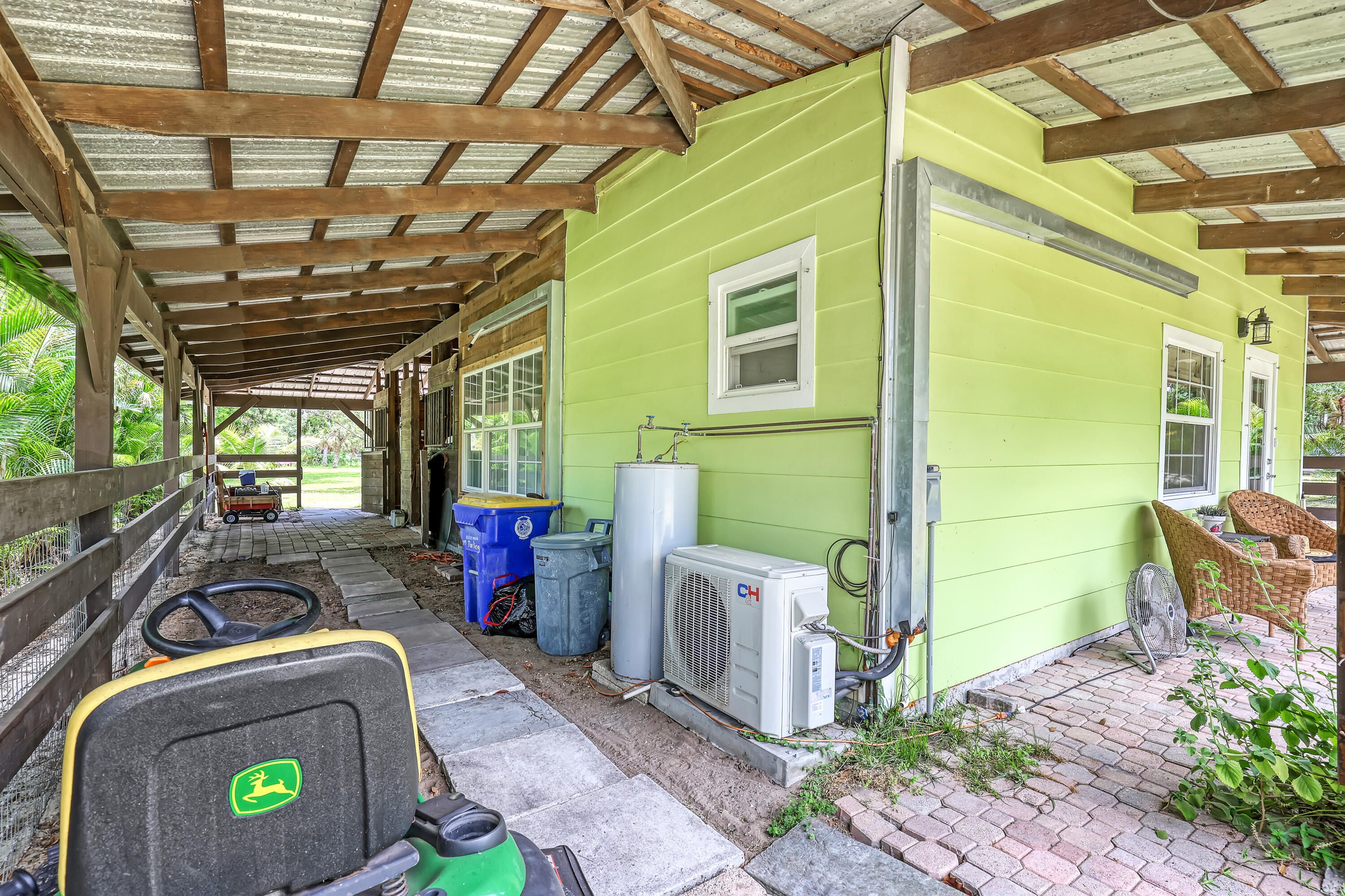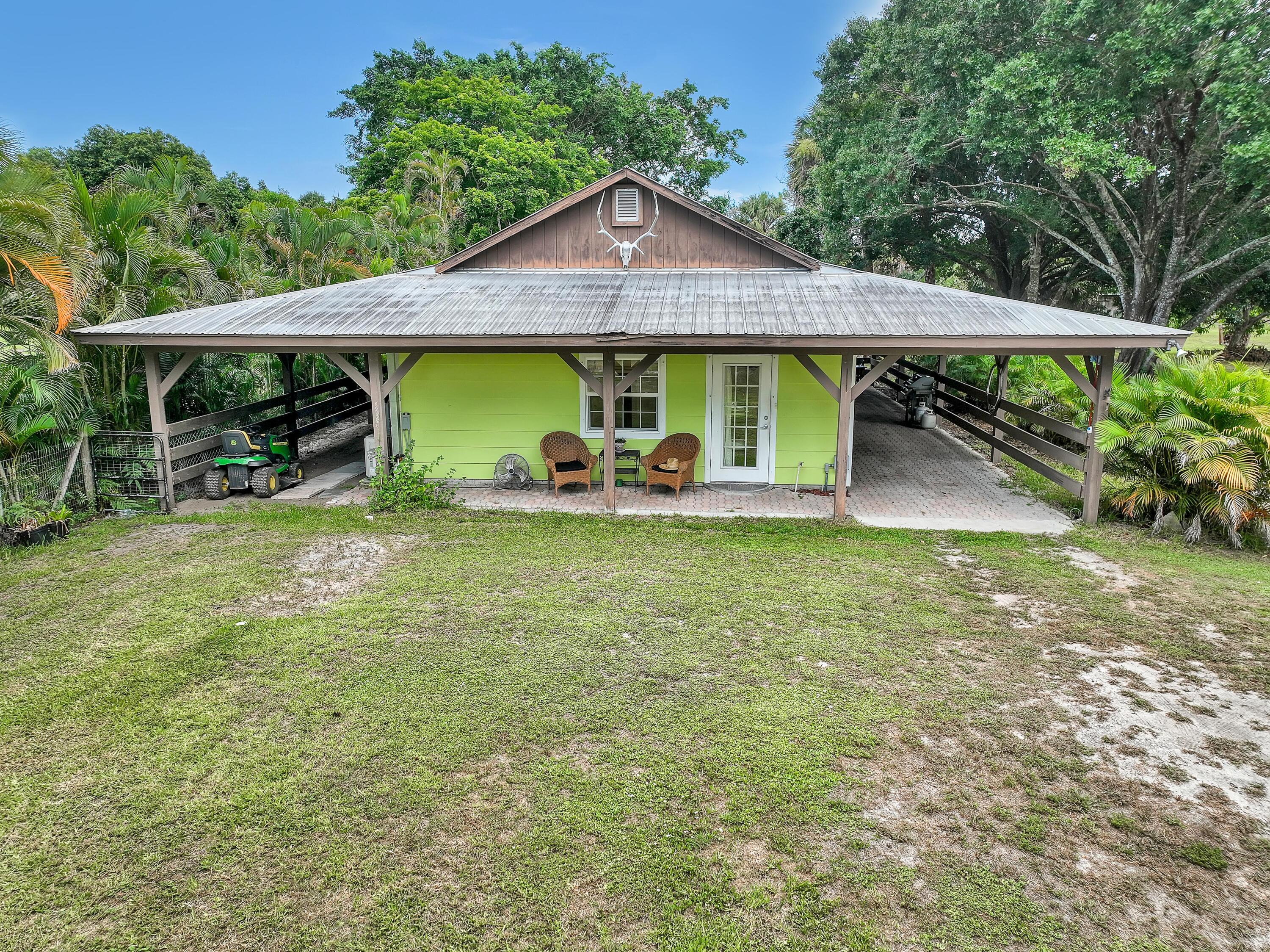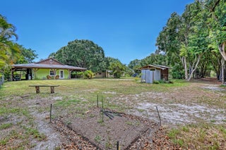 Rural Florida Oasis in Stuart. Nestled in Stuart's heart is this 2.18 acre agriculturally zoned estate. The 3 bed, 2 bath home features 1240 sq ft under air and offers cozy charm. A separate guest house features 1bed, 1bath with 640 sq ft under air. A magnificent horse stable with a wraparound porch is perfect for equestrian life. A spacious man cave workshop with electric suits hobbyists, and a she-shed with electric, plumbing and outdoor shower adds unique flair. Ideal for horses, gardening or off-grid living, the lush grounds support fruit trees and wildlife, evoking a serene retreat. Just minutes from historic downtown, beaches, and nature preserves, this property blends rural peace with modern convenience. With room for livestock, solar setups or a small farm, it's a rare gem!