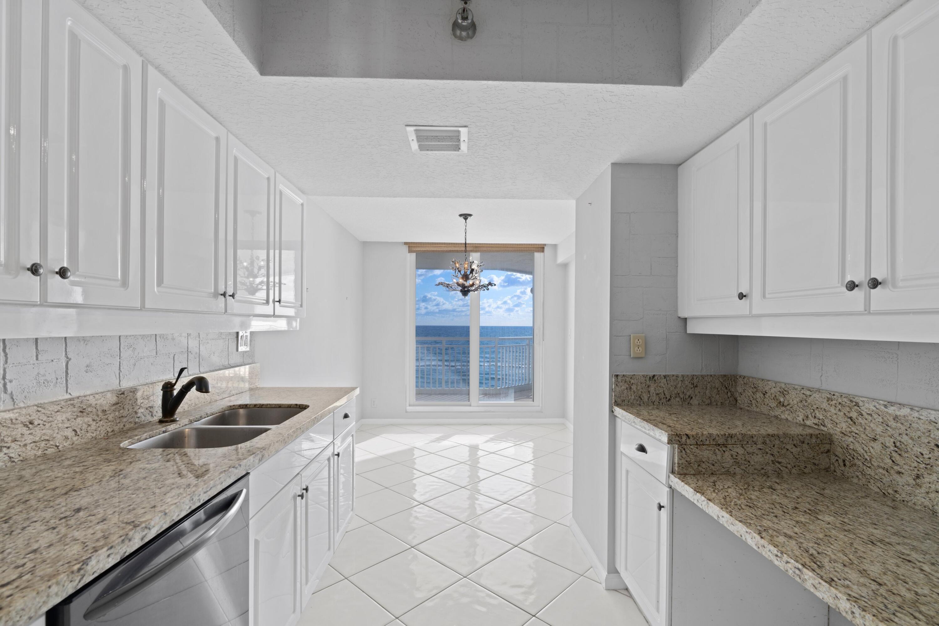 Don't miss this incredible opportunity to own a spacious 3-bedroom, 2.5-bathroom residence with breathtaking direct ocean views from the living room, dining room, and kitchen.Arrive in style via your private elevator and step into a bright, open layout featuring elegant white tile flooring throughout the main living areas. The gourmet kitchen is outfitted with sleek white Italian cabinetry, stainless steel appliances, and granite countertops--perfect for both everyday living and entertaining.Enjoy your morning coffee in the oceanfront breakfast room or take in the sea breeze from your expansive oceanfront balcony.The primary suite is a peaceful retreat with wall-to-wall neutral carpeting, a walk-in closet . The luxurious ensuite bathroom features dual sinks, a separateshower, and a Jacuzzi tub. The second bedroom also includes wall-to-wall carpeting, a walk-in closet, balcony access, and a private ensuite bath with a tub/shower combination. A third bedroom/den offers flexibility for guests or a home office. The spacious utility room includes a full-size washer and dryer along with ample storage cabinetry. Located in The 3600 Condo, an exclusive boutique building with only 24 residences, all with direct ocean views. Amenities include a heated oceanfront pool and Jacuzzi, fitness center, social room, two covered parking spaces, additional storage, and deeded beach access. Prime location in South Palm Beach-just a short stroll to the world-renowned Eau Palm Beach Resort & Spa, fine dining at Plaza del Mar, the popular Dune Deck Café, the new Publix, and Raymond Floyd's Par 3 Golf Course. You're also minutes from Worth Avenue's upscale shopping, the Kravis Center for the Performing Arts, and Palm Beach International Airport. Luxury, location, and lifestyle - this one has it all.