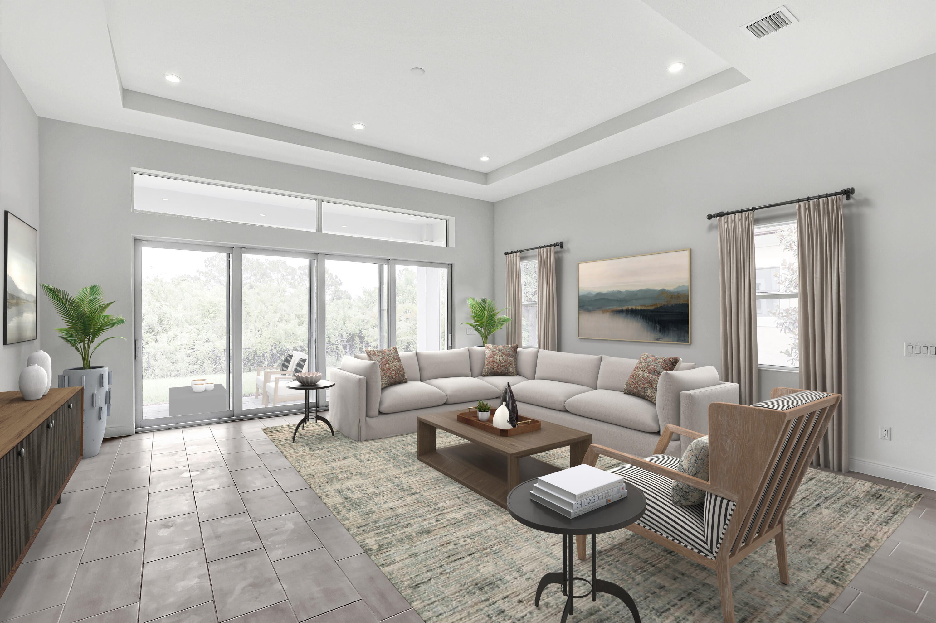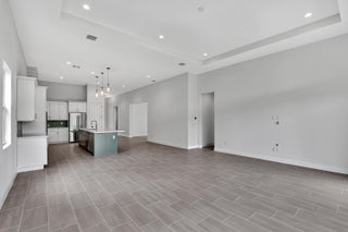 Located in the exclusive, gated Tesoro Club--a premier private country club community--this move-in ready 3-bedroom, 2.5-bath home offers a perfect blend of luxury, comfort, and style. The open-concept layout features elegant tray ceilings, sleek porcelain flooring, and impact-rated windows and doors that bring in abundant natural light. The gourmet kitchen is a chef's dream, with a 5-burner gas cooktop, stainless steel appliances, and quartz countertops. The spacious primary suite overlooks a serene backyard retreat, offering peace and privacy. Ideal for entertaining or relaxing, the backyard is perfect for outdoor living, and an 8' extended garage provides room for a golf cart. Experience elevated living at Tesoro Club!