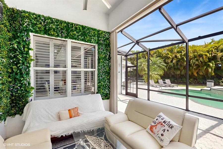 This lovely rmansion, redesigned to be a tranquil retreat, is just a short distance from the horse show. It sits on about 1/2 acre of land, offering privacy and great views of the golf course. With six bedrooms and four bathrooms, the house varies with a modern style and covers 3,352 square feet. The main living areas have stunning pool views, blending indoor and outdoor spaces perfectly. The property also includes a spacious three-car garage with lots of storage space. Everything in the house has been updated, including the roof, appliances, kitchen, flooring, and lighting. Located in a quiet cul-de-sac, this home backs onto the golf course, making it even more peaceful.