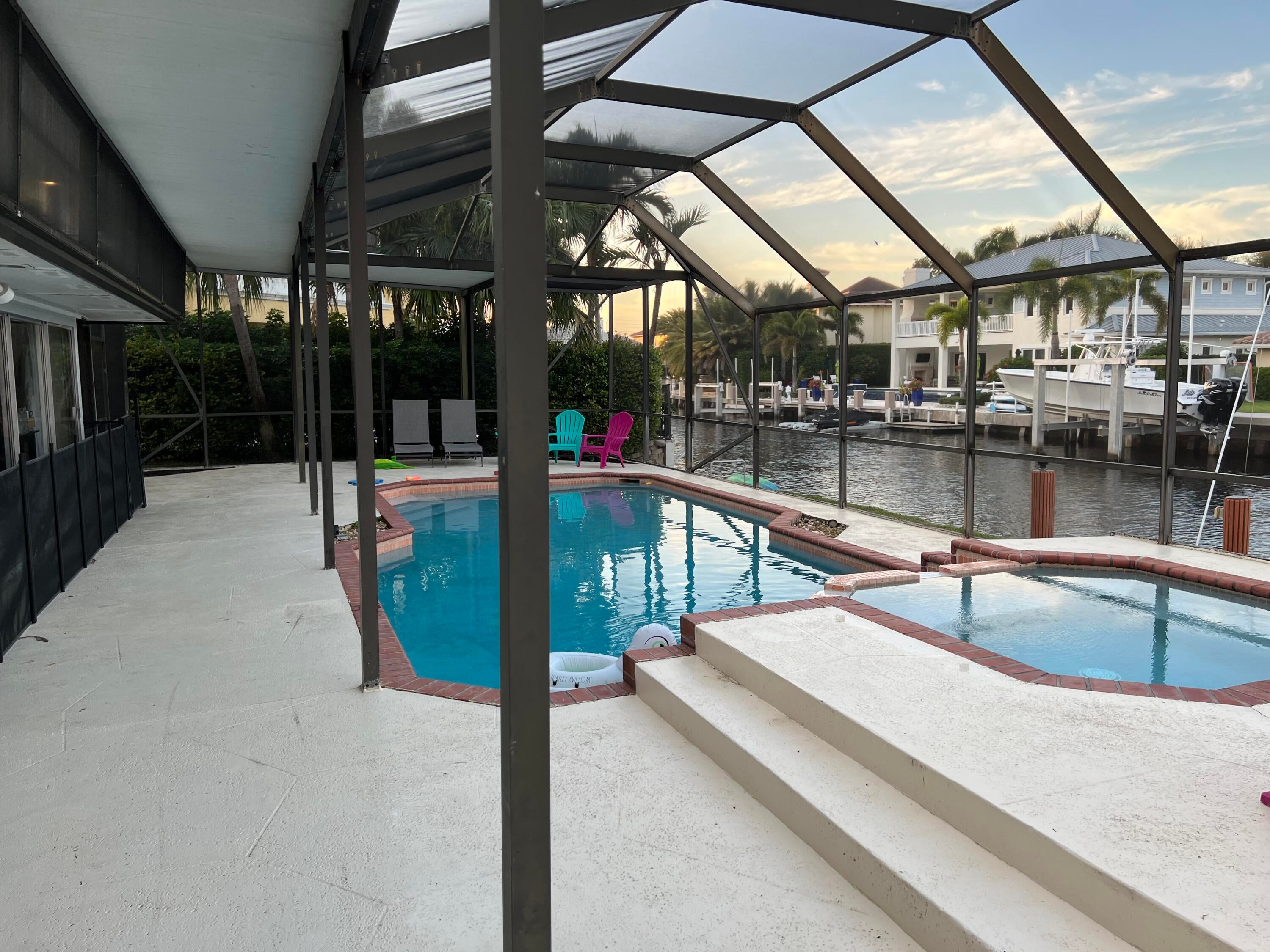 Charming, clean, waterfront house on a deepwater canal walking distance to the beach. Located in the much desired Lake Rogers neighborhood, this East Boca Raton home provides amazing deepwater boat access 20 minutes from the ocean (Boca inlet) with no fixed bridges! Nestled amongst multi-million dollar estates the home has a tropical feel residing in a quiet setting. The house was remodeled floor to ceiling and boasts an open floor plan with a large screened in pool, newer AC, 80ft of seawall frontage, jet ski dock, garage, 3 bedrooms and 2 bathrooms along with a 10 x 20 bonus area off the kitchen. ...And it's literally walking distance to Spanish River beach, parks, and shops. Shown by appointment only.Yard and Pool Service is included. Pets ok.