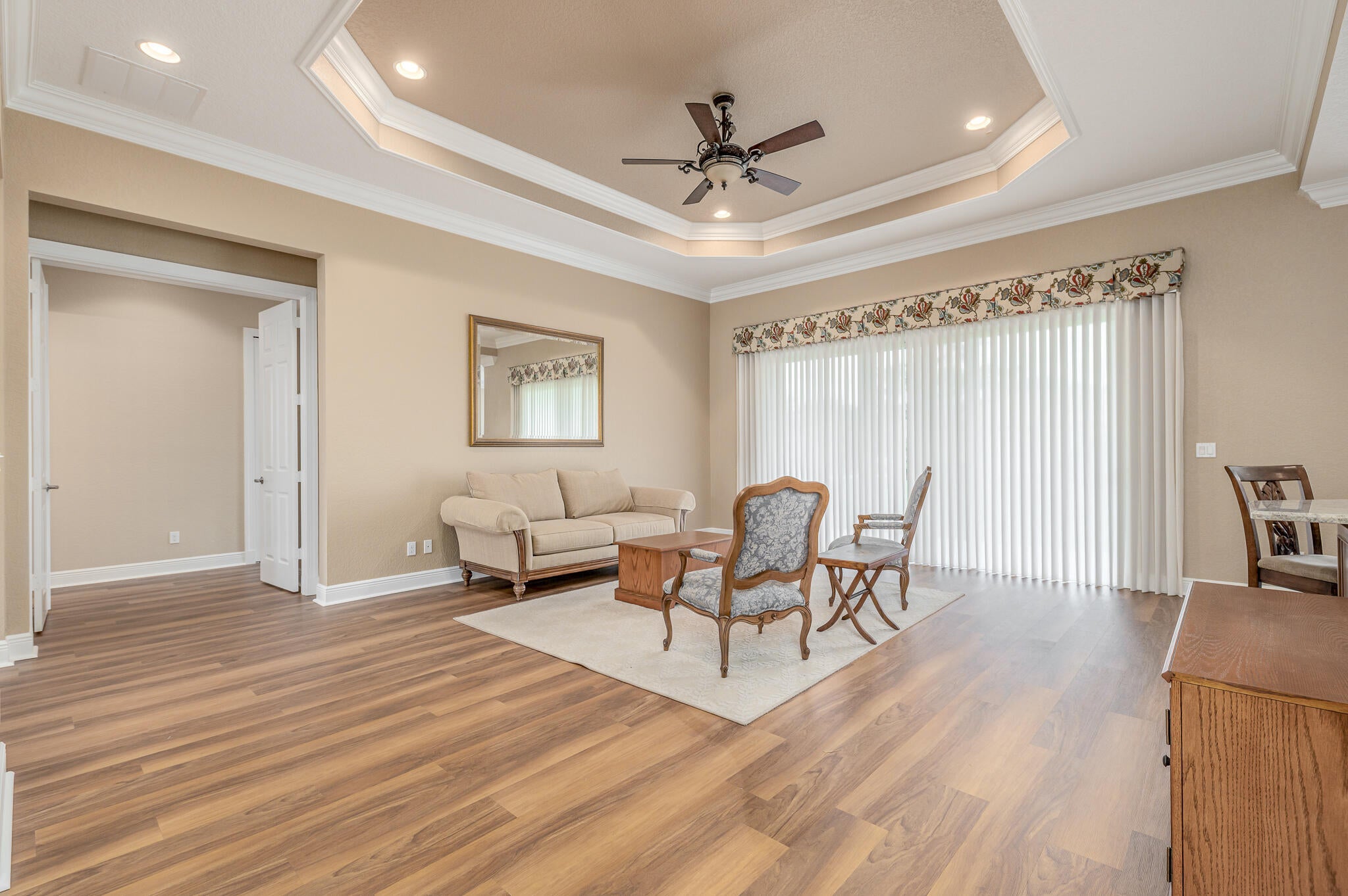 This beautiful Tres Belle home is one of the best values in Martin County! The house is a Kolter-Homes Avalon model with 2541 square feet of living area featuring a great room concept with a split-plan that has three bedrooms and two baths. The very large great room easily accommodates your desired layouts for living and dining. When you enter the house, you will immediately see the beautiful coffered ceilings, the custom crown moldings, silhouette window shades and the luxury vinyl flooring throughout the house. The master wing is large with two walk-in closets separating the bedroom from the bath. The master bath is very accommodating with his/her's vanities, shower stall, walk-in tub and private water closet. The private guest wing is on the opposite side of the house with alarge walk-in closet, an adjacent bath that could double as a cabana bath in the future and there is an exterior door to the backyard. The custom kitchen with 42" cabinets, pullouts, granite counter tops, a new gas cooktop and a built-in electric oven is across from the large bright breakfast nook making that area great for cooking, eating and socializing. The water heater, cooktop, and whole-house generator use natural gas. A connection is provided for a gas dryer. This home sits on a ½-acre lot with an expansive and easily-accessible backyard that is a blank palette which offers the ability to add a pool or even expand the home, should you wish to do so. Tres Belle is a gated community with 171 homes and, for many, is the most desirable in Martin County. The large home sites, the lakes and the preserves give homeowners privacy and an openness found in very few communities. The over-4 miles of private streets include sidewalks for biking, walking, jogging, walking your dog, and meeting neighbors. The quick access to I-95 and the Turnpike are a plus. For a change of pace, there are two parks within a 5-minute drive. Halpatiokee Regional Park offers tennis, pickleball, walking and biking trails, and various other sporting activities. Atlantic Ridge State Park borders Tres Belle and provides pristine walking trails and an abundance of wildlife. Tres Belle is also nicely situated with proximity to shopping, highways, and multiple school options. The Anderson Middle School and The Treasure Coast Classical Academy charter school (which is expanding to all 12 grades in fall, 2025 per their webpage) are both within walking distance. The $364/Mo HOA fee provides for maintenance of all common-area properties, a great Comcast TV package, high-speed internet, ADT security monitoring and funding for ongoing maintenance including reserve funding. Compare this house and the Tres Belle community to other developments in the area and you will find this house offers greater square footage and a ½-acre lot size with numerous upgrades at a much more reasonable price than other home options in the area. You will not be disappointed!