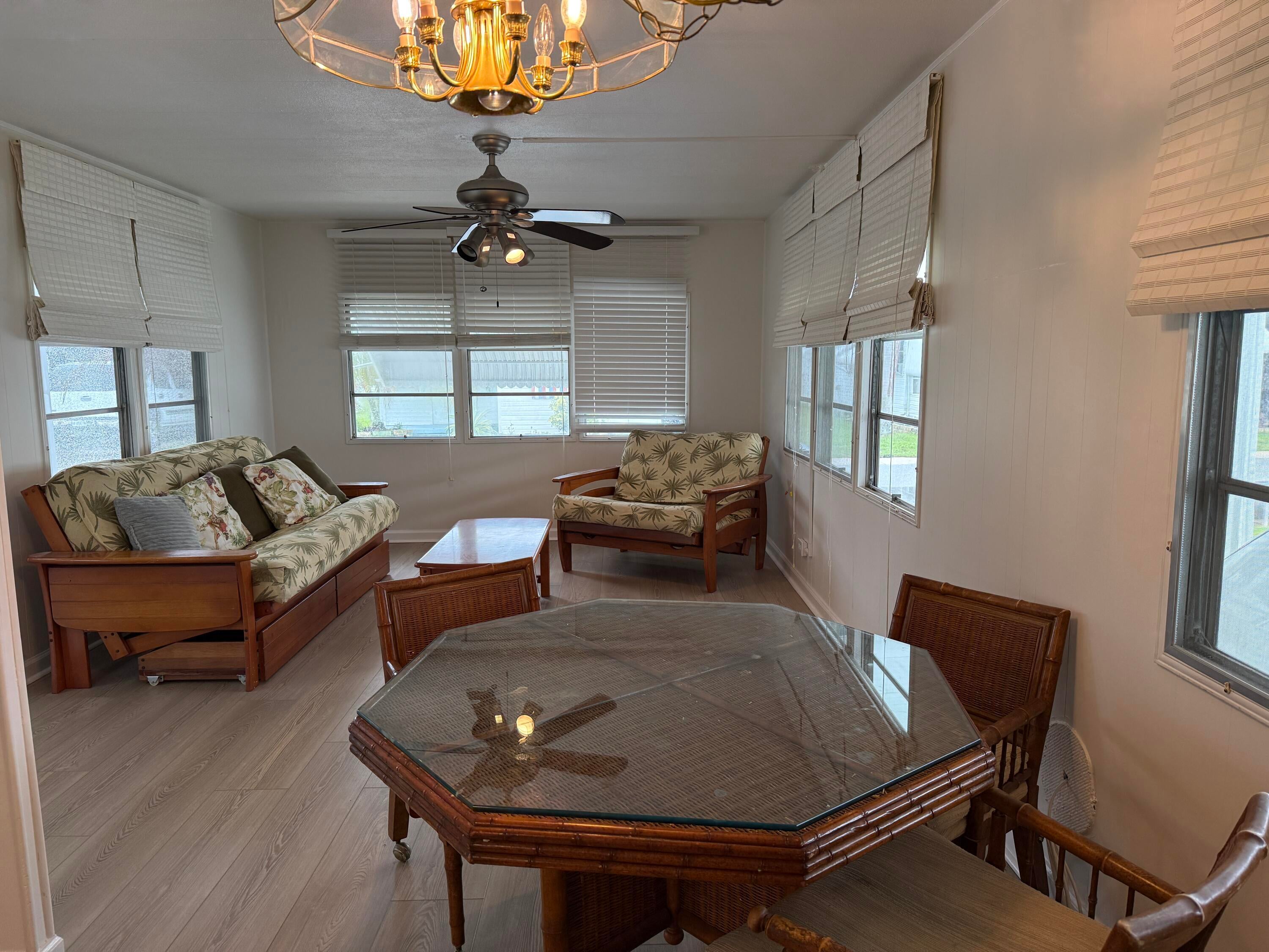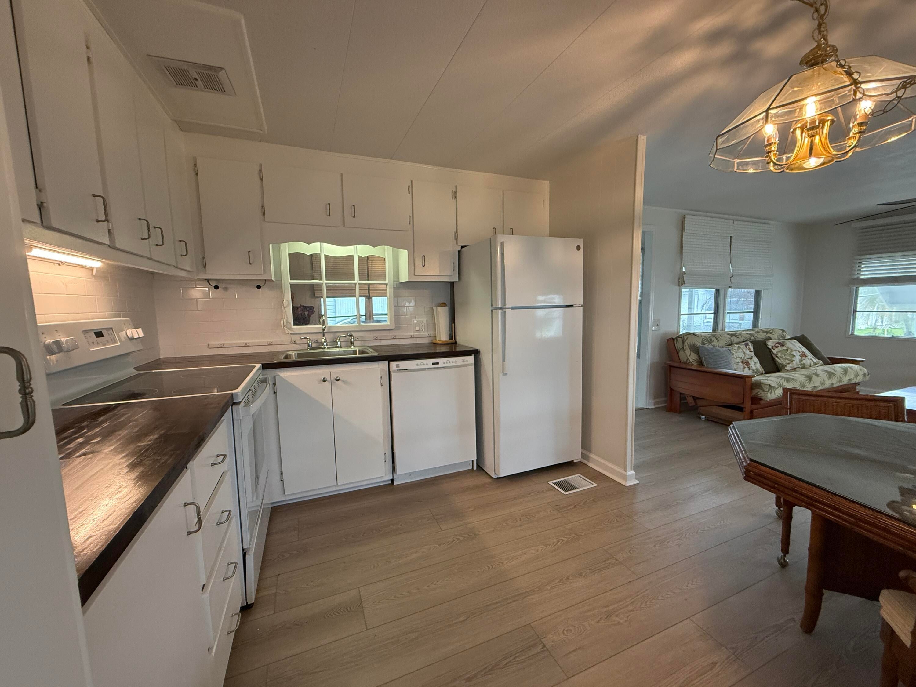 Remodeled 2 Bedrm/2 Bath 1969 Manuf home in Hidden Harbour 55+ yachting community.. The flooring was replaced w 100% Vinyl Plank flooring thruout. The Kitchen cabinets were restored & painted w new hardware, new butcher block counter, tile backsplash & white appliances. New Kitchen sink, faucet & related plumbing. New GFCI receptacles in Kitchen & both Baths. The Kitchen is open to the Dining Area & light filled LR. The Primary Bedrm is in the rear of the home w built-in closets and redone Primary Bath on the Hall. The 2nd Bedrm is off the LR w it's own full bath. Both Bathrooms have new Vanities & chair height toilets. A newly finished bonus room under the carport w window a/c could serve as office, tackle room etc w laundry room next door. New 3.5 Ton HEAT PUMP 2025. $350/mo COA fee.Hidden Harbour is located on the Manatee Pocket minutes to the St. Lucie Inlet, Indian River & Intracoastal Waterway. It boasts a 72 slip marina, Clubhouse, Pool, Shuffleboard & a host of activities. Also available is a 26 foot Paceship sailboat "Increase" which was lovingly restored at a cost of over $34K w newer Yamaha outboard. $14,000 If purchased with the home. Boat Survey available. It was appraised for $20K before the recent work done and has been kept up (hull cleaned monthly, teak varnished 2024, motor run monthly.