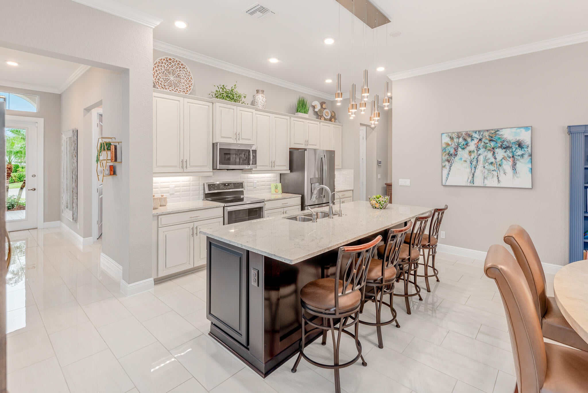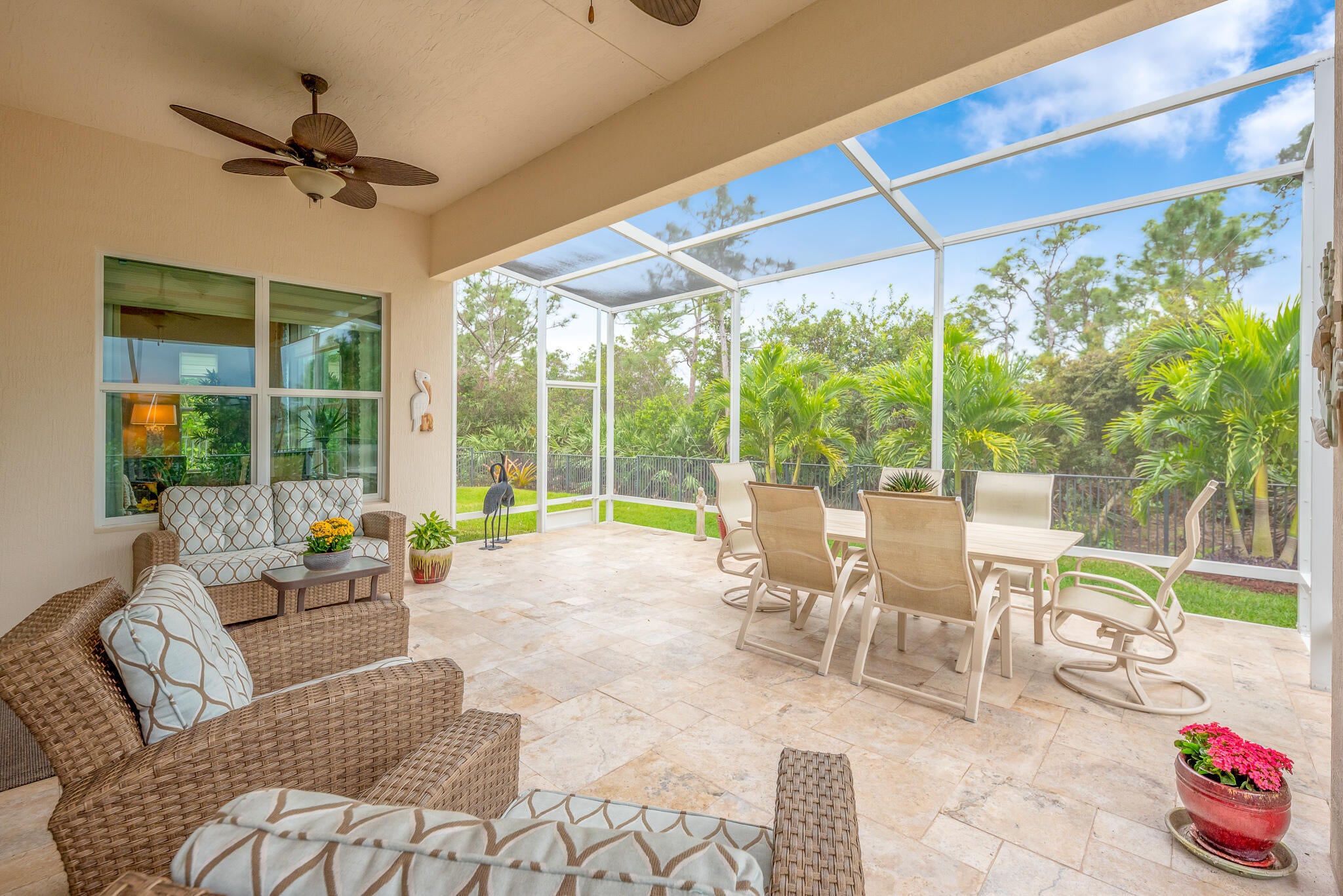 Coastal Elegance Meets Modern Convenience! This beautifully upgraded 3-bed, 3-bath former model home situated in a quiet cul-de-sac is designed for effortless Florida living. Featuring impact glass throughout for peace of mind and energy efficiency, this home boasts new designer light fixtures both indoors & out, new tile flooring for a fresh, stylish feel, and a new epoxy floor garage. The oversized screened patio and fenced yard provide the perfect outdoor retreat. Located in the desirable gated community of Banyan Bay, residents enjoy access to a state-of-the-art clubhouse with a heated pool, fitness center, activity room, and included lawn maintenance & irrigation. Outdoor enthusiasts will love the community gazebo and kayak/canoe launch with access to the St. Lucie River.Just minutes from historic downtown Stuart, beautiful beaches, I-95 & Turnpike, this home offers the perfect blend of coastal charm and modern convenience!