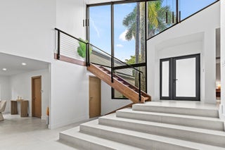 Architectural Elegance Meets Modern PrestigeItalian design impact windows I New modern tile roof I New smooth stucco finish I Exterior/Interior satin paint I New large porcelain tile floors I New bathroom wall tiles I Custom kitchen cabinets I Porcelain countertops I Built-in closet cabinets I European interior doors I Modern new decking I New high-end appliances I New modern railings I New lighting I New pool finish and tiles. This striking residence commands attention with soaring 18-foot-wide front windows, flooding the interior with natural light and crafting a showstopping facade. Designed for those who value timeless architecture and refined living, the home is tucked within a serene, tree-lined neighborhood known for its exclusivity and mature landscaping.