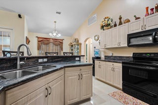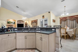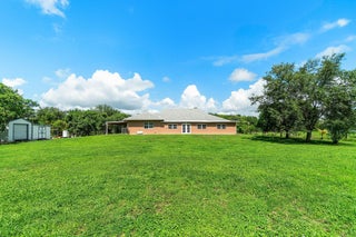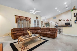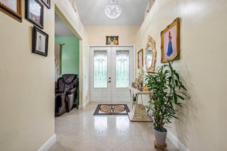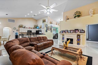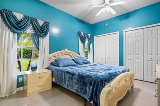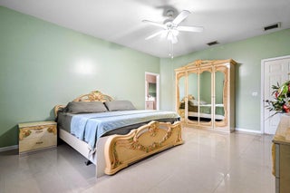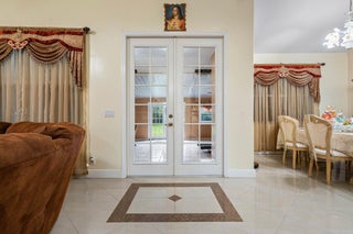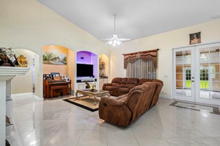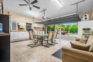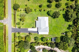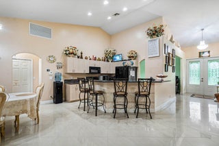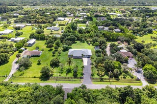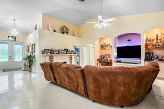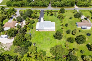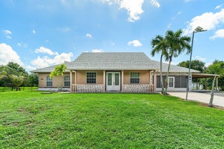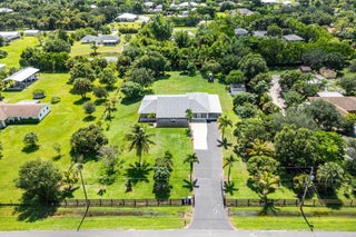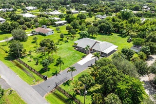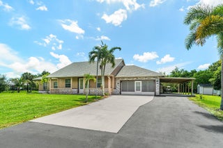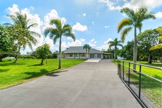 Immaculate and spacious 4-bedroom, 2-bath, 2-car garage home on over 1.5 acres on paved road access in Jupiter Farms! This well-designed property offers a split floor plan featuring a formal dining room, kitchen with granite counters opens to large family room and casual dining area. The entire home is tiled with a decorative tile inlay at the front door. Retreat to the oversized master suite with an extra-large walk-in closet and generous master bathroom. Additional expansive 49' x 18' enclosed patio--ideal as a game room, gym, or entertainment space, complete with a wet bar. The 2 car garage has been converted into a second kitchen and dining area, perfect for in-law living or extended family use. A one car covered parking area located just off the garage. For your security there ...is a full screen camera system covering the outside. Enjoy the completely fenced spacious lot with paved access all the way to the house, offering plenty of room for your toys, animals, or future expansion.
