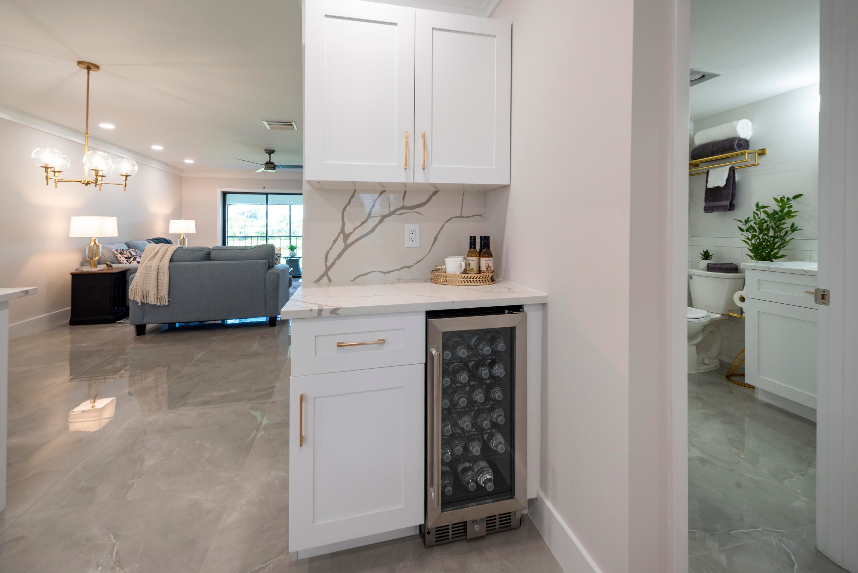 Beautifully remodeled 2/2 condo located in the highly sought-after 55+ Boca Lago golf community. Condo is filled with designer touches including ceramic tile throughout, fully updated kitchen and bathrooms with quartz countertops and backsplash, stainless appliances, wine cooler, designer hardware and ceiling fans. Beautiful view of the golf course from a screened-in porch. Located in the heart of West Boca with quick access to amazing shopping and dining. Golf and country club membership available but not mandatory.