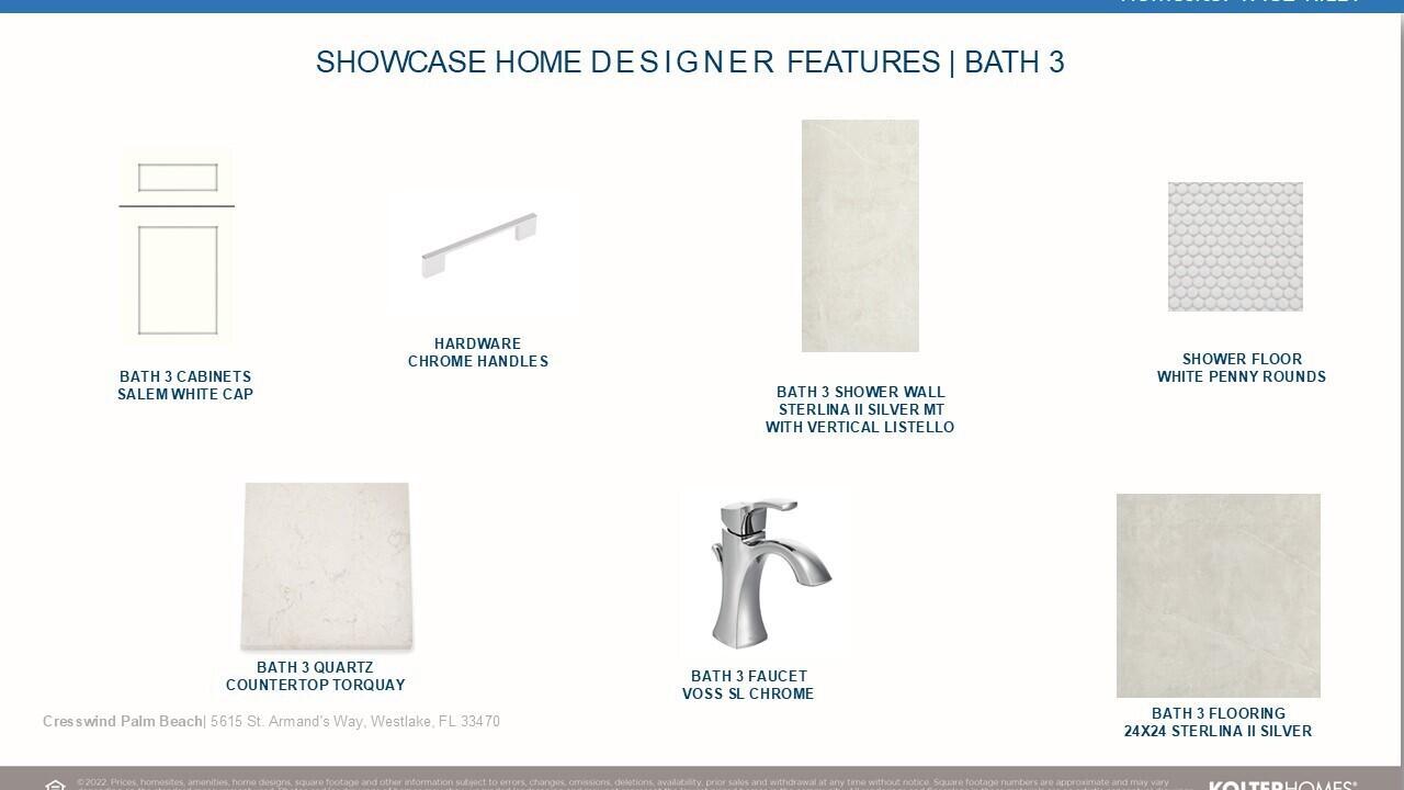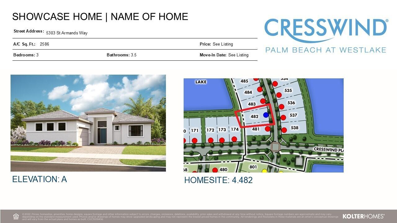 **New Construction** This brand-new Riley floorplan, built by Kolter Homes, is situated on a private homesite in Westlake's only gated 55+ community. The home includes 3 bedrooms, 3 1/2 bathrooms, and a 3-car garage. The home also includes gas cooking in the kitchen along with a 3'' thick quartz kitchen island and second tier upper cabinets. This Riley comes with the upgraded corner sliding glass door, spray foam insulation, under cabinet LED lighting, a laundry tub rough-in connection and a gas connection for a future pool heater.The home also includes connections for gas, water and electric for a future summer kitchen on the lanai. Cresswind Palm Beach residents will enjoy access to a resident-exclusive clubhouse that features pickleball & tennis courts, walking trails, resort-style pool and spa, resistance pool, dog park, event & entertainment areas and bocce courts. The Cresswind SmartFit Training Center also features the EGYM training system. The full-time Lifestyle Director keeps the social and event calendar full of activities for all interests.