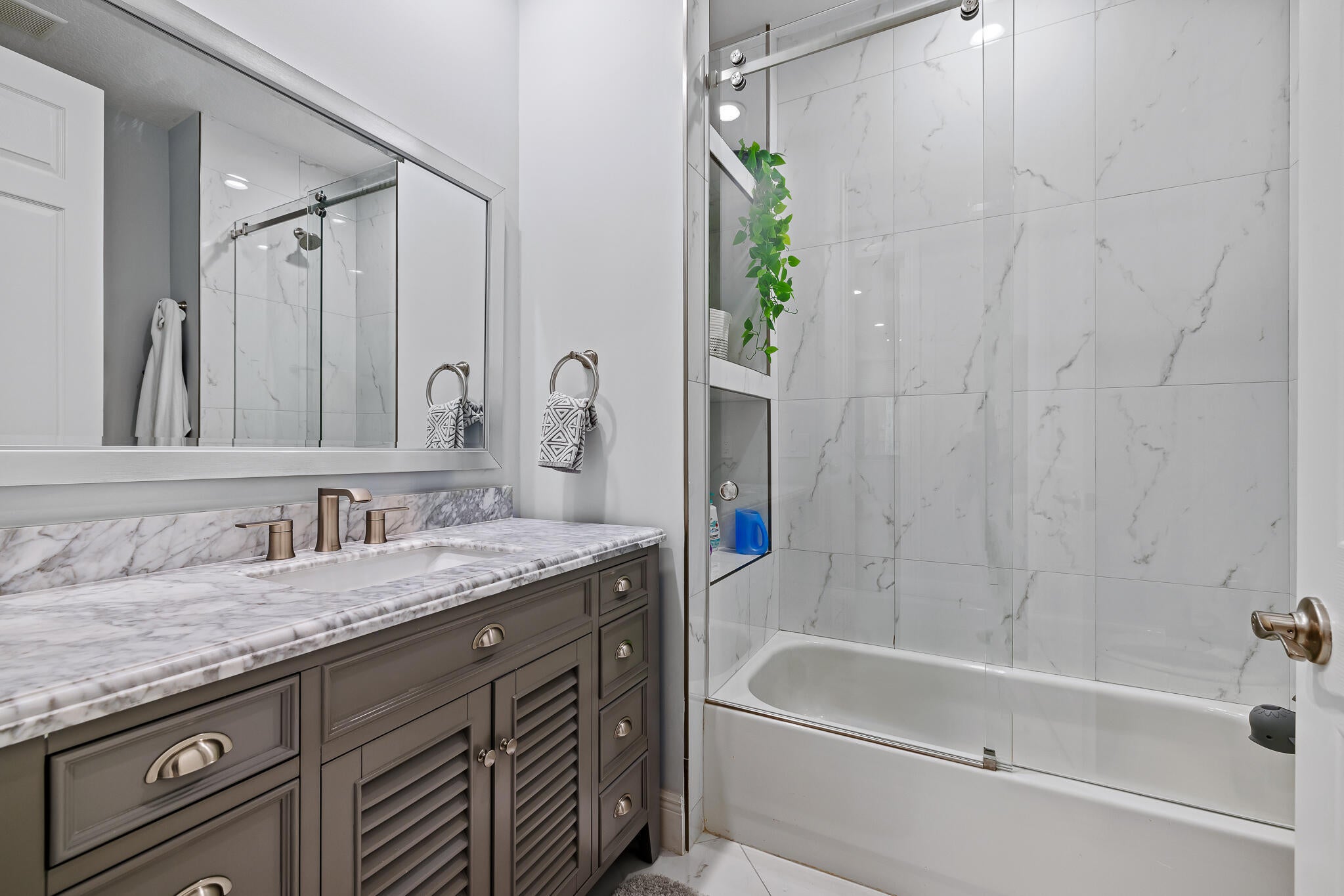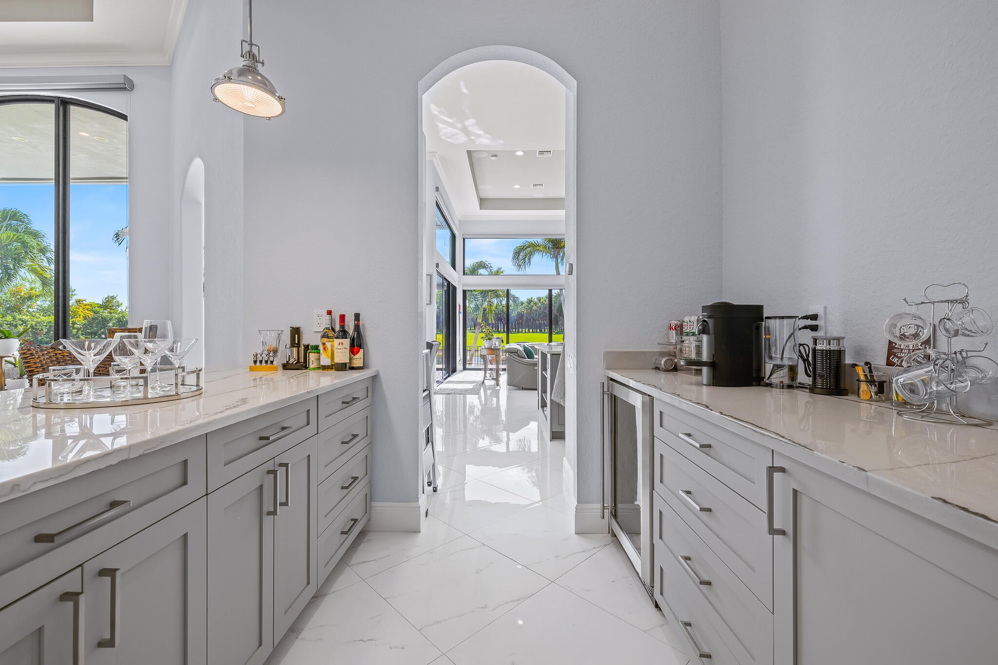 As close as you can get to new construction in Heron Bay.Set on a premier waterfront lot with wide, uninterrupted views of the lake and surrounding preserve, this refined Heron Bay estate stands as the signature home of The Falls. This home has been thoughtfully reimagined--elevated with intention, craftsmanship, and a sense of quiet luxury. The result is a residence that feels new in spirit and execution, while honoring the best of its original design.Located in a double-gated community, this one-story home offers nearly 4,000 sq ft of living space with 24x24 porcelain tile, SIW impact glass throughout, and a chef's kitchen featuring a seamless 10'x6' quartzite island, custom cabinetry, and commercial-grade ZLine and GE Monogram appliances. Four spa-like bathrooms are finished with Carrara marble, Calacatta quartz, and Moen solid bronze fixtures. Smart features include Lutron programmable lighting, Sonos sound, AvertX 4K security, and smart garage systems. Outdoors, travertine marble pavers connect a redesigned pool deck, driveway, and walkways. The pool has been resurfaced with glass tile, flanked by a new outdoor shower and fully automated Pentair equipment. A full landscaping redesign adds privacy hedges, mature palms, and a river rock path. New gutters and French drains manage stormwater flow with precision. The home theater system includes concealed wiring, in-wall speakers, and wall mounts ready for large-screen displays. Additional upgrades include all-new laundry with custom tile, modular garage flooring, Amarr hurricane-rated garage doors, and a bar with quartzite countertops and a 50" Dimplex flame-effect fireplace. Heron Bay is in the final phases of a multimillion dollar lifestyle and amenity transformation through its ELEVATE project, enhancing both clubhouses inside and out with modern gyms, spa-level locker rooms, a new café, new tennis and pickleball courts, a resort-style pool deck, and a brand-new splash pad water park. These improvements are designed to elevate daily living and protect long-term community value. Offered with the option to purchase fully or partially furnished, featuring a curated inventory of high-quality pieces selected to complement the home's design. Nothing overlooked. Move-in ready. Lives like a model.