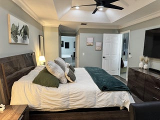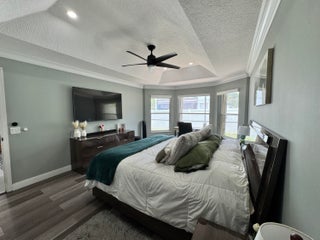 Completely remodeled 3-bedroom, 2-bath single-story home with a 2-car garage in the highly desirable gated community of Symphony Bay. This light and bright home features vaulted ceilings, a spacious open layout, and a split floor plan. Situated on a corner lot with a screened patio, lanai, and grassy yard--perfect for outdoor living. The updated kitchen boasts granite countertops, crisp white cabinets, tiled backsplash, and stainless-steel appliances. Recessed lighting throughout adds a modern touch. The luxurious primary suite includes tray ceilings, walk-in closet, dual sinks, soaking tub, and separate shower. Full accordion shutter storm protection. Enjoy resort-style amenities: pool, tennis, basketball, pickleball, playground, gym, and clubhouse.Zoned for A-rated schools and just steps from Publix and The Reserve at Boca shopping center with easy access to highways. Tenant to pay Electric, Water, Cable, Internet & Renters Insurance.