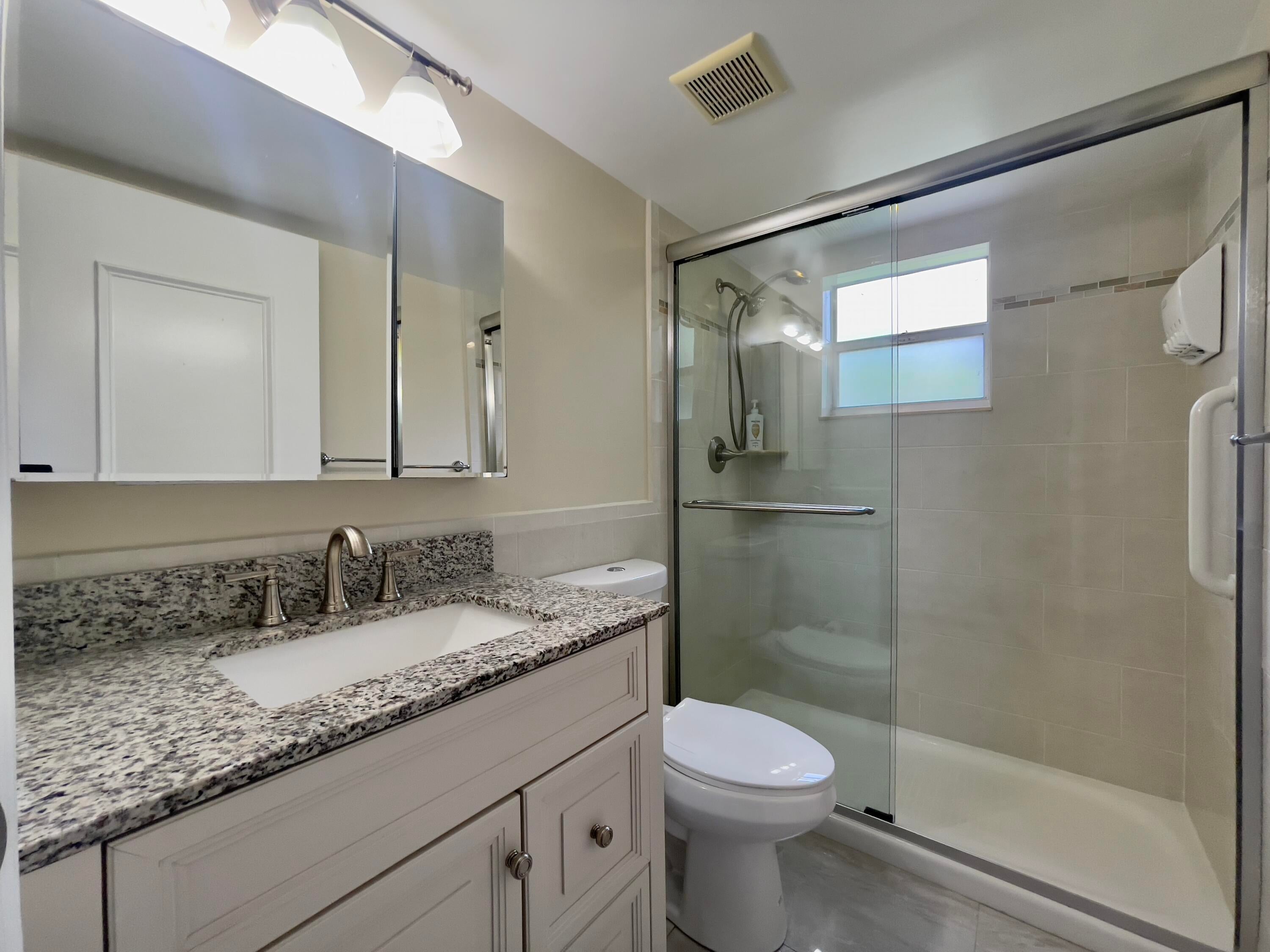 Beautiful First Floor Remodeled condo. 2 Bedroom , 2 Bath. Gorgeous kitchen with real wood full overlay soft-close cabinets,. The kitchen also features a large Island with counter seating and has Great storage & Pantry space. Stylish Granite counter tops and Samsung Black stainless modern appliances. Porcelain tile floors.throughout. Completely updated bathrooms & relaxing enclosed Patio space..Immaculate light & bright unit. This is a beautiful unit, a great location and terrific value.