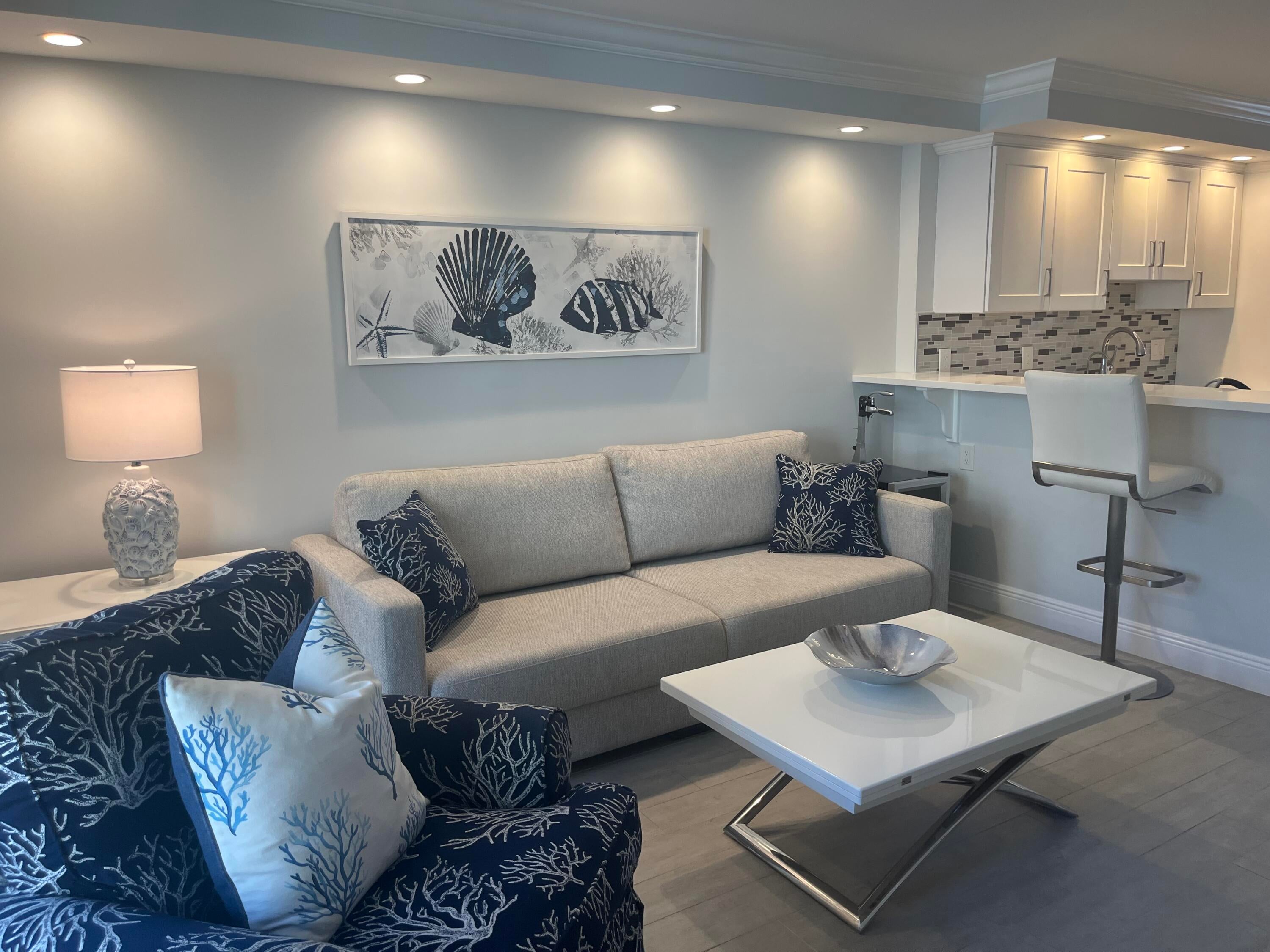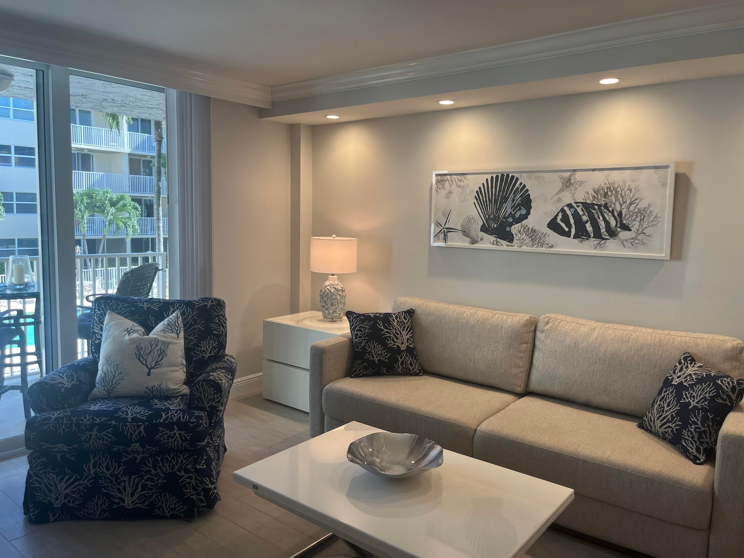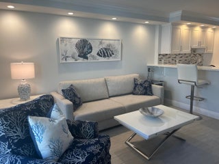 Fabulous RESORT STYLE seasonal rental on A1A just a few feet from the OCEAN!! A tropical paradise awaits you for the winter months. Completely renovated & MODEL-PERFECT 1 bedroom/1.5 bath with a sleeper sofa in the living room. Amazing, fully equipped kitchen with white cabinetry, quartz counter-tops, stainless appliances, plus a convenient WASHER & DRYER. The spacious primary suite has a KING SIZE adjustable bed, ample closet & luxury bath with walk-in shower. Soundproof walls will assure comfortable sleep with blackout window treatments in the primary bedroom. The parking space is ideally located & plenty of guest parking. Your private balcony overlooks the pool with a slight OCEAN view! Boca South has a resort style pool, clubroom & BBQ to enjoy. IDEALLY LOCATED ON A1A in Boca!