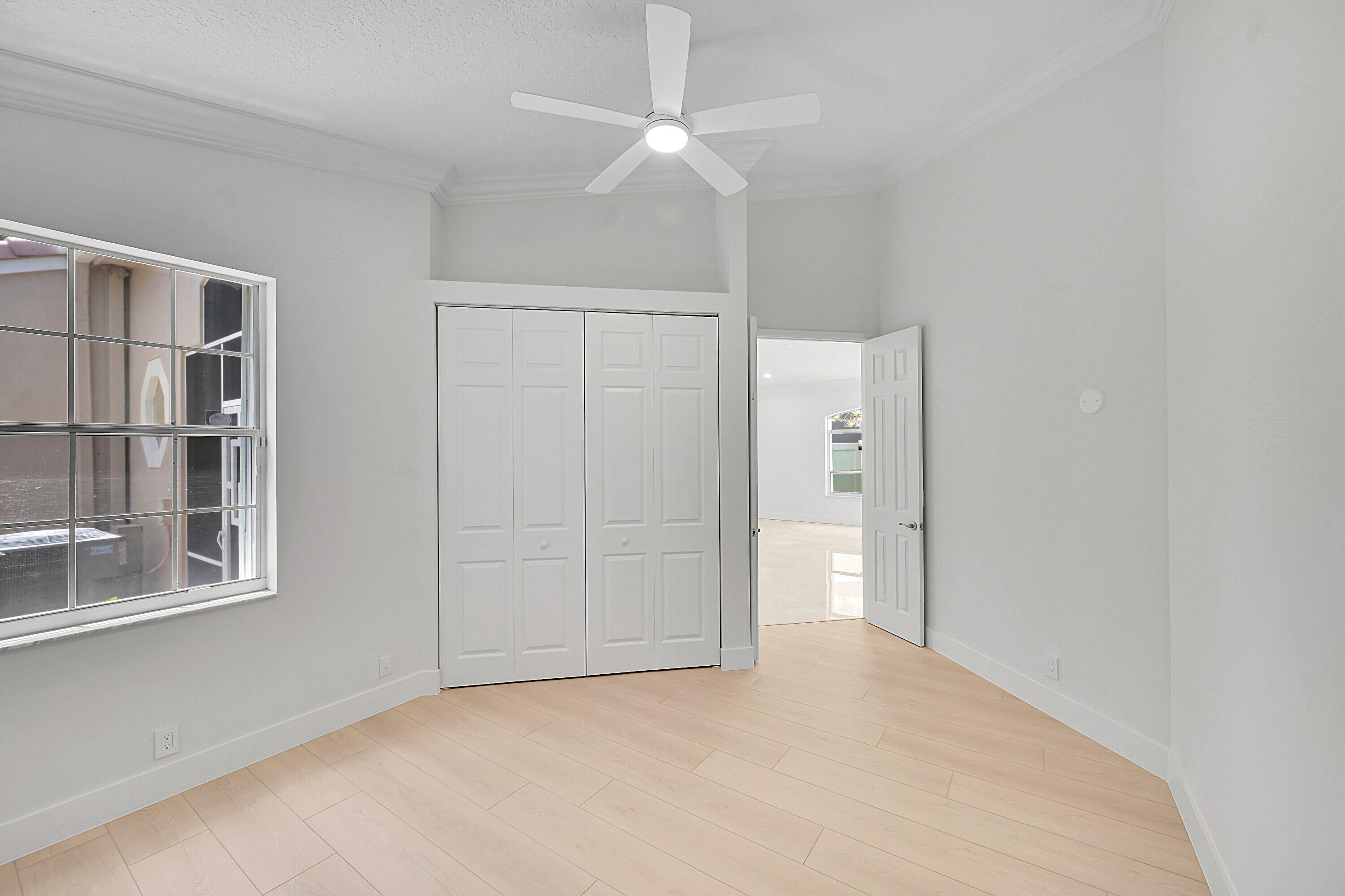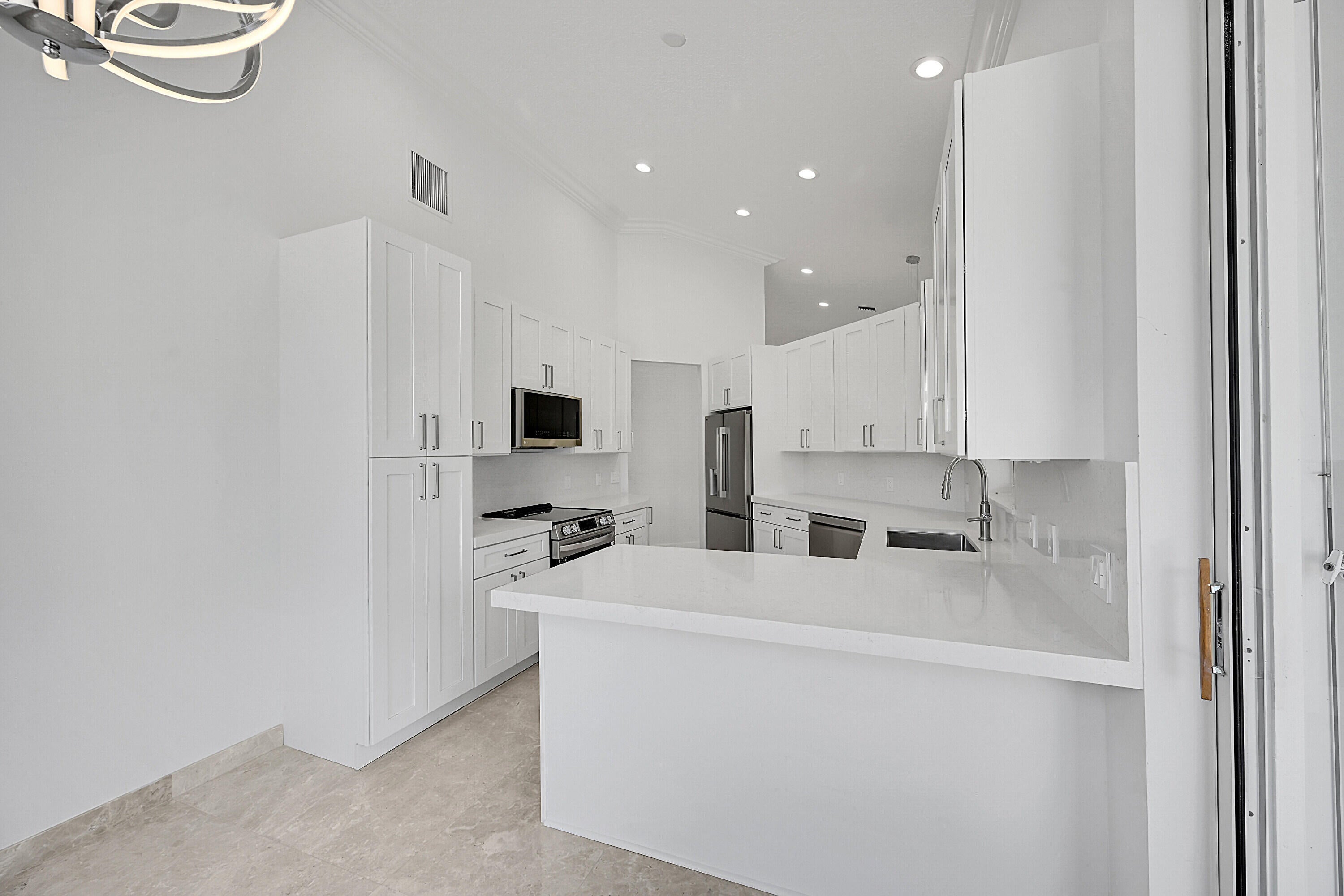 Welcome to this renovated one-story home with 3 bedrooms, 2 baths and extended private lot. Kitchen and bathrooms updated 2025 with White Cabinetry, stainless steel appliances and new fixtures. A/C 2022, Hot Water Heater 2020. Bedrooms have new thought-out custom closets. Lighting fixtures give the home a modern feel. Enjoy the over-sized screened patio in the evenings as it faces East! Costa Brava consists of 139 homes and includes 24-hour manned gated security, cable TV, exterior painting, heated community pool and optional club membership with golf course access. All windows have accordion hurricane shutter for piece of mind. The private backyard has room for a pool. Located minutes to I-95, Sugar Sand Park, shopping & restaurants. Application, Rules & Regs and Survey under Documents