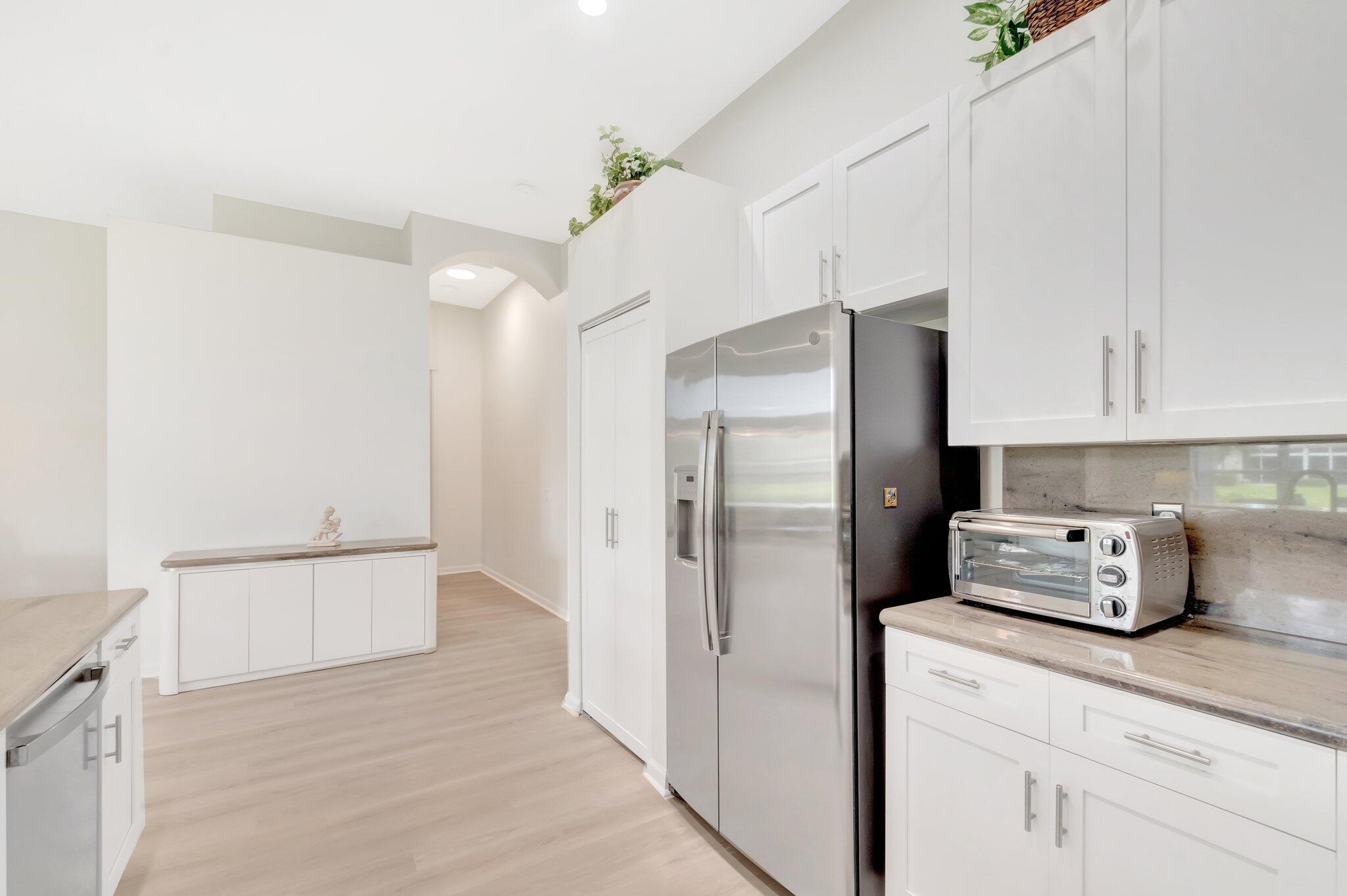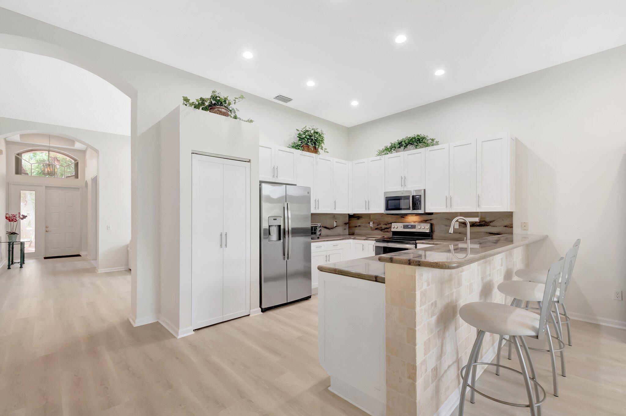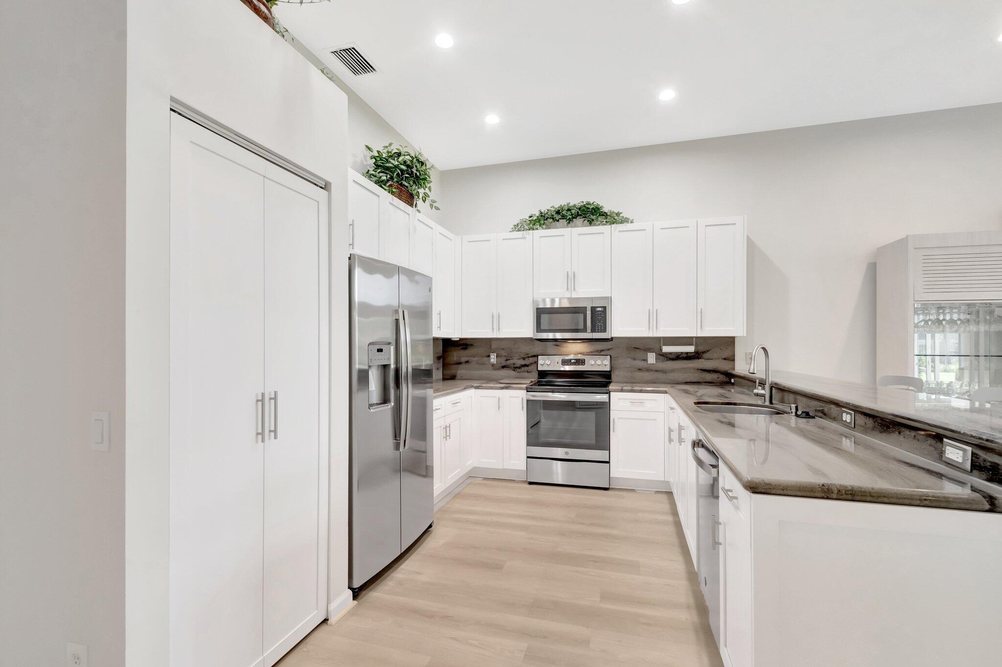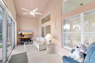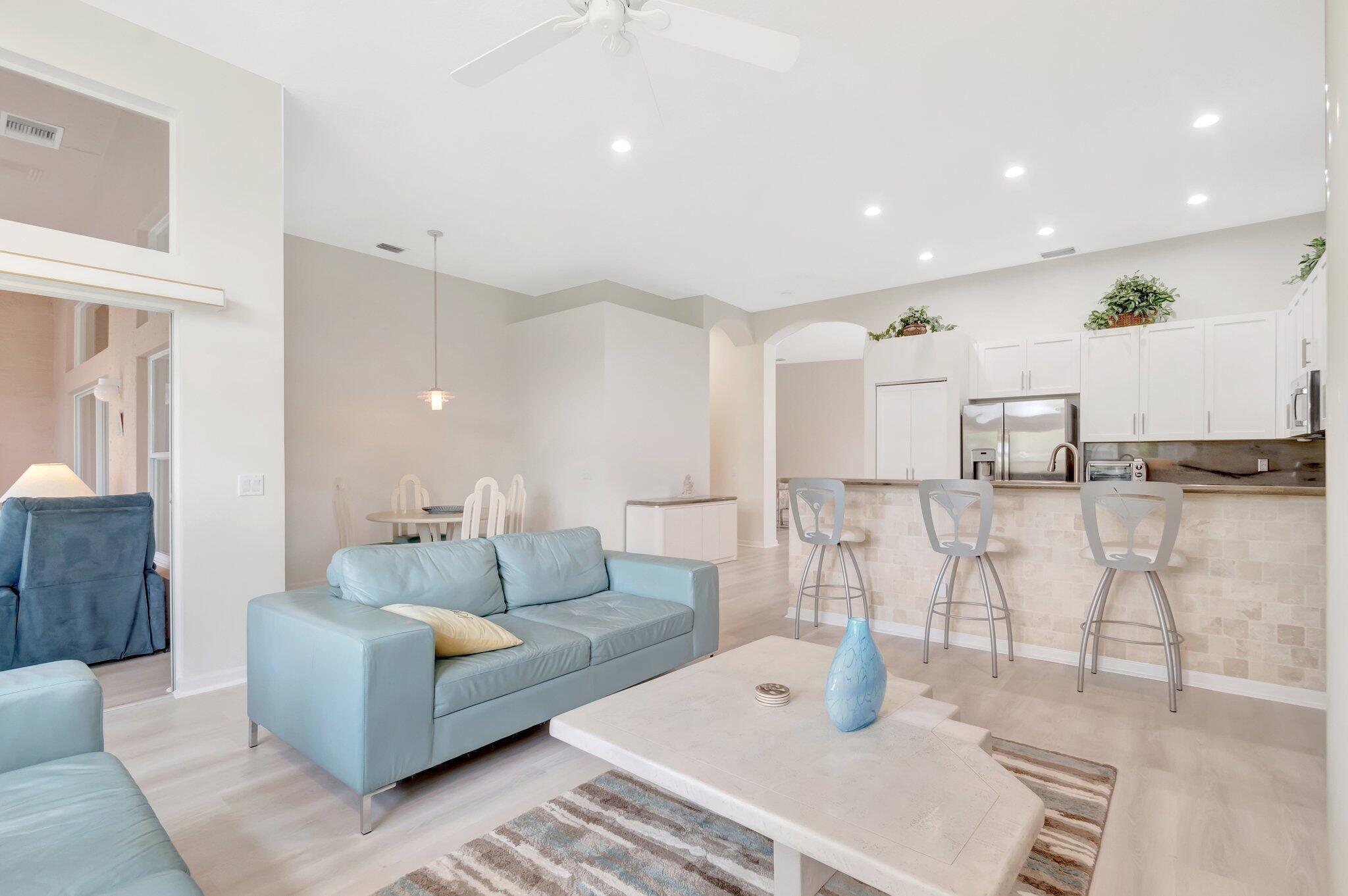 Bring your toothbrush to this recently renovated, 3 bedroom/ 2.5 bath waterfront home, loaded with upgrades. This home features a NEW ROOF and gutters! New luxury vinyl flooring, New paint, New updated cabinetry in kitchen and baths. This home also features a fully enclosed 200 sq ft air conditioned, Florida room, Top of the line granite counters & backsplash in the kitchen,. Stainless steel appliances, an extended paver patio, Hurricane shutters, and so much more. Valencia Shores is a premier active community with 2 club houses, 3 pools, tennis, pickle ball, bocce, indoor racquet ball, a fully equipped athletic center, with sauna, whirlpool, resistance pool, and cafe. FURNITURE INCLUDED!