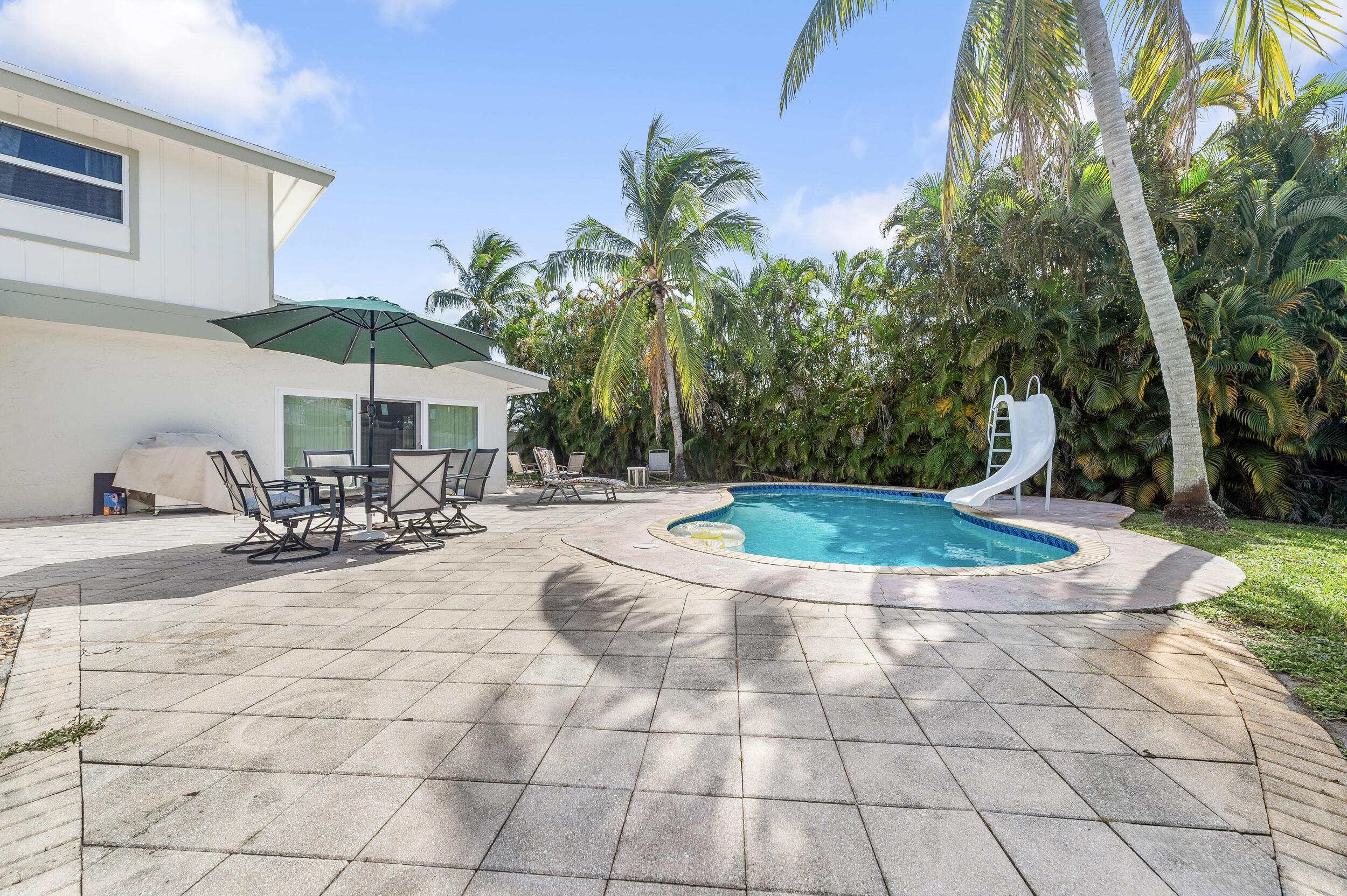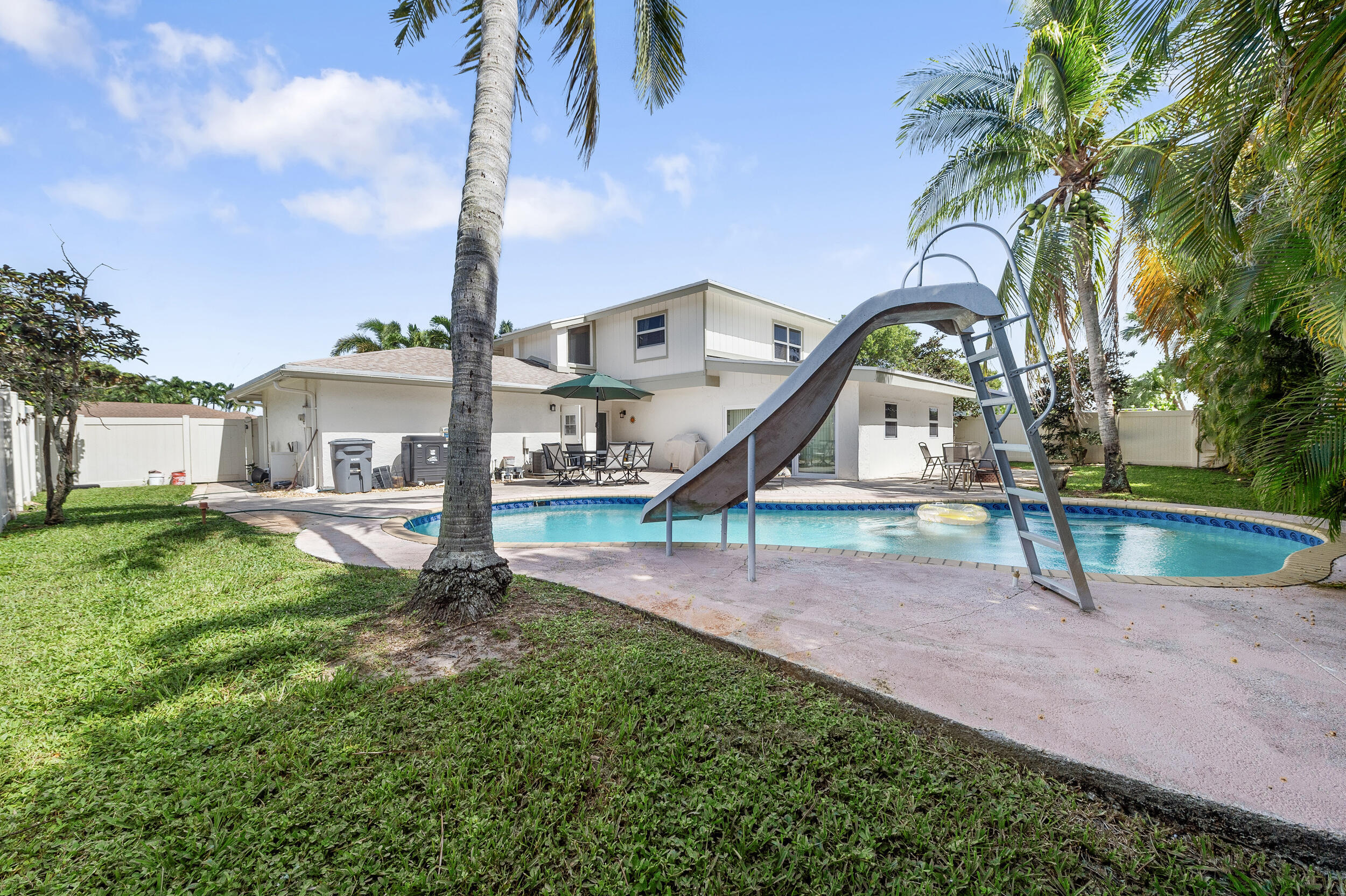 Unique two-story home on an oversized fenced lot in Pheasant Walk. Features include a free-form pool with slide, 2025 water heater, 2016 roof, and all impact windows. Granite countertops, freshly painted interior, and a spacious family-style kitchen opening to the living area. Enclosed Florida room with vaulted ceilings and skylights adds natural light. The large, private backyard offers an oasis feel with plenty of room to play. Prime central Boca location close to parks, schools, shopping, and I-95. Zoned for Calusa Elementary, Omni Middle, and Spanish River High.