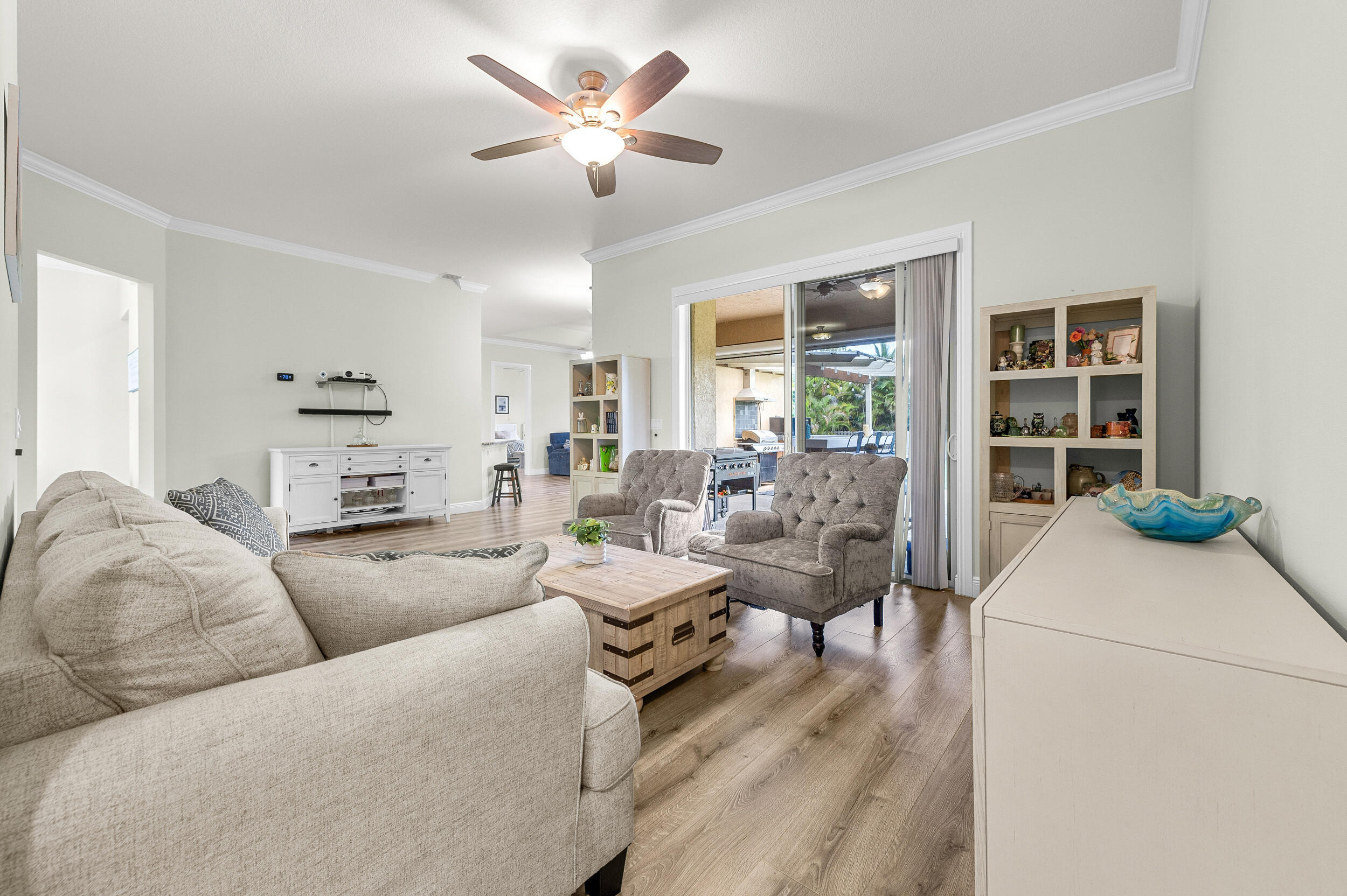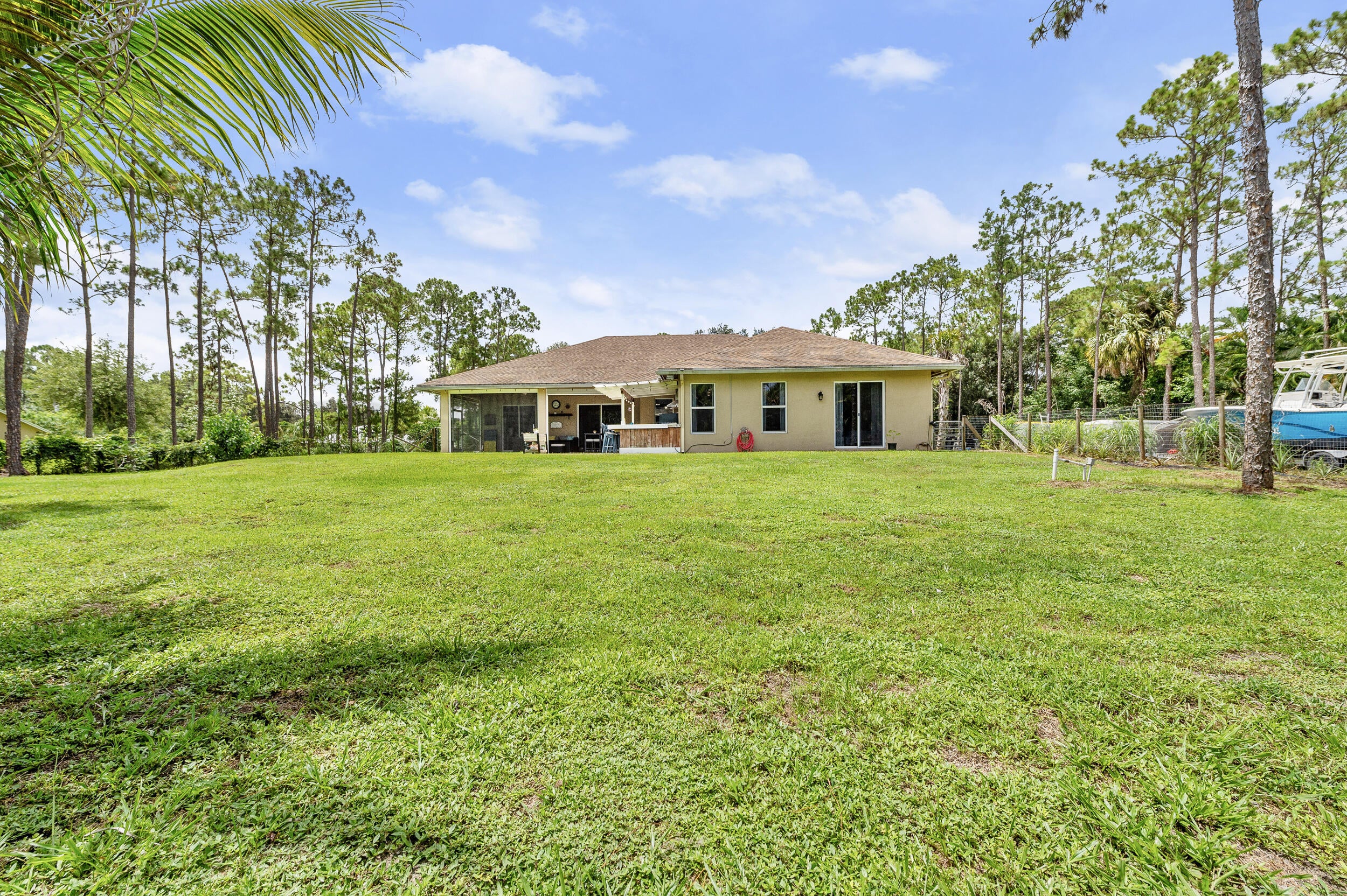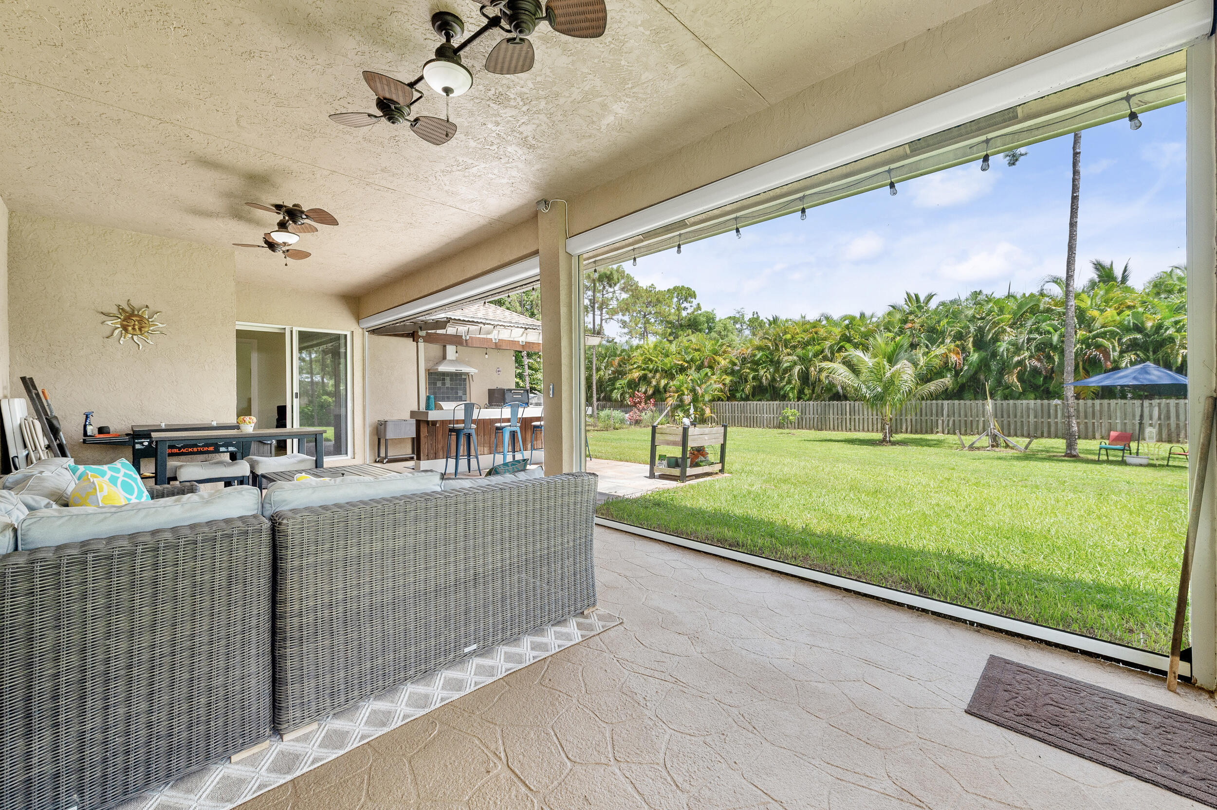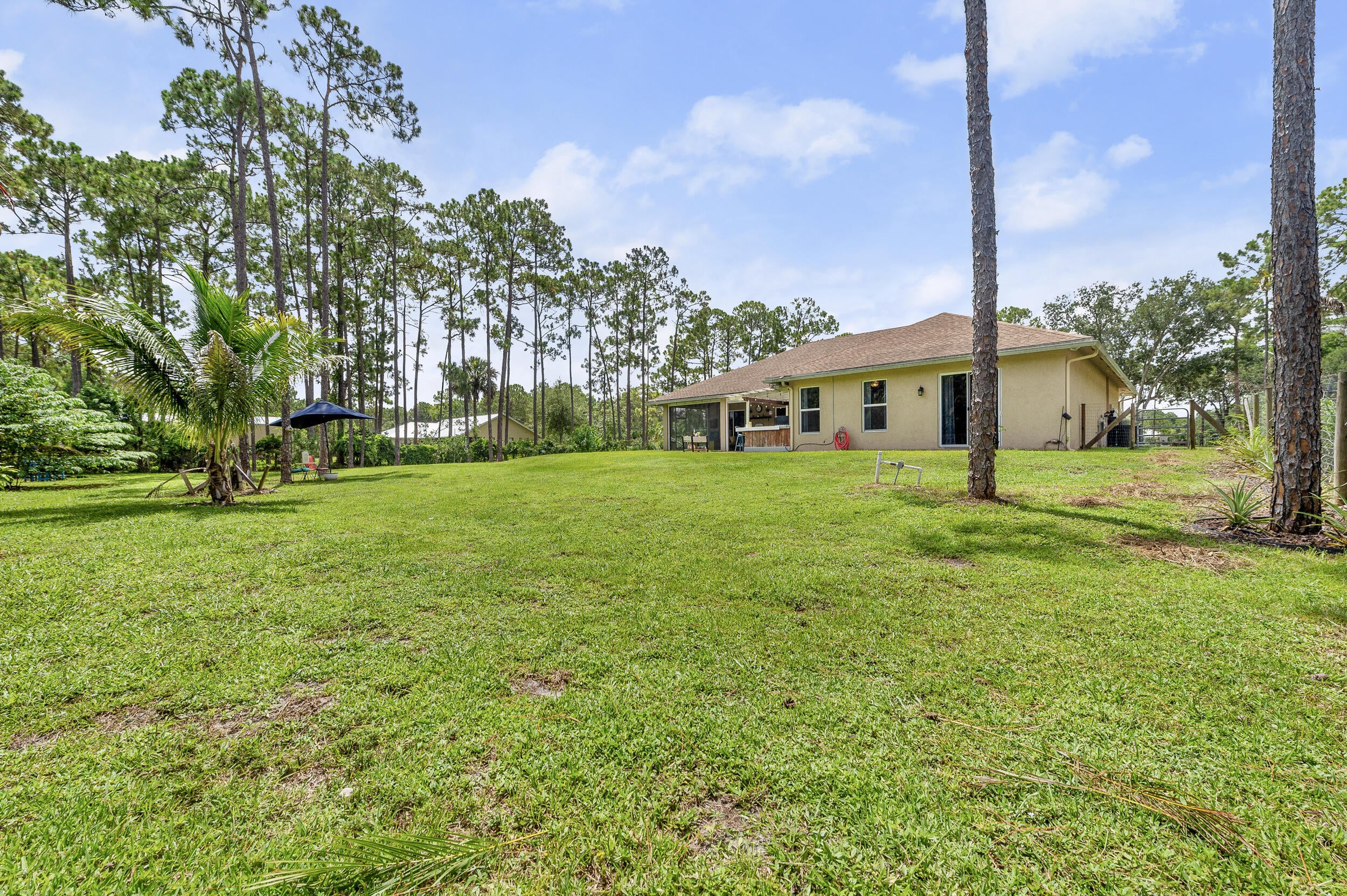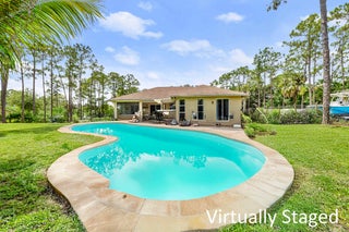 **BUILT IN 2019 ON 1.15 ACRES** Welcome to 15807 83rd Ln N in Loxahatchee, FL -- a beautifully updated 4-bedroom, 2-bathroom home ideally located just off Northlake Blvd, offering both convenience and privacy. Inside, you'll find engineered waterproof wood flooring throughout, 8-foot doors, and impact windows that provide a modern, durable touch. The spacious white kitchen is a true highlight, featuring under-cabinet lighting, pull-out shelving in the pantry, and a layout perfect for both everyday use and entertaining. The guest bathroom offers a double vanity, while the private master suite boasts sliding doors to the backyard, a luxurious ensuite with a soaking tub, walk-in shower, and dual sinks.Additional upgrades include a 10 KW AC unit installed in 2019, a tankless water heater, and a septic system also from 2019, which was pumped in March. Step outside to enjoy a fully enclosed patio with electric screens that open at the touch of a button, a built-in bar and grill area, and an expansive yard with a variety of fruit-bearing plantsincluding strawberry, peach, tangelo, fig, mulberry, Barbados cherry, pineapple, and honey mango trees. With well water, thoughtfully designed indoor spaces, and stunning outdoor living areas, this home perfectly combines comfort, functionality, and natural beauty. Don't miss the opportunity to make this Loxahatchee gem your own.