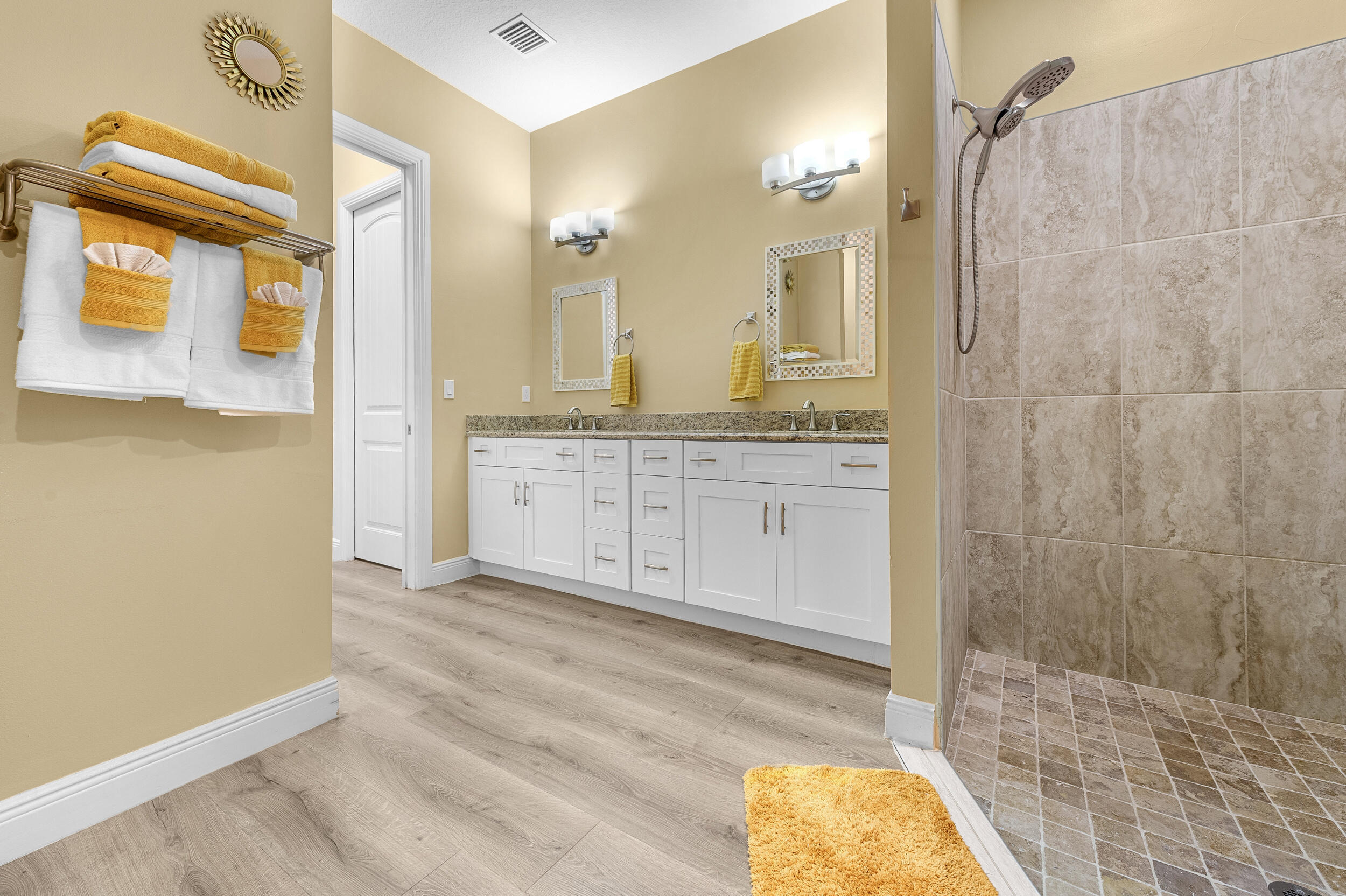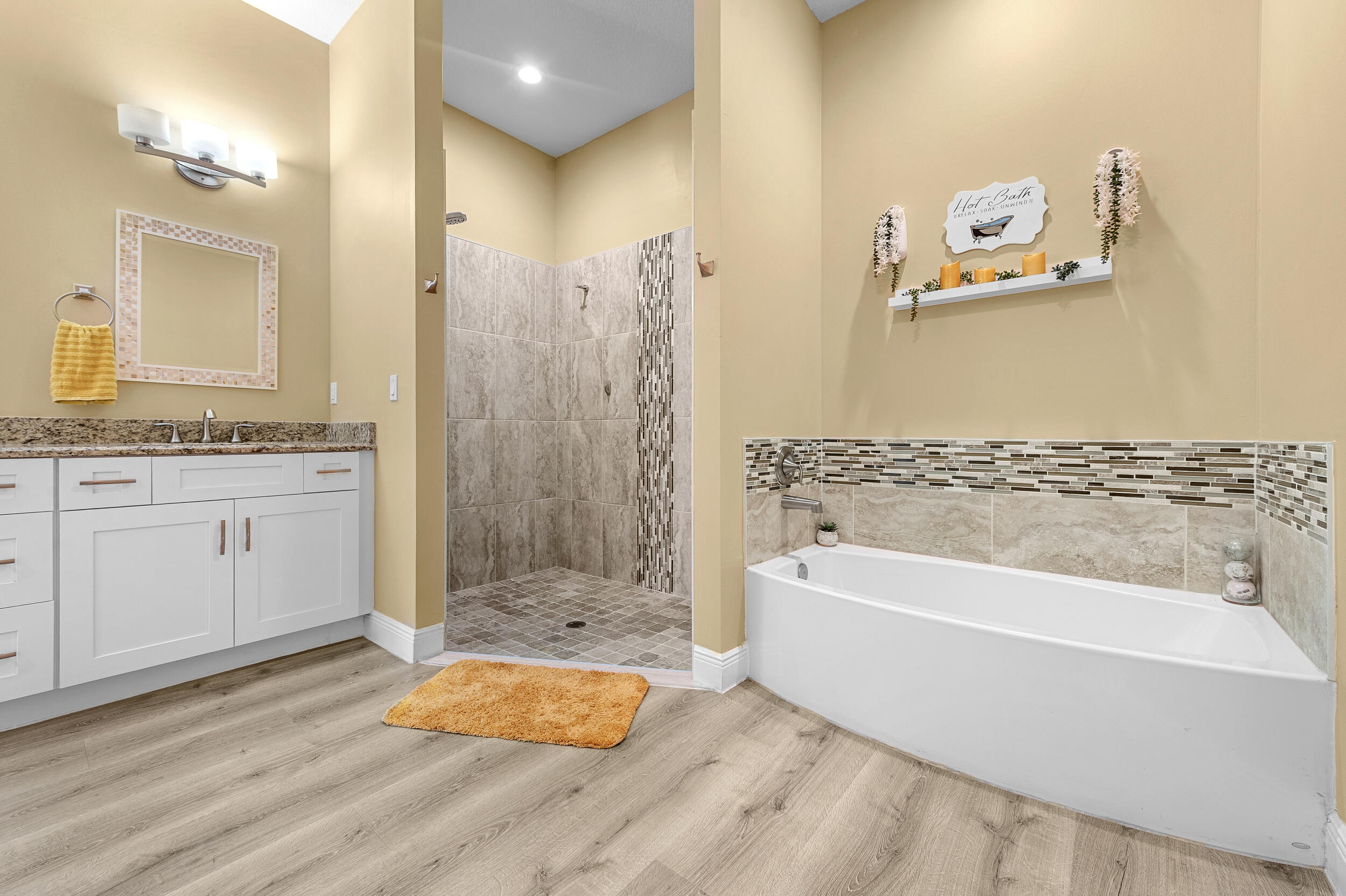 Custom Mirror, Entry Lvl Lvng Area, Foyer, Cook Island, Pantry, Roman Tub, Split Bedroom, Volume Ceiling, Walk-in Closet