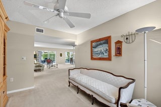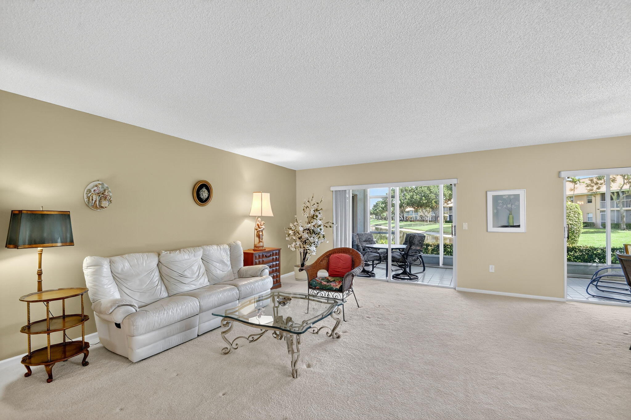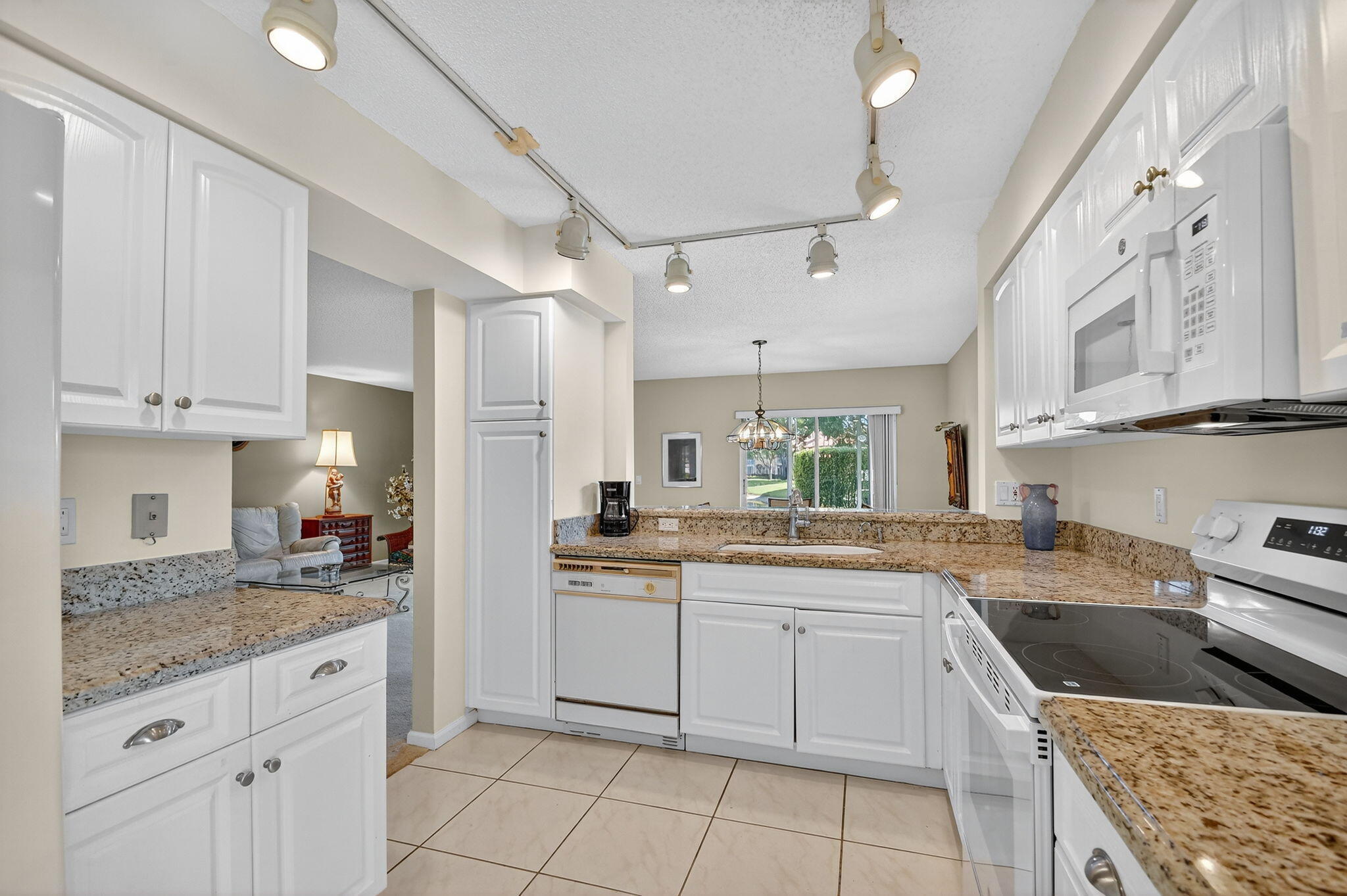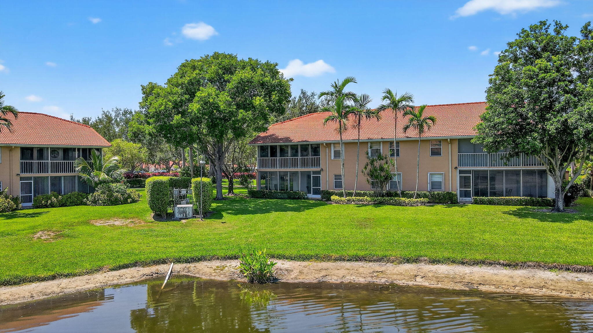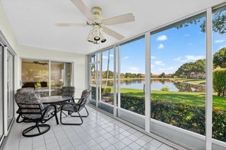 Welcome to this beautifully maintained 2-bedroom, 2-bath condo with a versatile den that is perfect as a home office, tv room, or even a 3rd bedroom. This home offers a comfortable layout with a generously sized kitchen featuring granite countertops, ample cabinetry, a new stove, and a cozy breakfast nook overlooking a side patio. You'll love the bright and airy Florida room, that can be opened or left closed and is ideal for relaxing or entertaining year-round. The primary suite is spacious and complete with a walk-in closet and en-suite bath with dual sinks and a large walk-in shower. Enjoy the peaceful lake views, offering beautiful, tranquil scenery from the comfort of your own home and patio!Additional features include a covered carport, outdoor storage, and guest parking conveniently nearby. The location is just a short stroll to the soon-to-be-renovated Palm Isles clubhouse, where you'll enjoy a full array of amenities: indoor and outdoor pools, a performing arts theater, card rooms, tennis and pickleball courts, billiards, and well-equipped fitness center. There's even an on-site café serving breakfast and lunch! Don't miss your chance to be part of this vibrant, active community. Schedule your private showing today!
