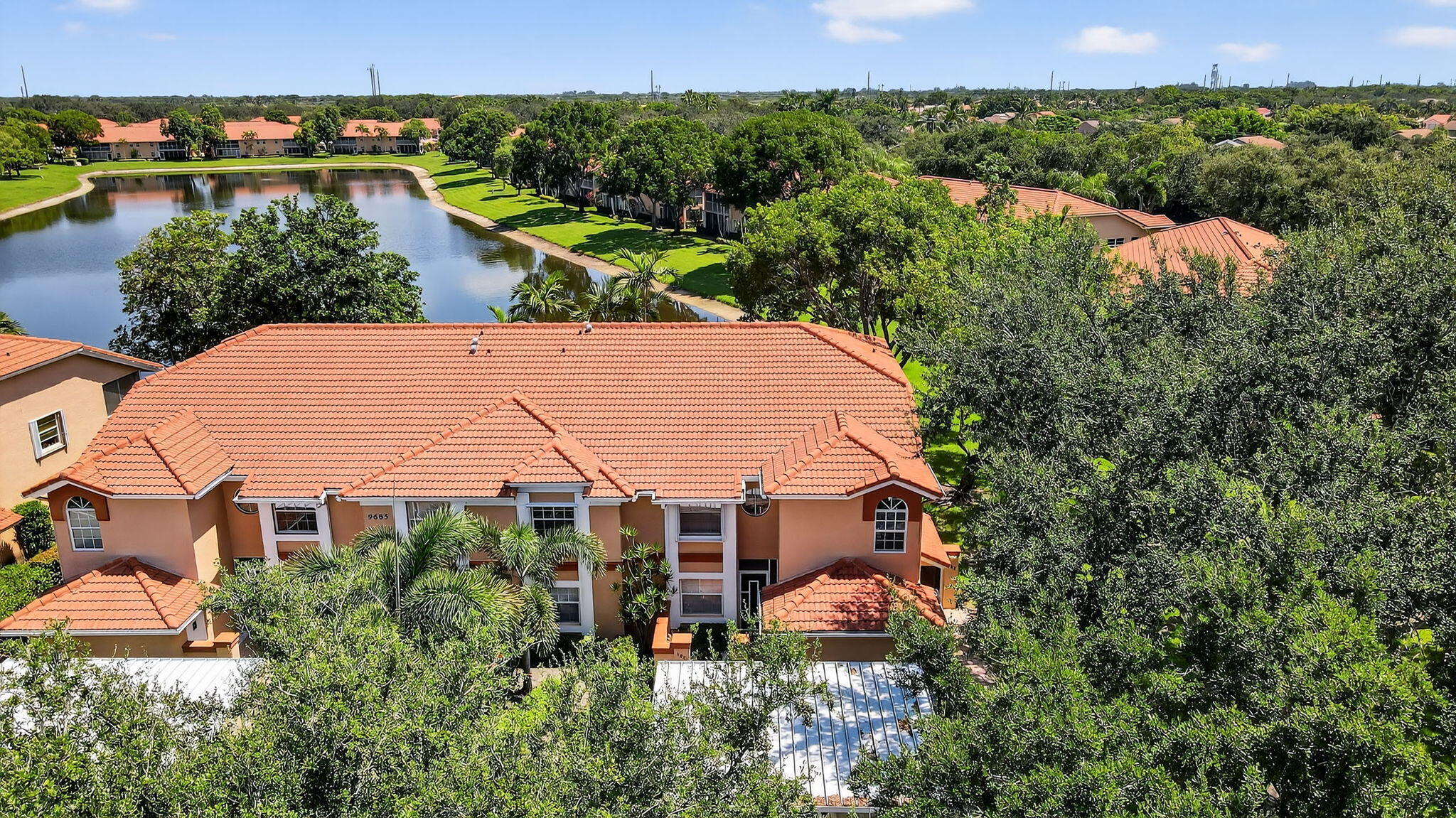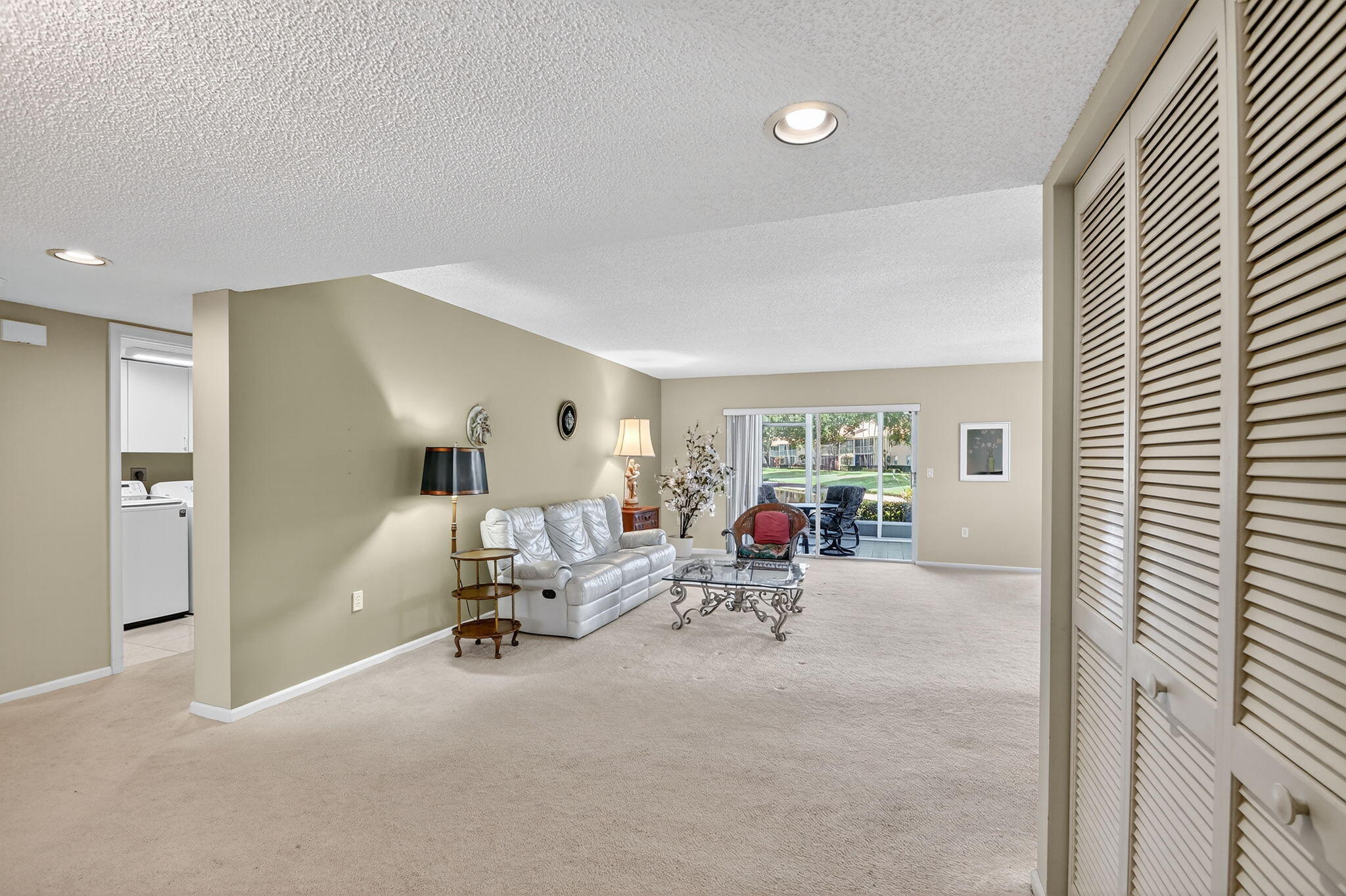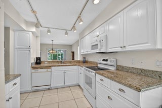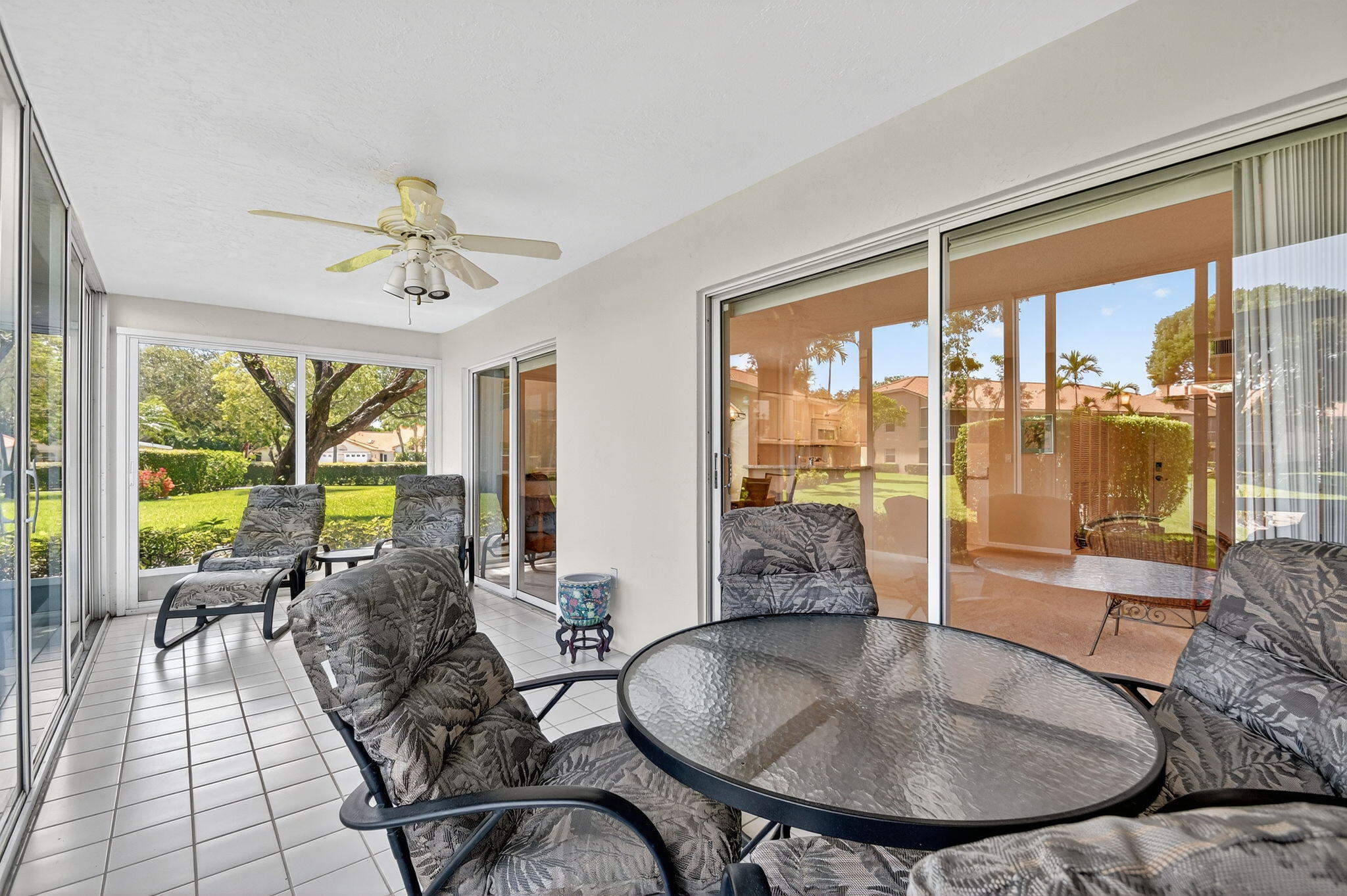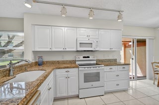 Welcome to this beautifully maintained 2-bedroom, 2-bath condo with a versatile den that is perfect as a home office, tv room, or even a 3rd bedroom. This home offers a comfortable layout with a generously sized kitchen featuring granite countertops, ample cabinetry, a new stove, and a cozy breakfast nook overlooking a side patio. You'll love the bright and airy Florida room, that can be opened or left closed and is ideal for relaxing or entertaining year-round. The primary suite is spacious and complete with a walk-in closet and en-suite bath with dual sinks and a large walk-in shower. Enjoy the peaceful lake views, offering beautiful, tranquil scenery from the comfort of your own home and patio!Additional features include a covered carport, outdoor storage, and guest parking conveniently nearby. The location is just a short stroll to the soon-to-be-renovated Palm Isles clubhouse, where you'll enjoy a full array of amenities: indoor and outdoor pools, a performing arts theater, card rooms, tennis and pickleball courts, billiards, and well-equipped fitness center. There's even an on-site café serving breakfast and lunch! Don't miss your chance to be part of this vibrant, active community. Schedule your private showing today!
