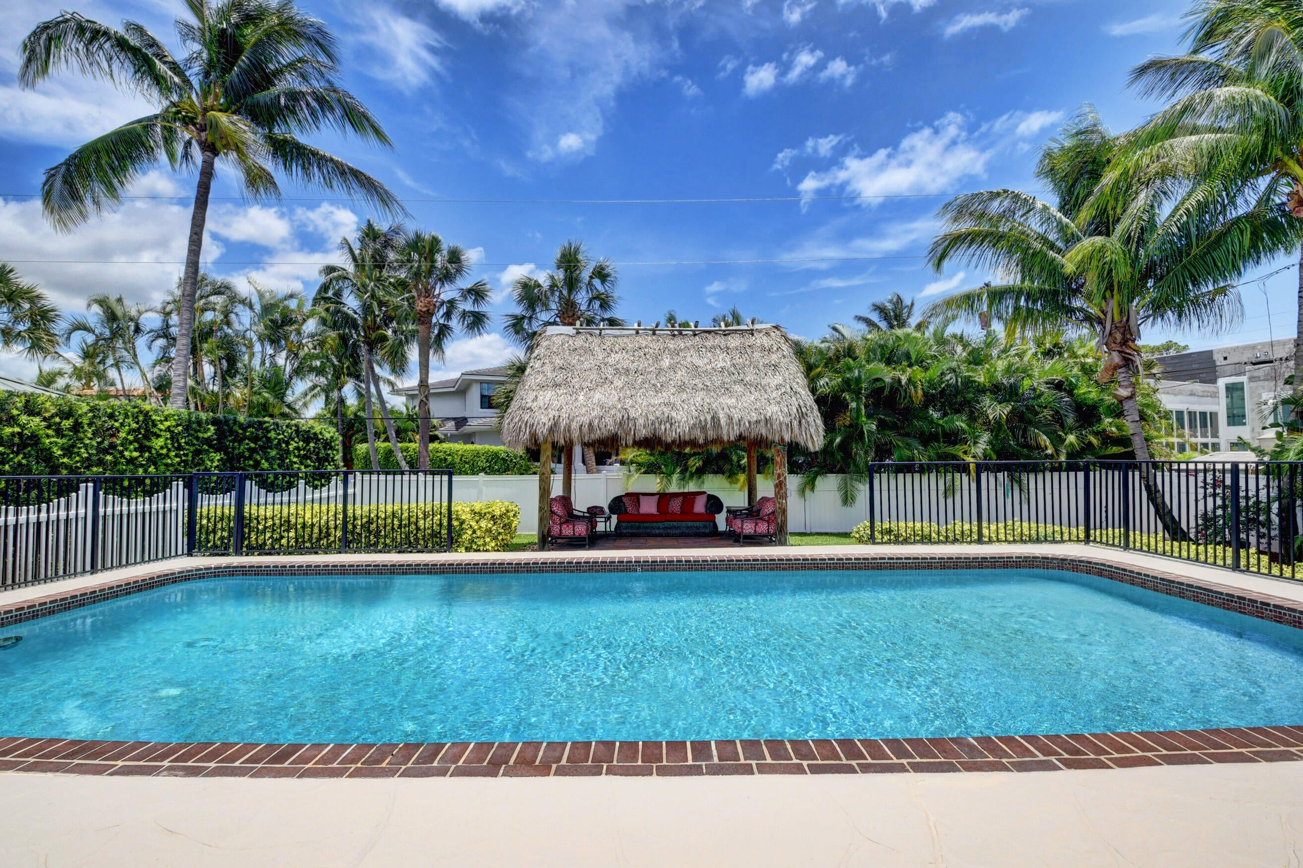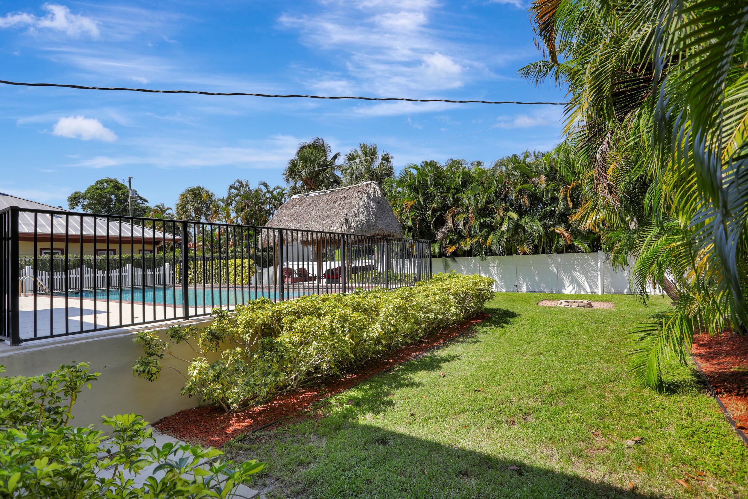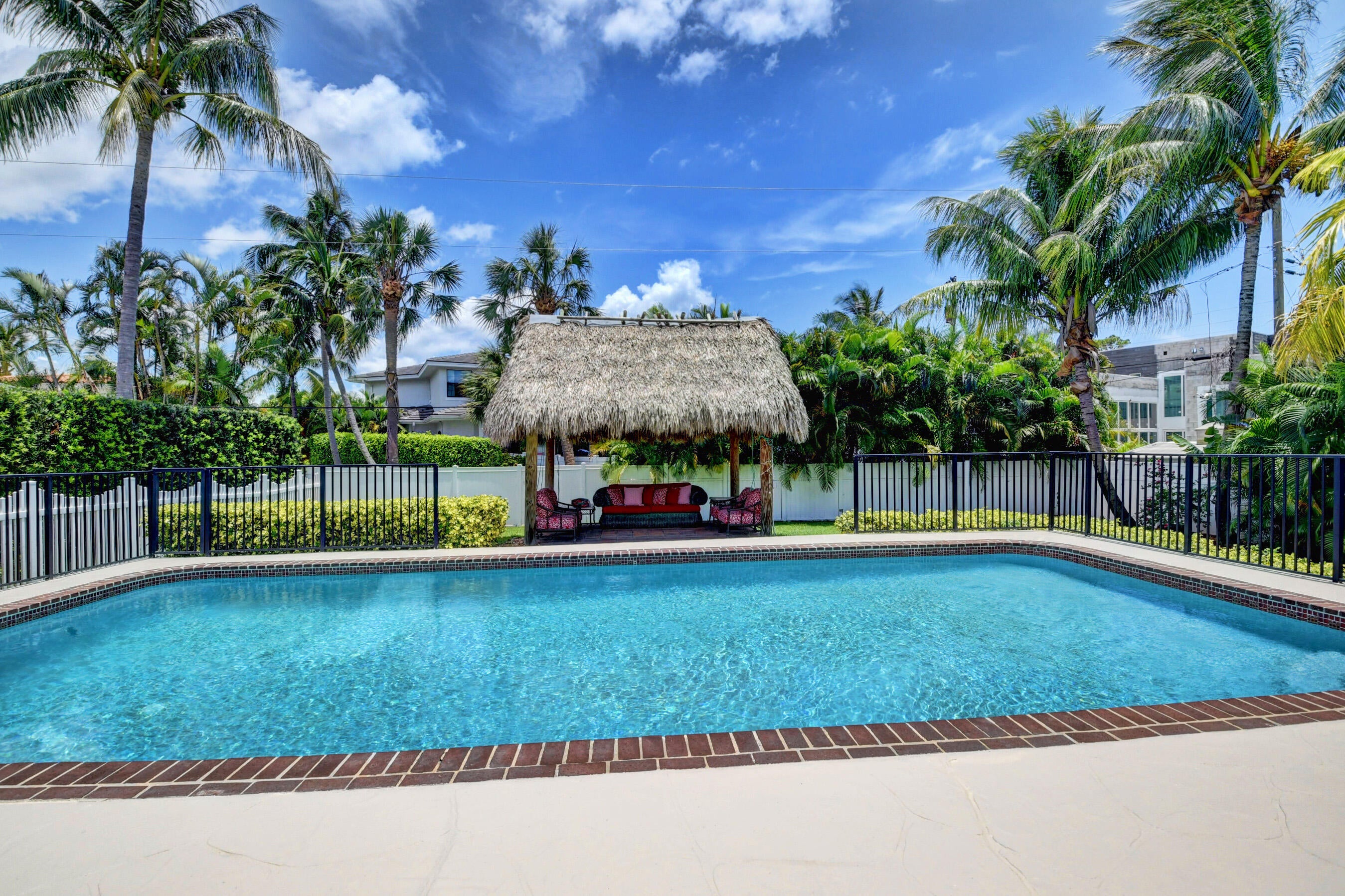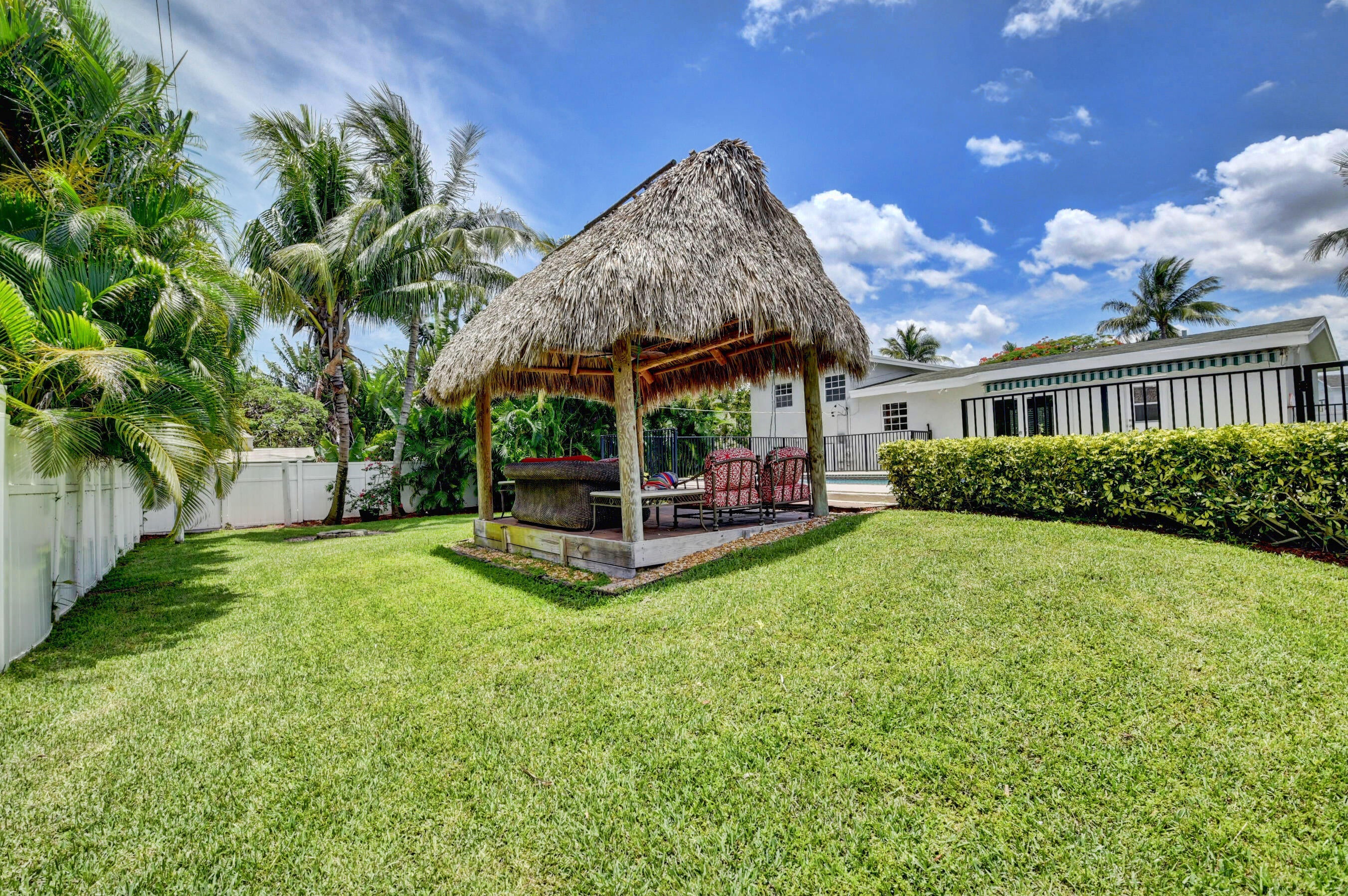 Gorgeous single family pool home at Golden Triangle @ East Boca Raton! Beautiful 3 bedroom, 2 bath, totally updated, newer kitchen and bathrooms, tile floor throughout, wine cooler, abundance of natural light, smart fridge, LED mirrors in bathrooms, large eat-in kitchen area, California closets in all rooms. Ideal summer backyard, perfect for entertainment and outdoor activities! 1.5 car garage, Tiki hut, fire pit, sunshade canopy & more! LAWN AND POOL MAINTENANCE INCLUDED with the rent. Excellent location one block from Lake Wyman Park w/ tennis courts & kids playground, A-rated schools, walk or bike to the beach, close to shopping, Downtown Mizner Park, Royal Palm Place and the best Boca Raton has to offer! 2 miles to I-95, Annual Lease Only. NO HOA. Call today for more information!
