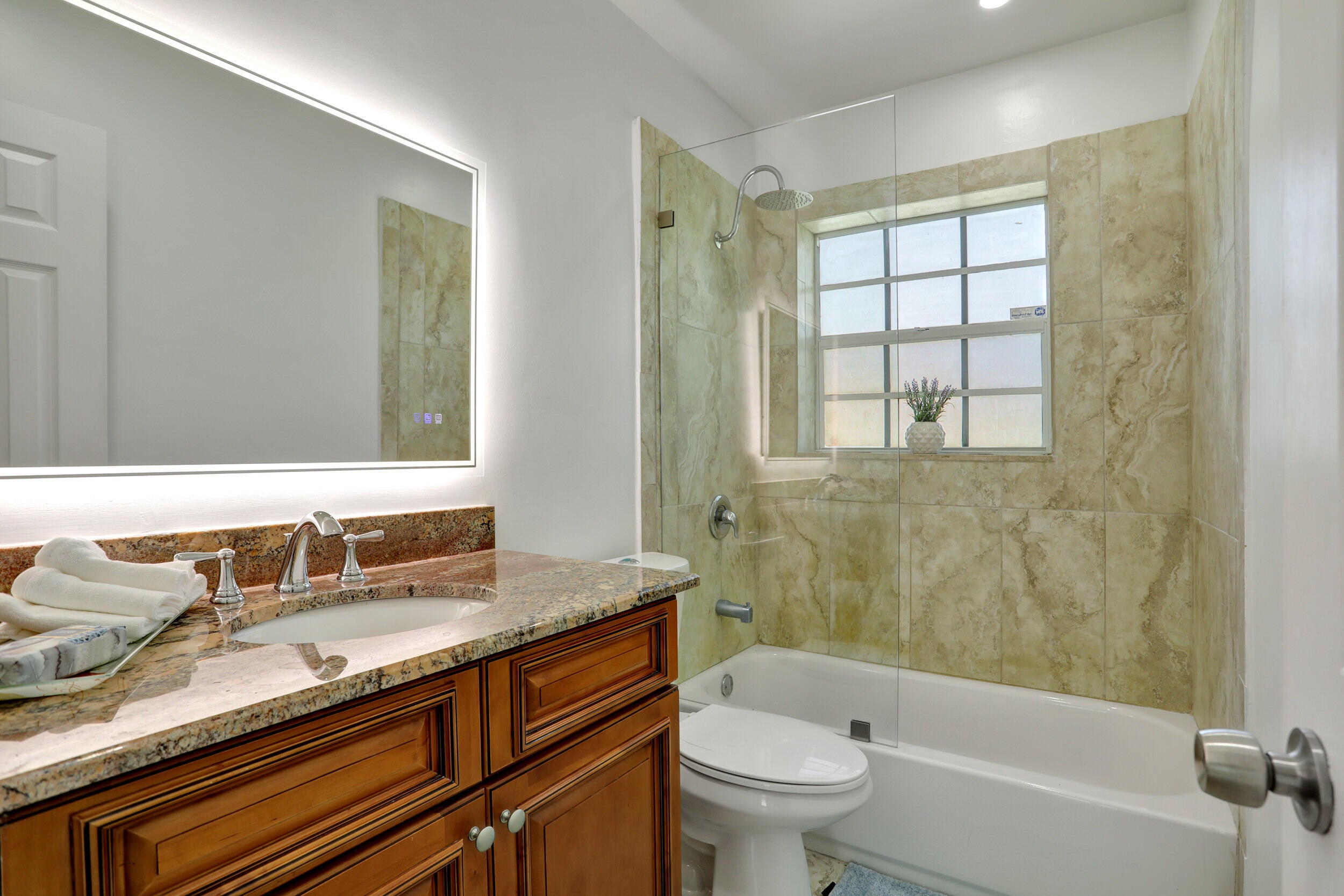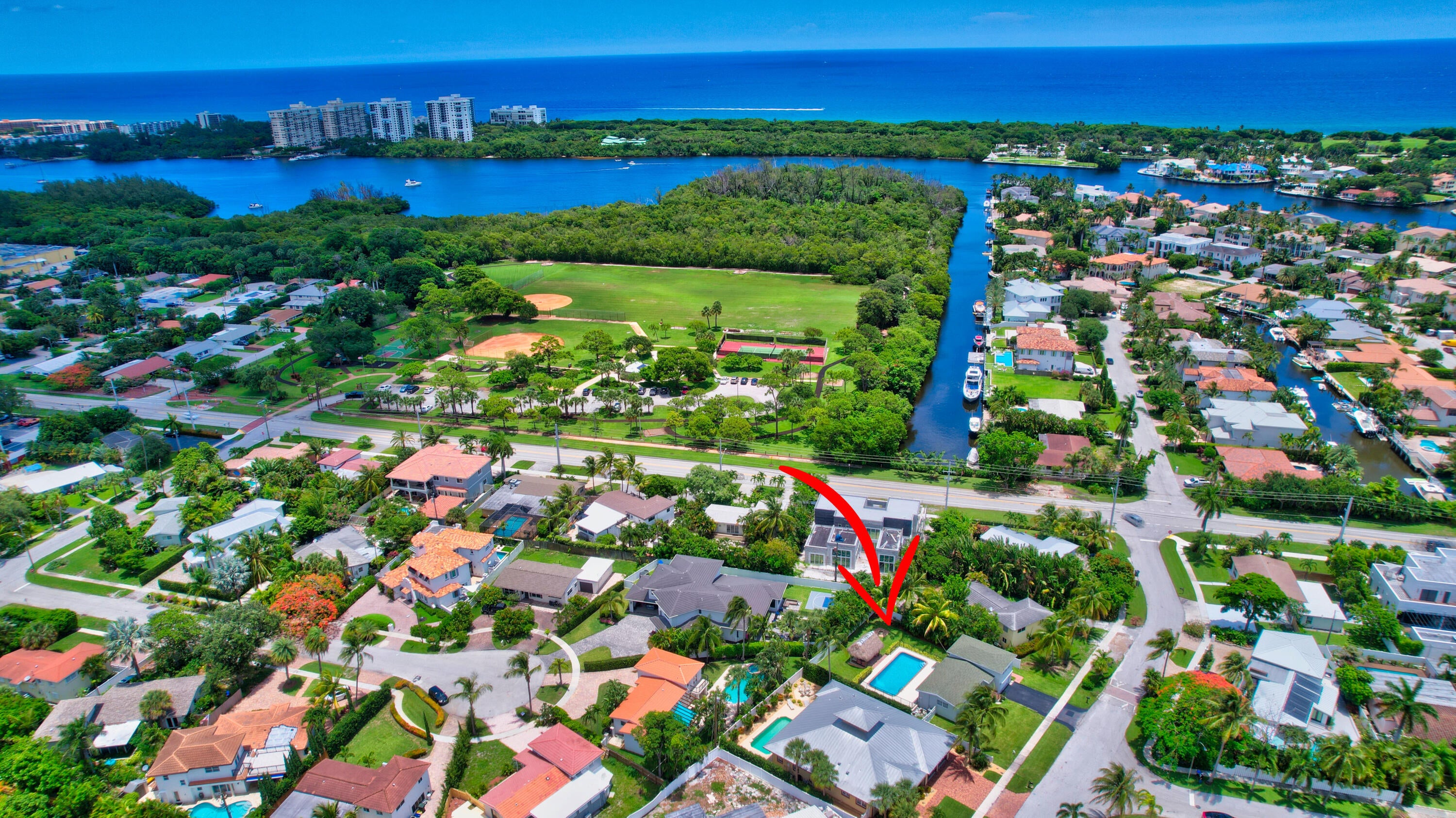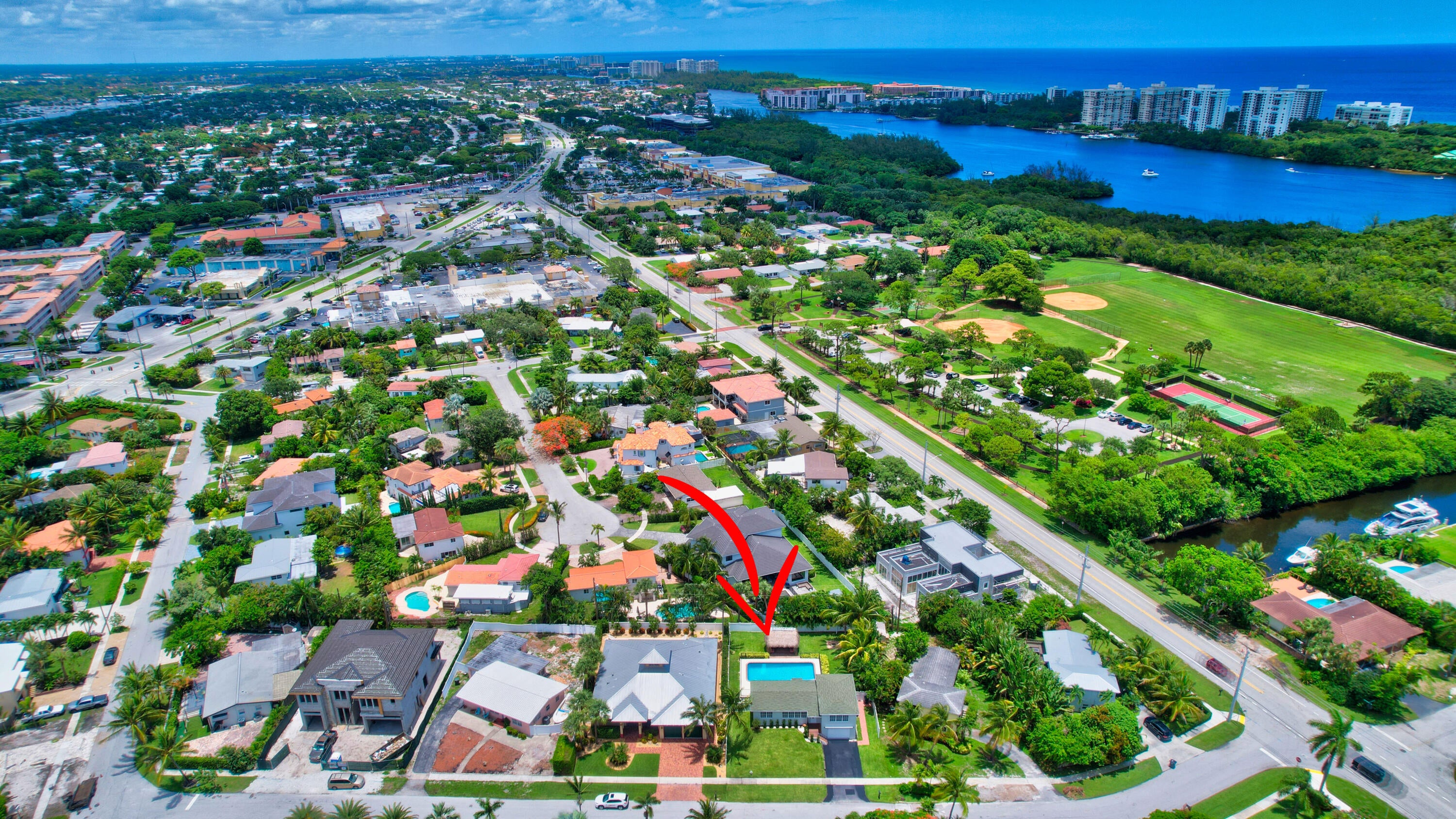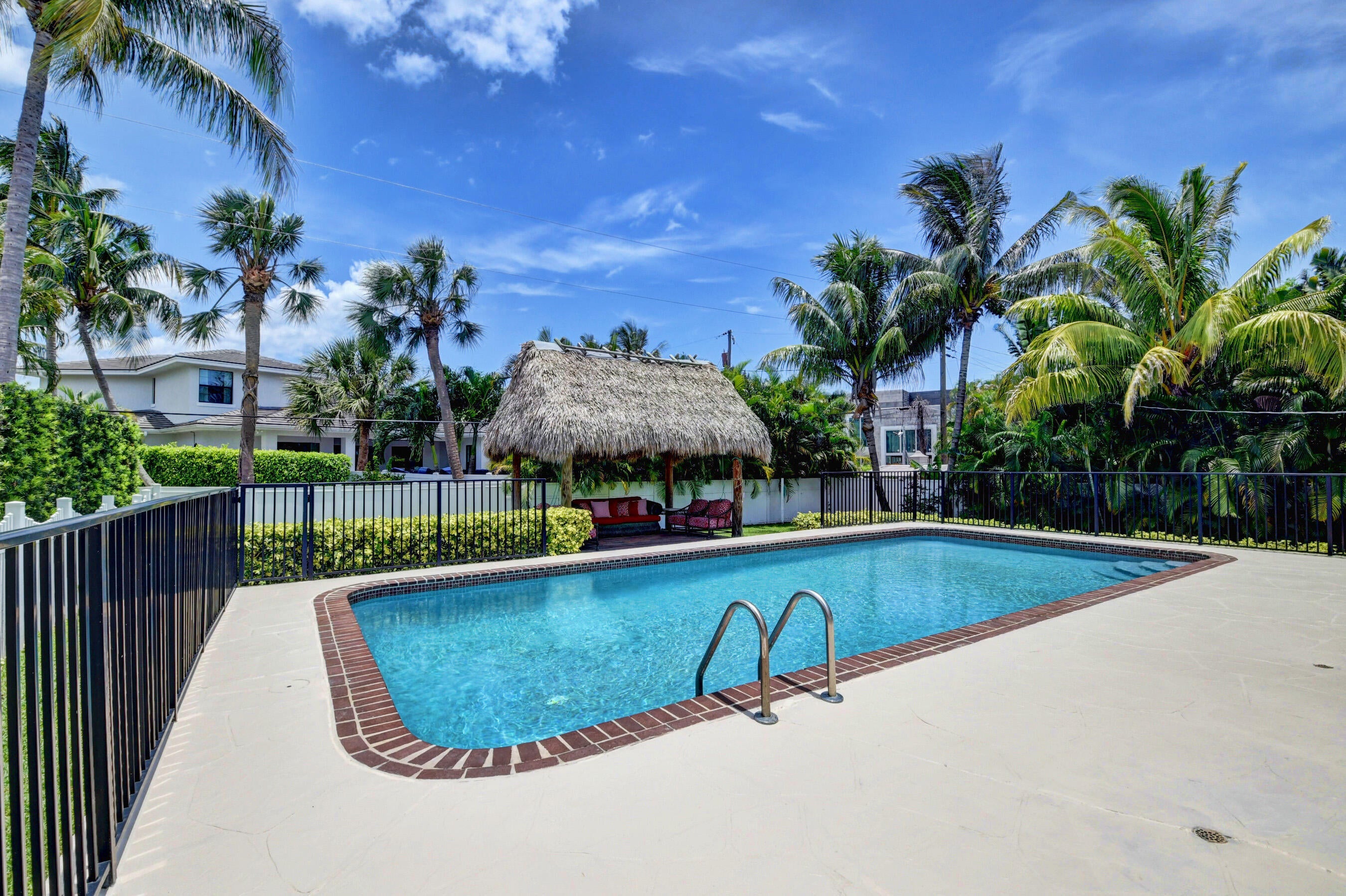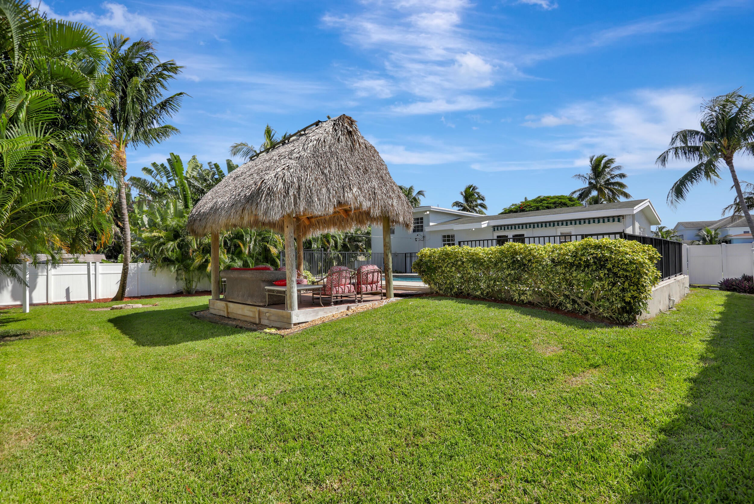 Gorgeous single family pool home at Golden Triangle @ East Boca Raton! Beautiful 3 bedroom, 2 bath, totally updated, newer kitchen and bathrooms, tile floor throughout, wine cooler, abundance of natural light, smart fridge, LED mirrors in bathrooms, large eat-in kitchen area, California closets in all rooms. Ideal summer backyard, perfect for entertainment and outdoor activities! 1.5 car garage, Tiki hut, fire pit, sunshade canopy & more! LAWN AND POOL MAINTENANCE INCLUDED with the rent. Excellent location one block from Lake Wyman Park w/ tennis courts & kids playground, A-rated schools, walk or bike to the beach, close to shopping, Downtown Mizner Park, Royal Palm Place and the best Boca Raton has to offer! 2 miles to I-95, Annual Lease Only. NO HOA. Call today for more information!