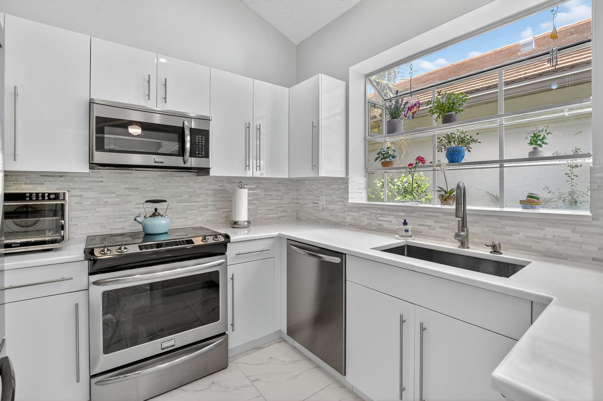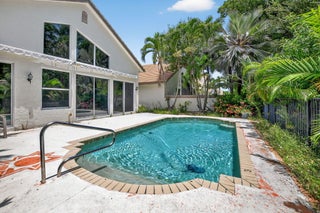 Welcome to this stunning one-story single-family home located in the desirable Village of Whisper Trace within the prestigious Broken Sound Country Club. Offering 1,838 square feet of beautifully updated living space, this 3-bedroom, 2-bath home features a thoughtfully designed split-bedroom floor plan and soaring vaulted ceilings that enhance the bright, open feel throughout. The renovated kitchen is a chef's dream, showcasing sleek white high-gloss cabinetry, elegant quartz countertops, and modern finishes. New flooring flows throughout the home, while both bathrooms have been tastefully upgraded with frameless glass shower doors and stylish fixtures. Step outside to your own private oasis -- a fenced backyard with a sparkling pool, perfect for relaxing or entertaining in completeprivacy. Enjoy the unmatched lifestyle of Broken Sound, a five-star, award-winning country club community offering world-class amenities, including golf, tennis, dining, fitness, and spa. This move-in ready gem is the perfect combination of luxury, comfort, and convenience.